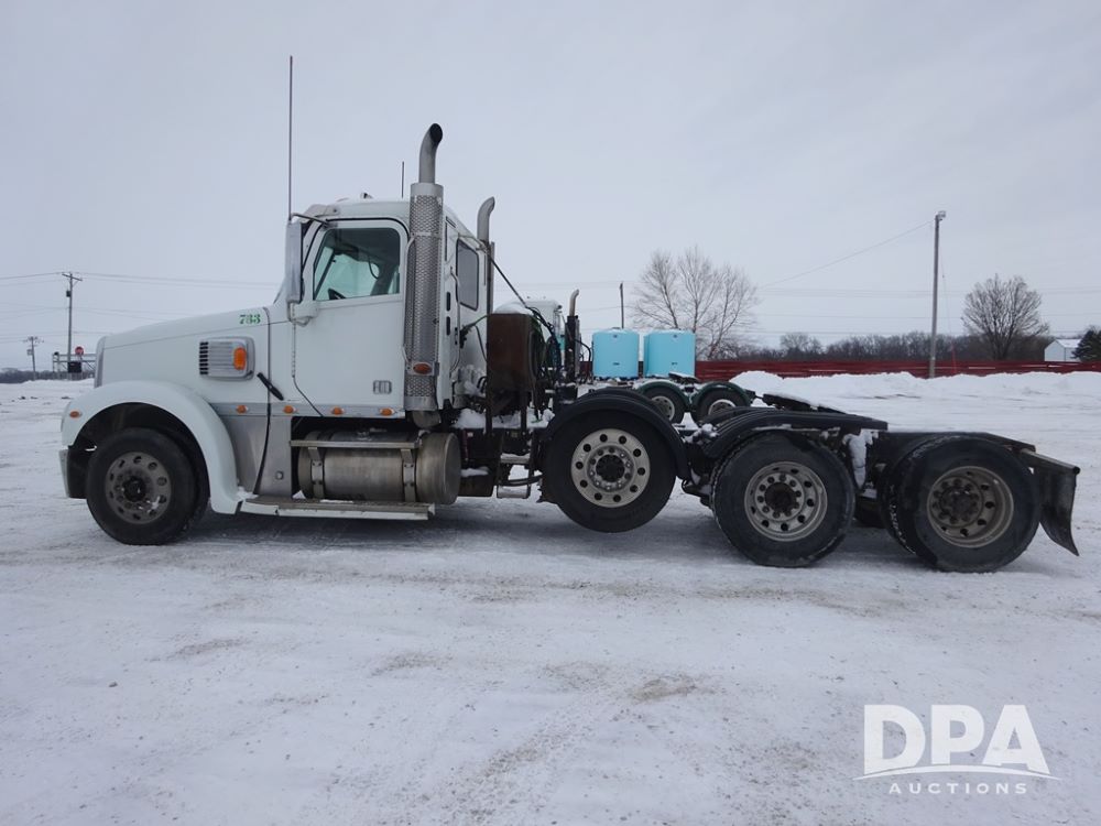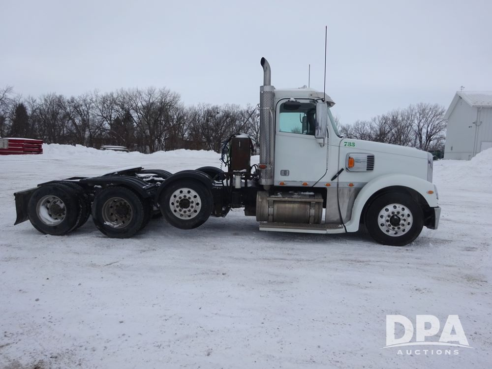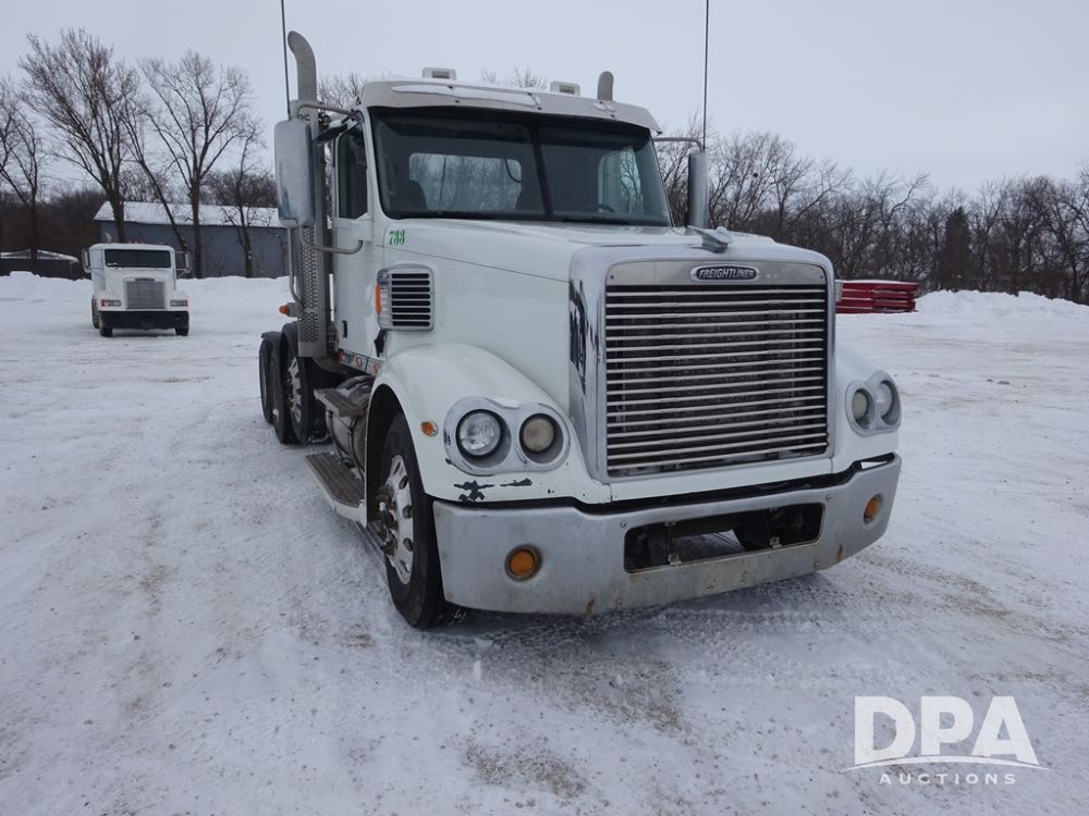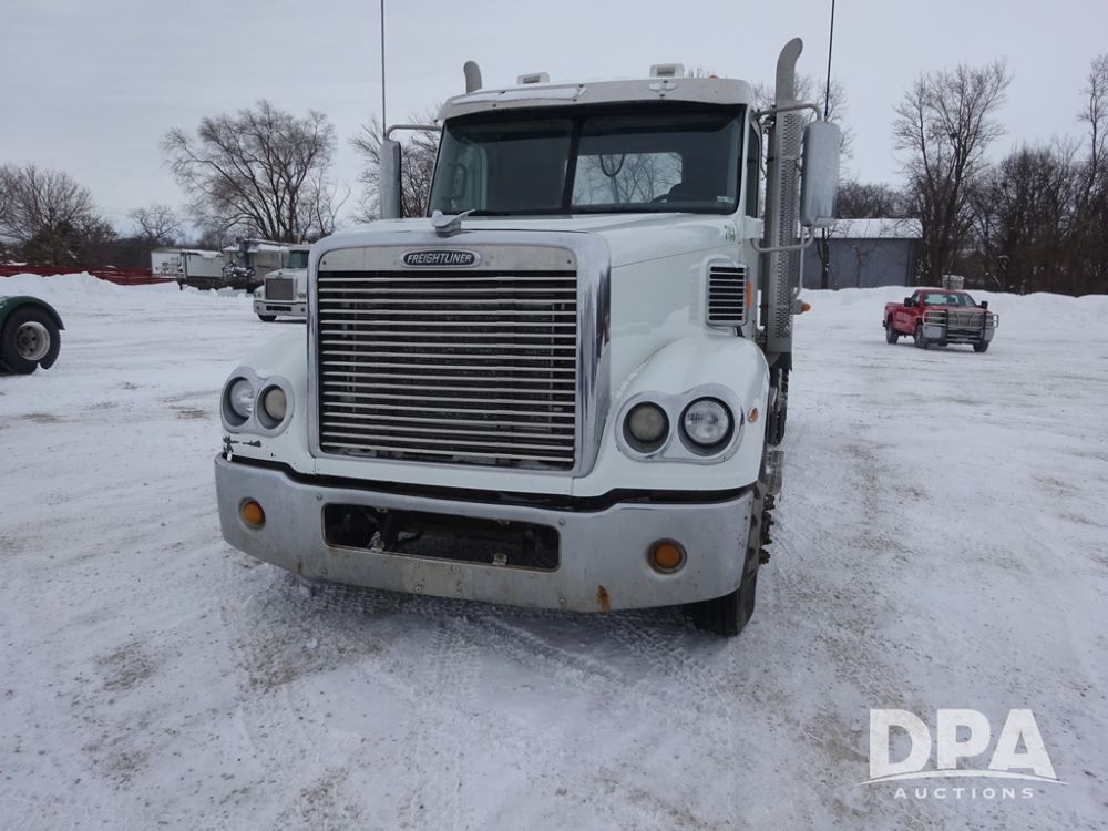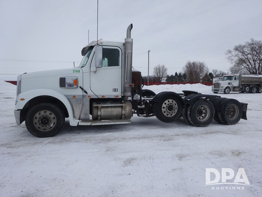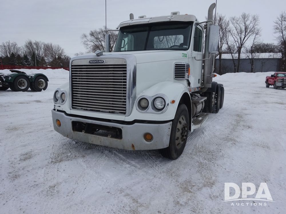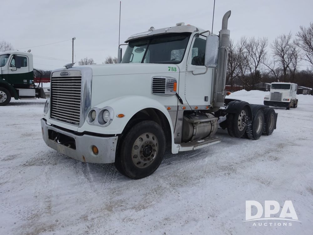2017 Freightliner Coronado Day Cab Glider Truck (PZ14241, Unit 733), Detroit Series 60 diesel engine, Eaton Fuller 13 speed transmission, air conditioning, heat, Am/Fm radio, cruise control, engine brake, power windows & locks, 5th wheel, wet kit, tandem axle, full screw, air ride suspension, pusher axle, 295/75R22.5 tires, aluminum rims, fenders, 295/75R22.5 pusher tires, fenders, shows 570,596 miles.