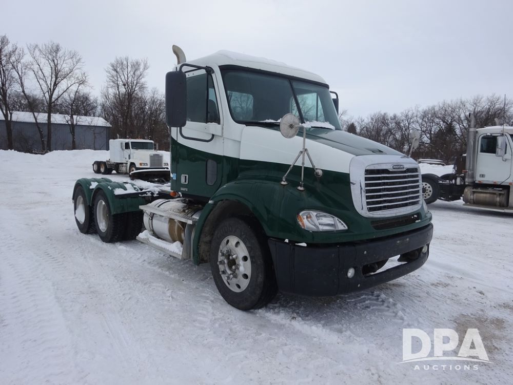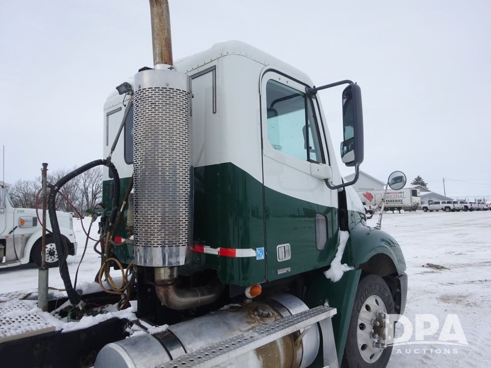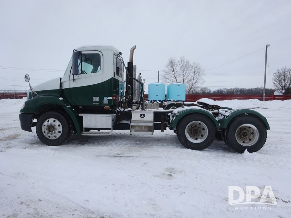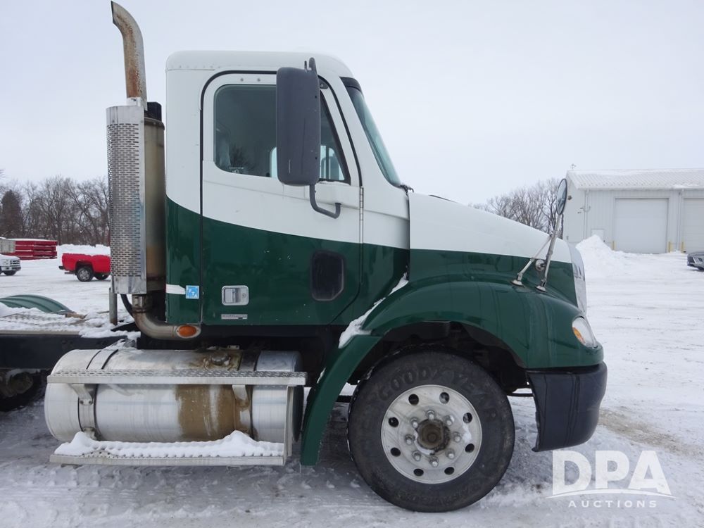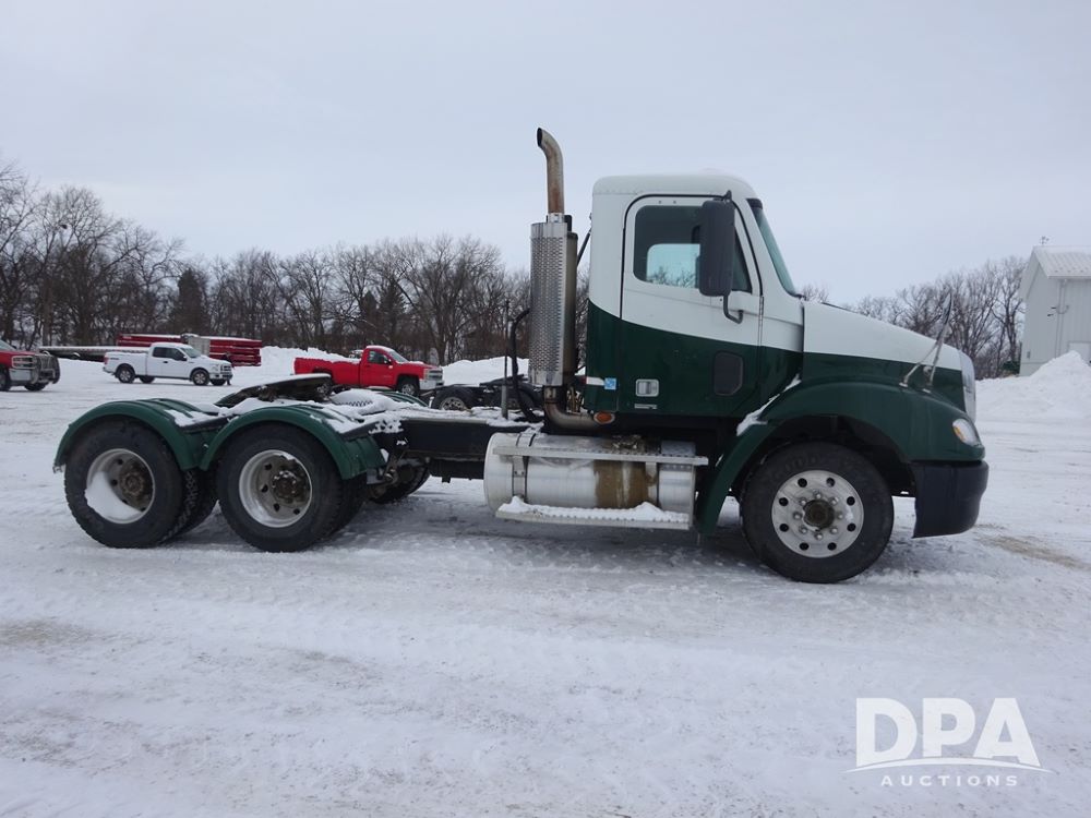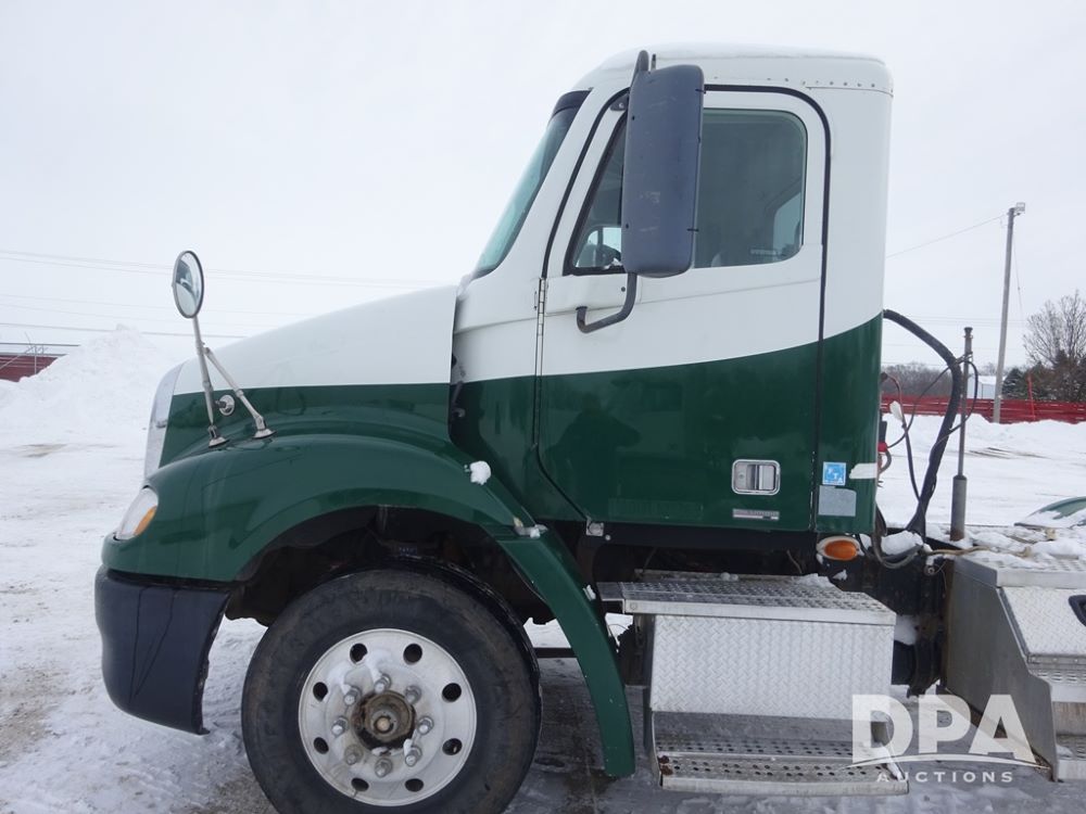2007 Freightliner Columbia CL112 Day Cab Truck (PZ14242, Unit 108), Cat diesel engine, Eaton Fuller Lighting Top 2 transmission, air conditioning, heat, Am/Fm CD radio, cruise control, engine brake, tandem axle, full screw, air ride suspension, 5th wheel, 295/75R22.5 tires, aluminum rims, fenders, shows 780,673 miles.