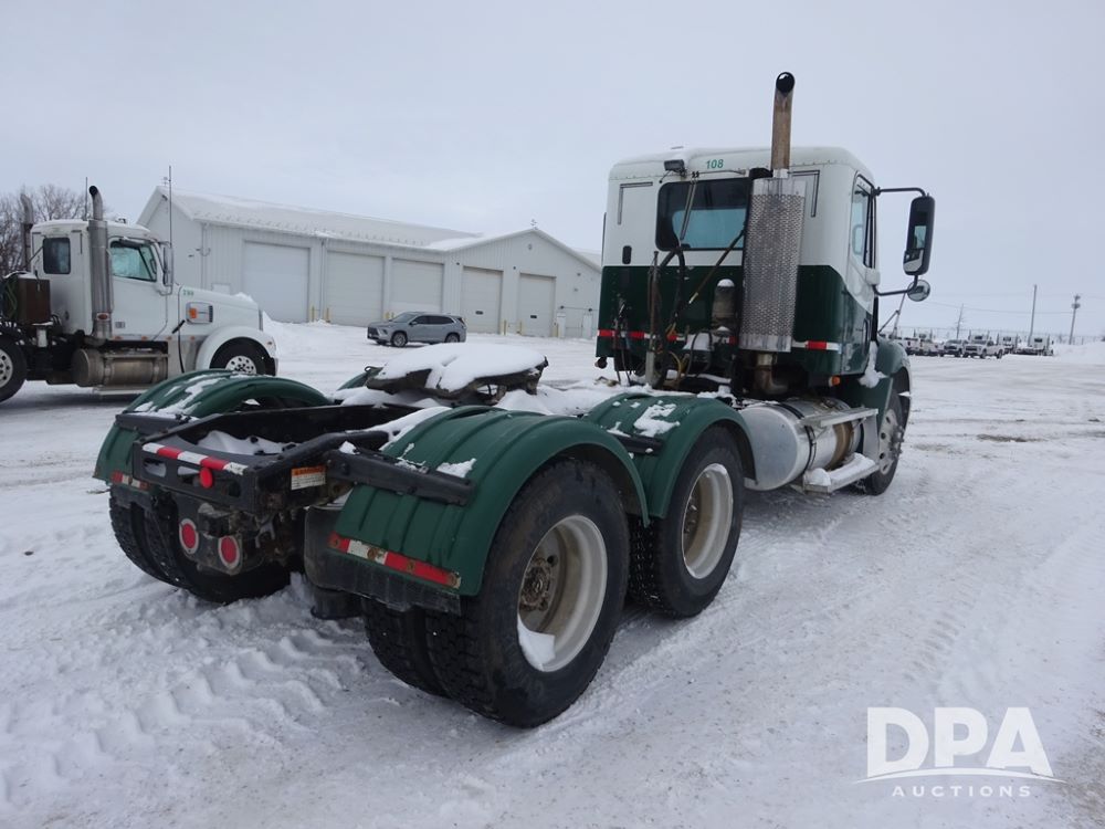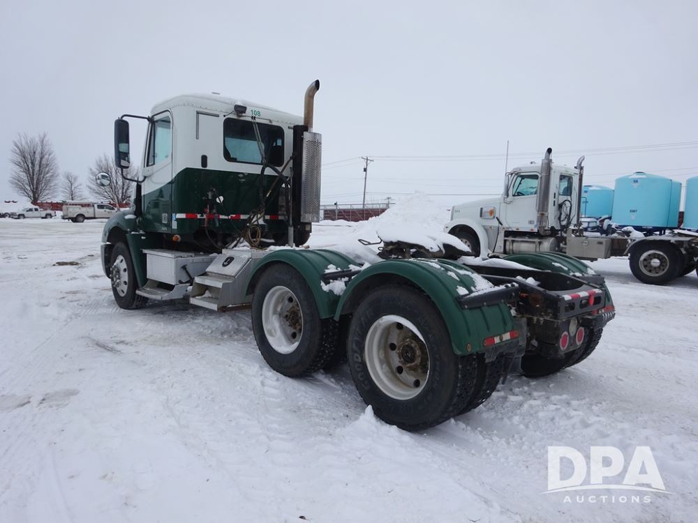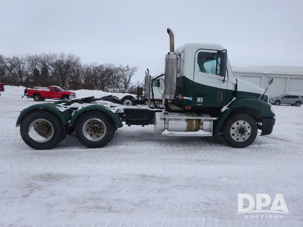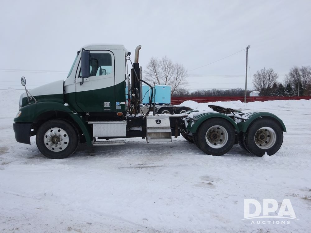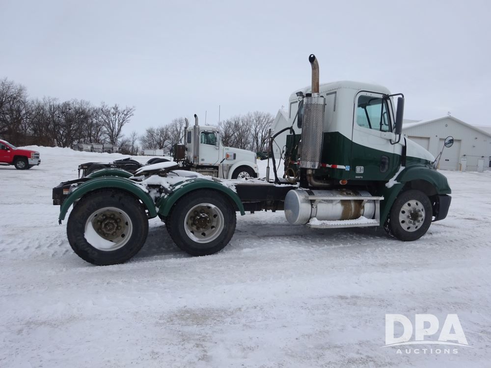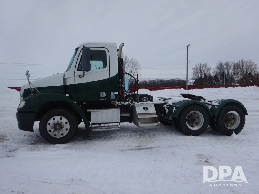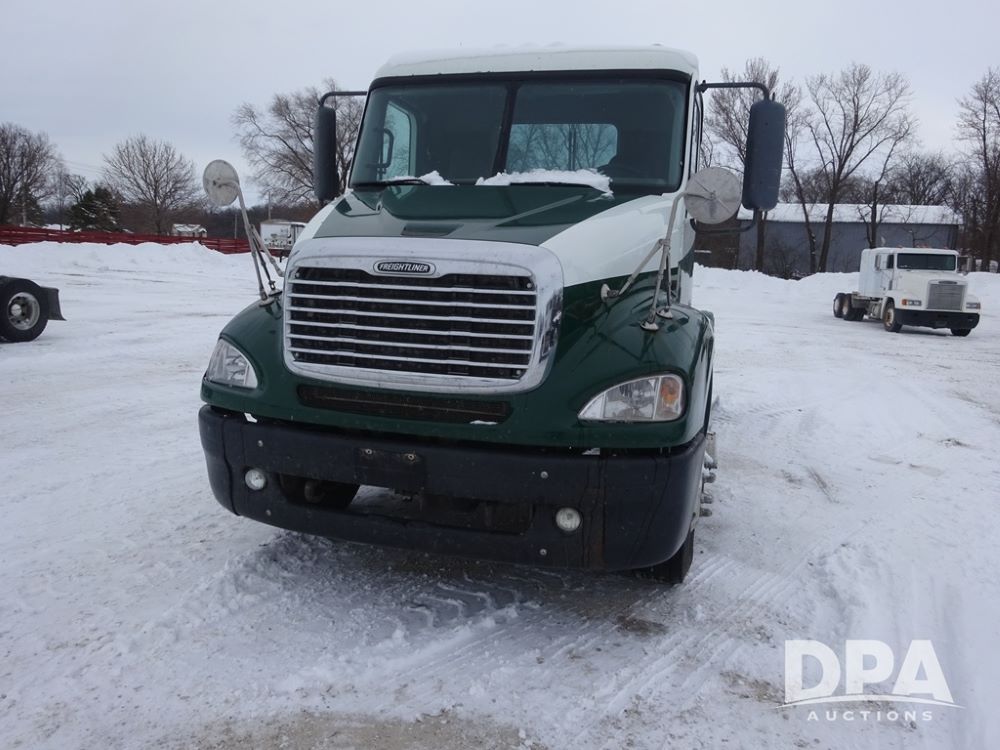 2007 Freightliner Columbia CL112 Day Cab Truck (PZ14242, Unit 108), Cat diesel engine, Eaton Fuller Lighting Top 2 transmission, air conditioning, heat, Am/Fm CD radio, cruise control, engine brake, tandem axle, full screw, air ride suspension, 5th wheel, 295/75R22.5 tires, aluminum rims, fenders, shows 780,673 miles.