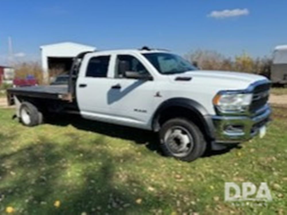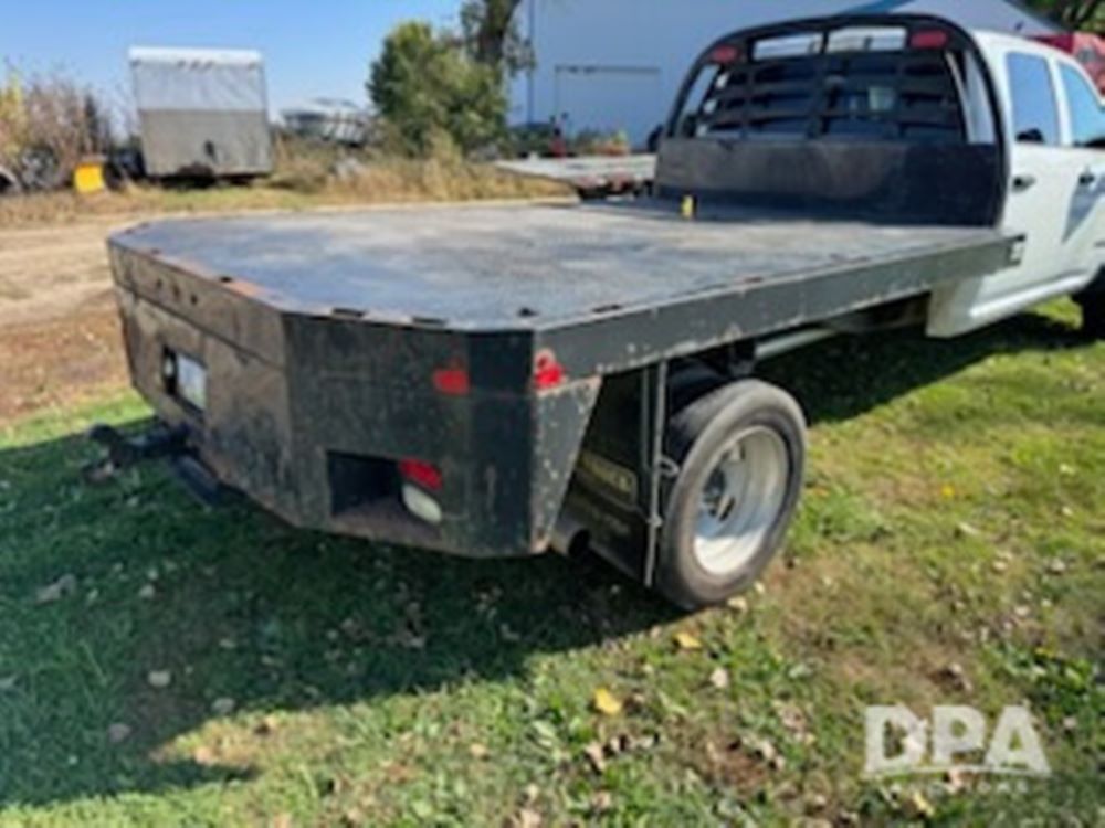 2019 Dodge Ram Flatbed Truck (JM690), Laramie edition, turbo diesel engine, 4x4, DEF deleted, 11 ft. flatbed, gooseneck hitch, cruise control, power windows and locks, air conditioning, heat, leather interior, touchscreen, camera, exhaust brake, all rubber floors on the interior, shows 152,700 miles.