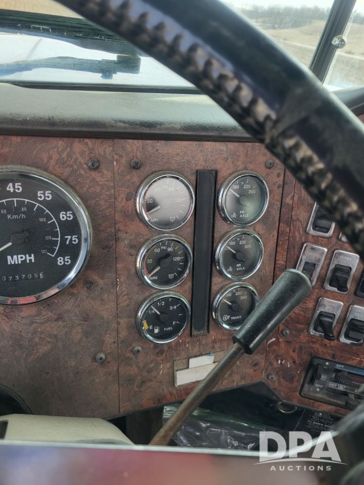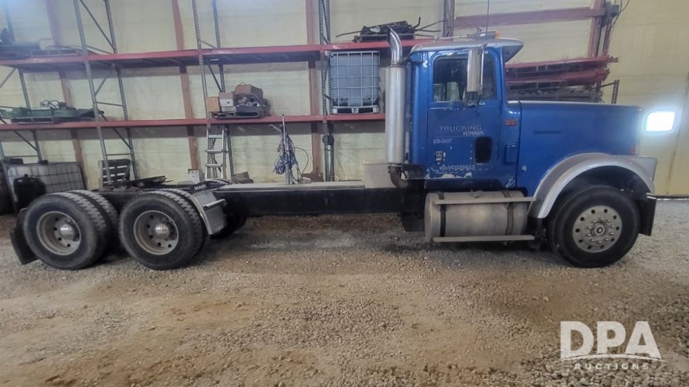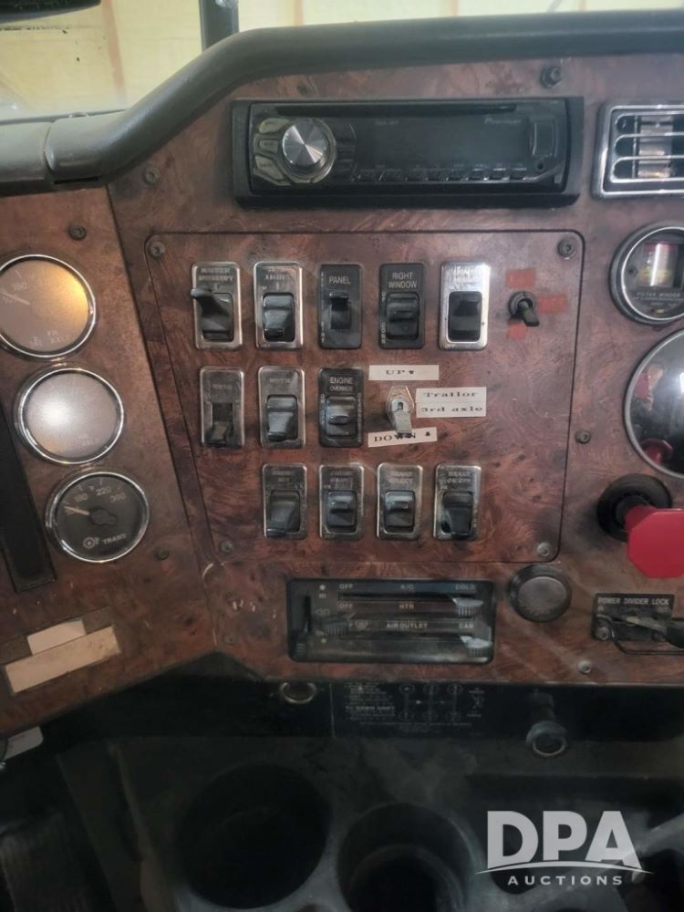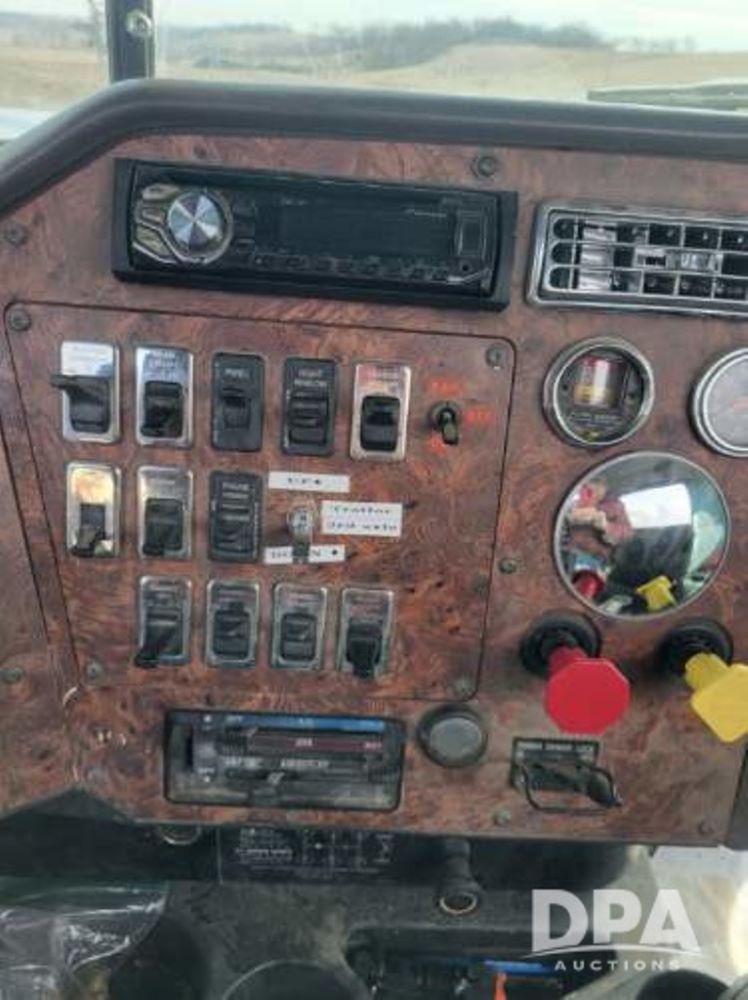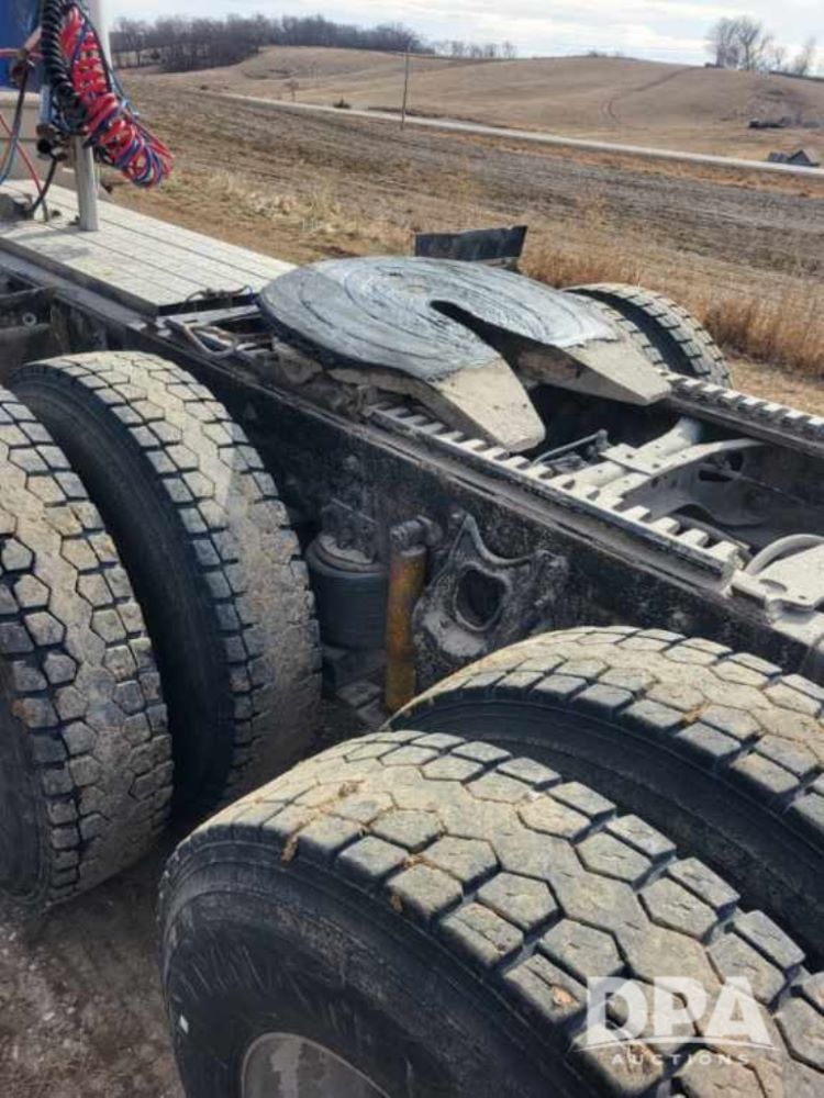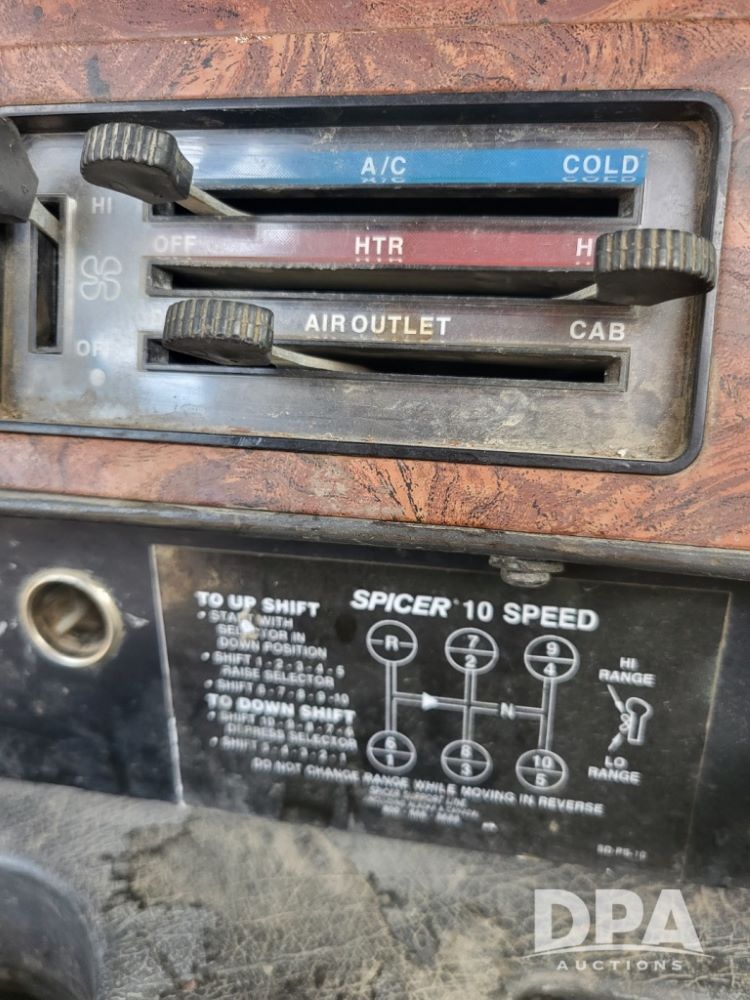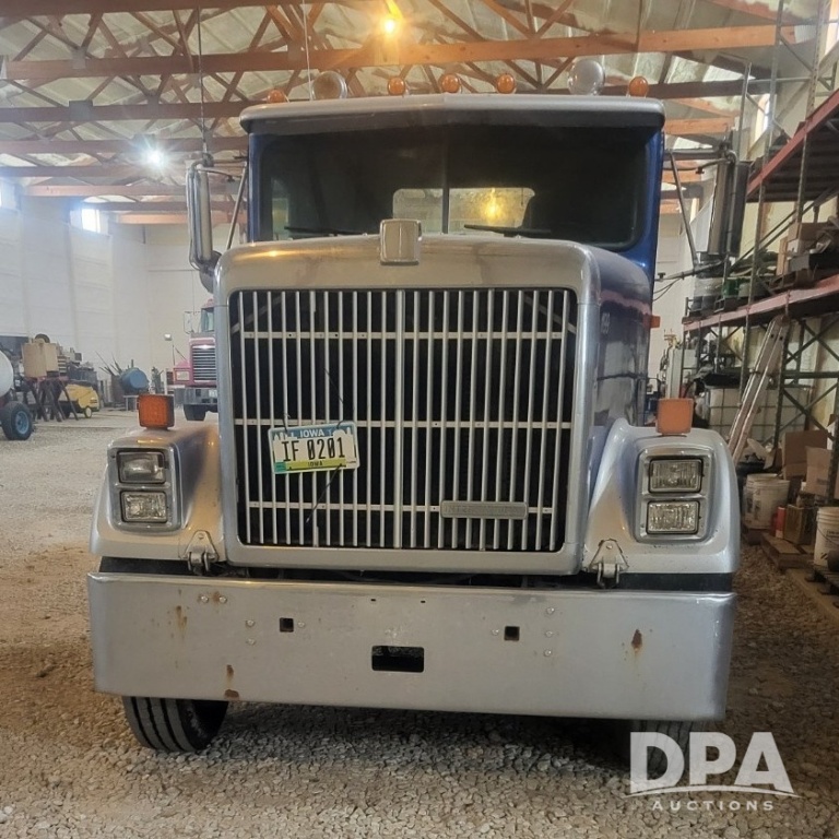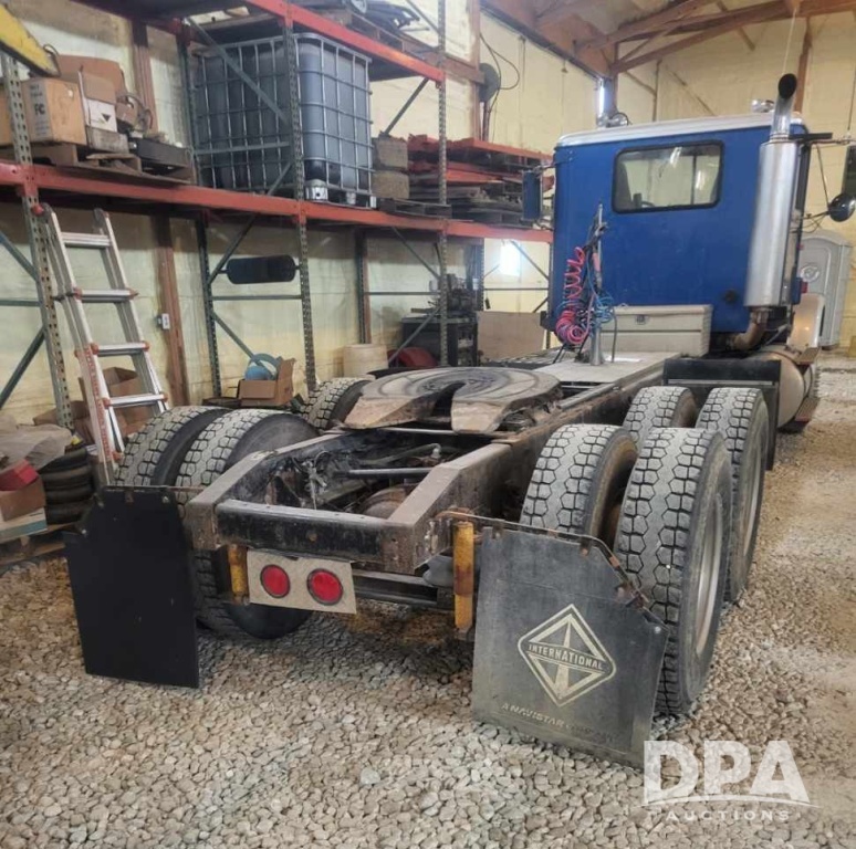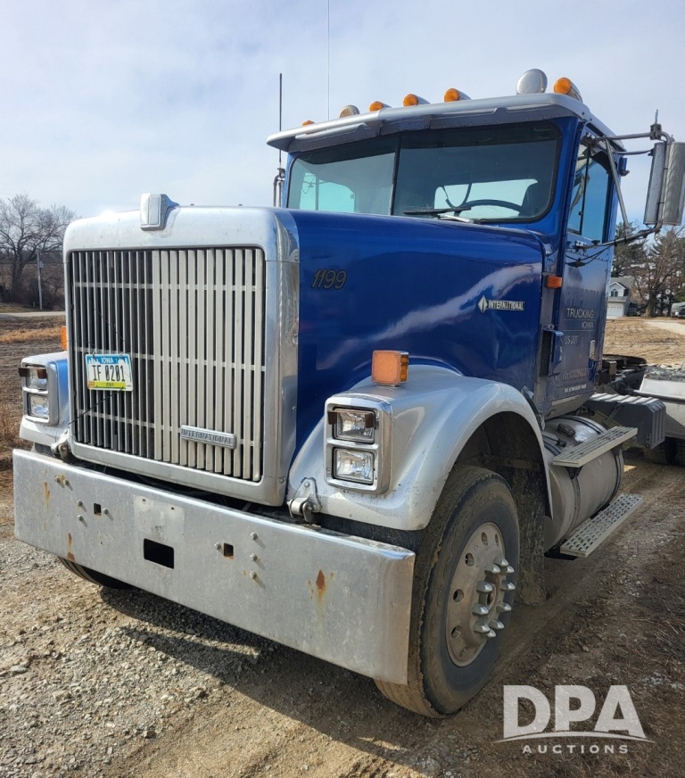 1997 International 9300 Daycab (ED5348), Detroit 60Series engine, 10 speed transmission, heat, air conditioning, radio, air ride suspension, battery disconnect, long frame, new long adjustable 5th wheel, reworked to have single exhaust, aluminum desk and tool box, spring brakes on both rear axles, 11R22.5 tires, shows 737,057 miles.