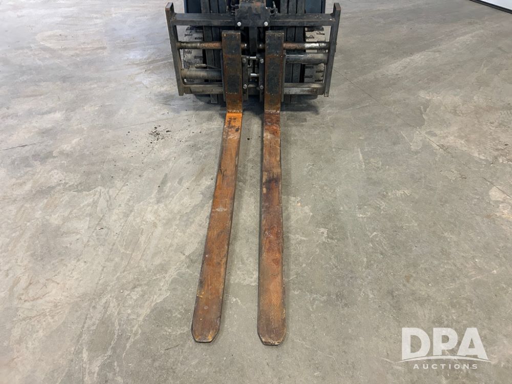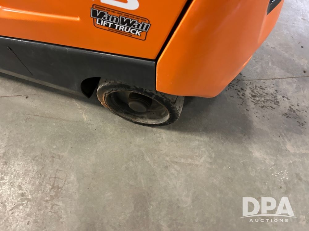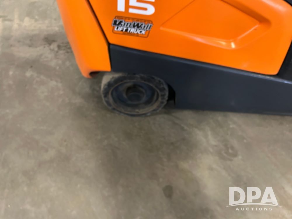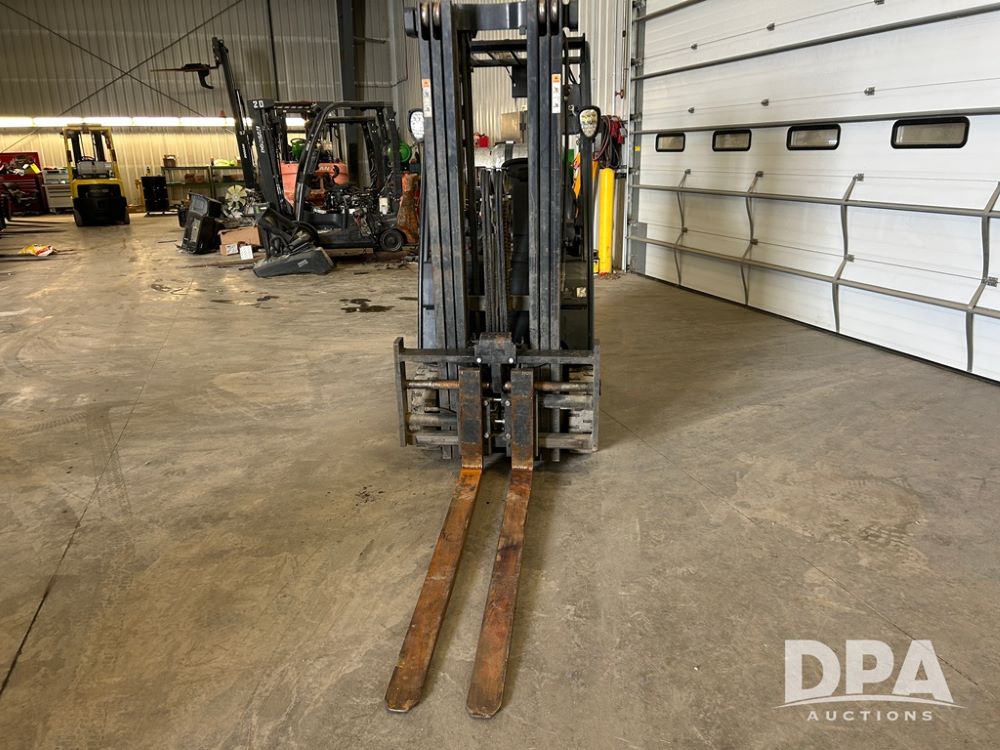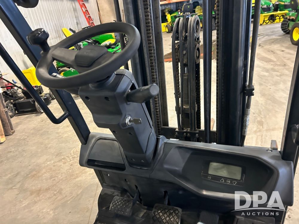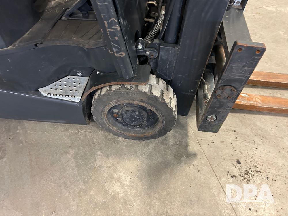 2020 Doosan GC15S-9 Forklift (CP1394), 2750lbs capacity, cushion/solid tires, 5 degree tilt, FFT mast, side shift, fork positioner, oil cooled disk brakes, steer wheeling adjustment, steering knob, seat, position adjustment, adjustable seat cushioning, rear grab bar with horn, two front LED lights, one rear LED light, two wide angle side, strobe light, back up alarm, LP tank mount swing down, fuel, coolant, oil, and speed gauges, low fuel alarm, anti-slip step plate, tool-less vented side panel and floor plate, wide hood open angle, shows 2,100 hours.