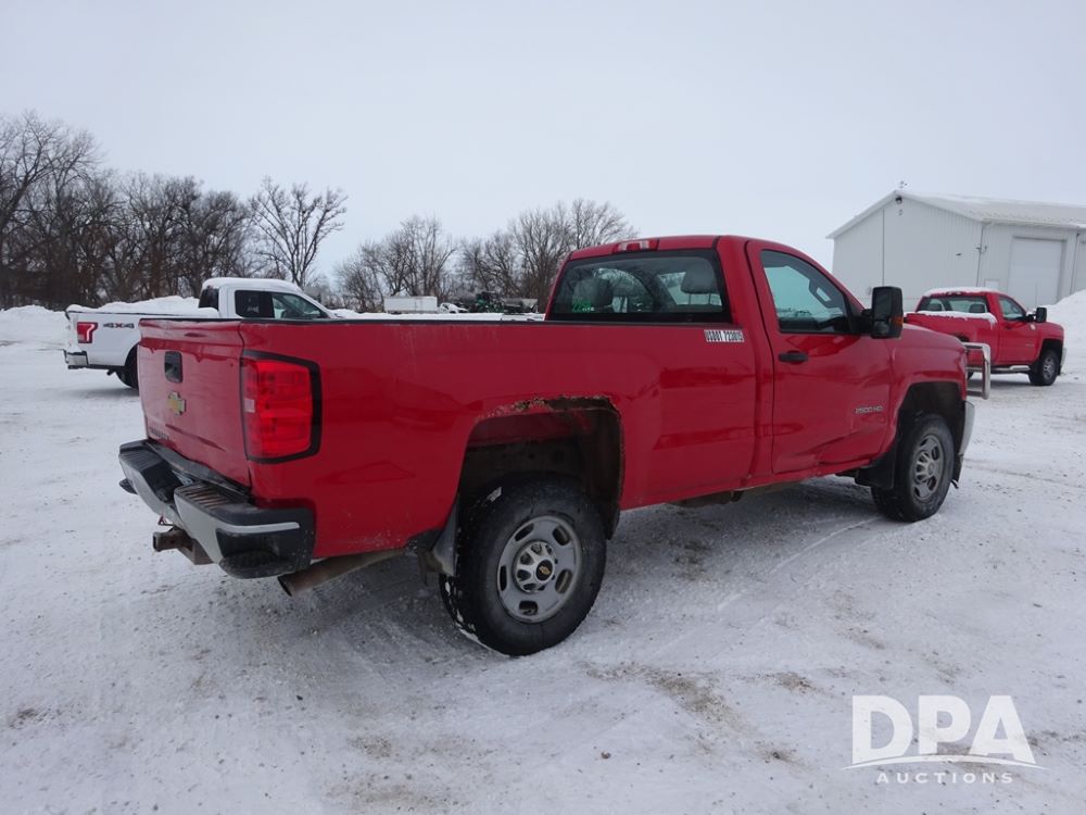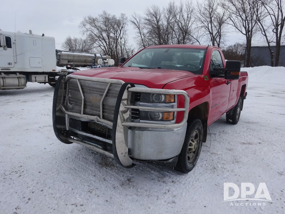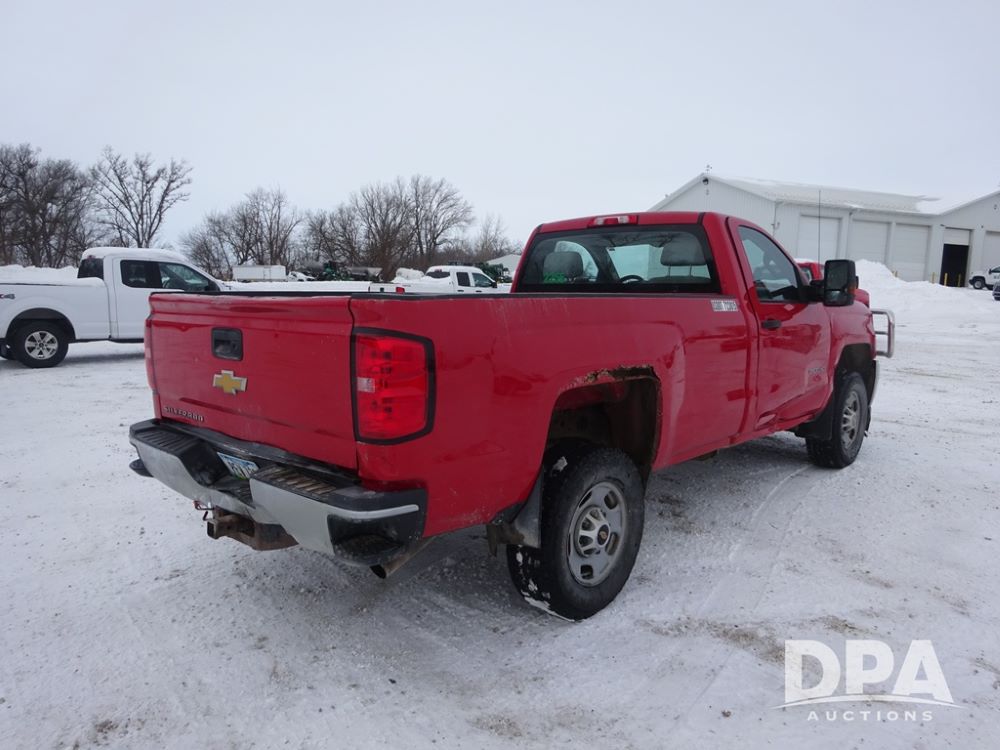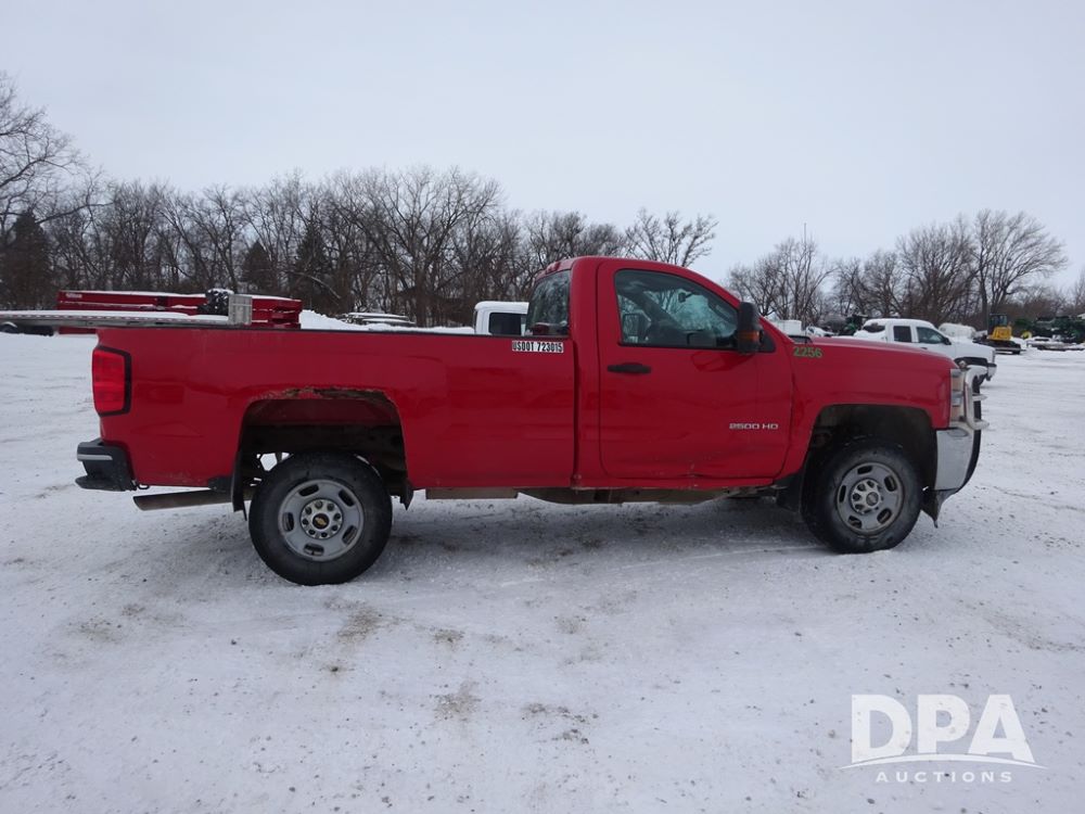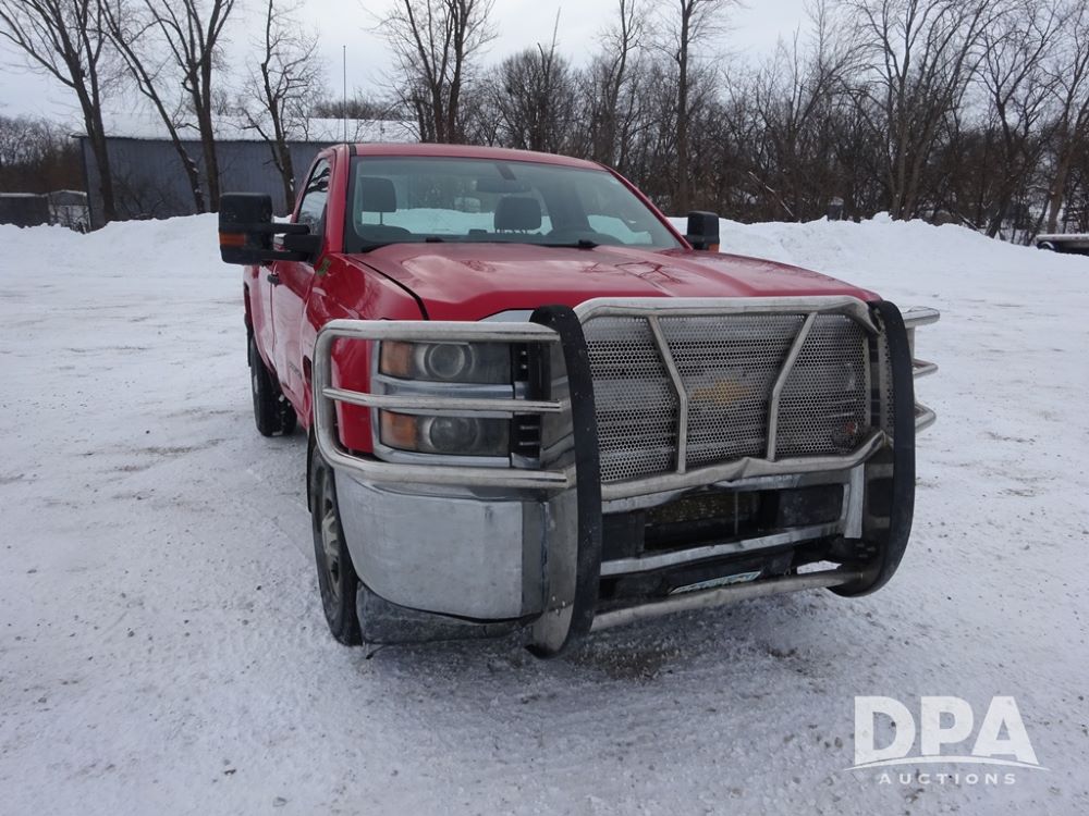 2015 Chevrolet 2500HD Pickup (PZ14246, Unit 2256), 4x4, Vortec 6.0L gas engine, automatic transmission, air conditioning, heat, Am/Fm radio, cruise control, power windows & locks, Westin HD X grill guard, 5th wheel, rear hitch, LT265/70R17 tires, shows 189,896 miles.