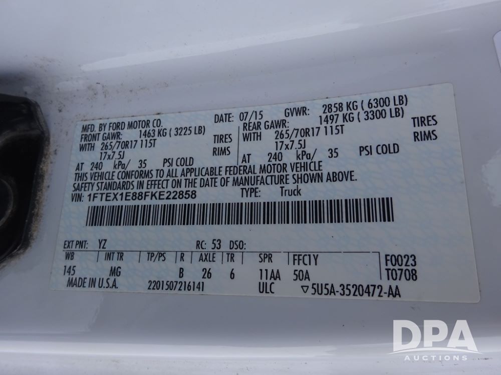 2015 Ford F150 XLT Extended Cab Pickup (PZ14248, Unit 2642), 4x4, 3.5L gas engine, automatic transmission, air conditioning, heat, Am/Fm radio, cruise control, power windows & locks, rear hitch, 265/70R17 tires, shows 274,351 miles.