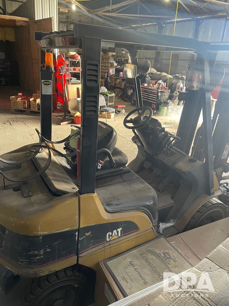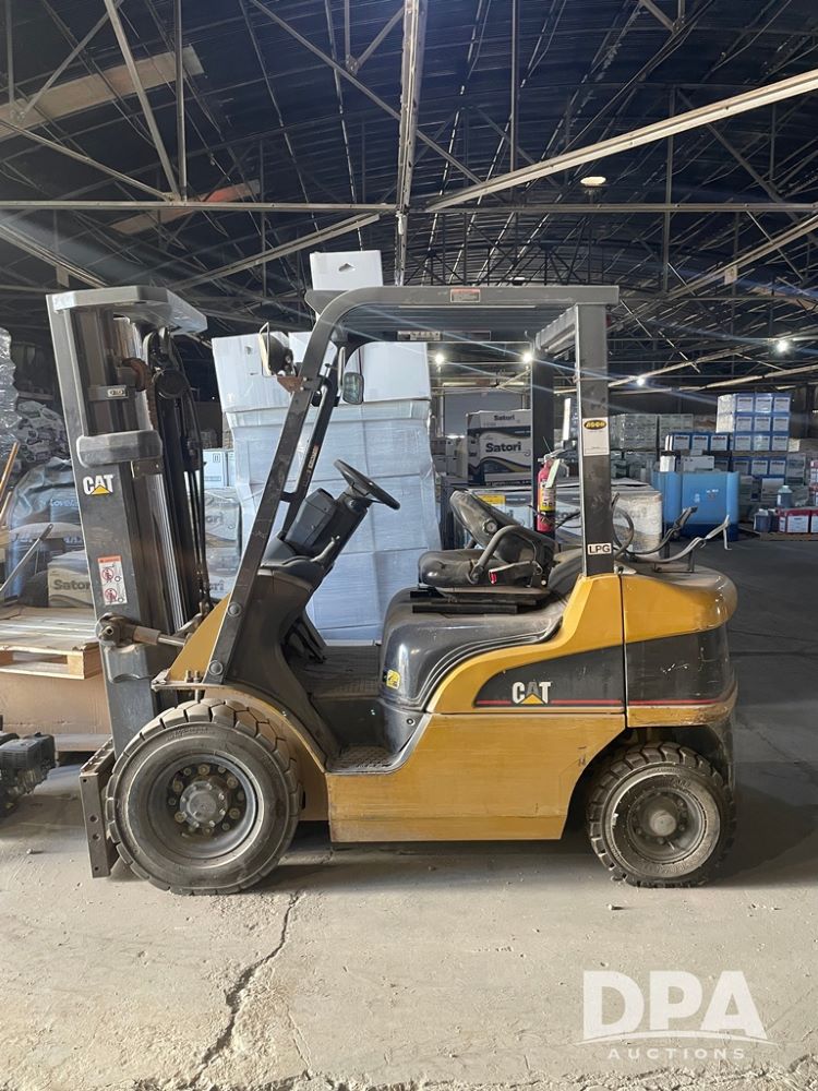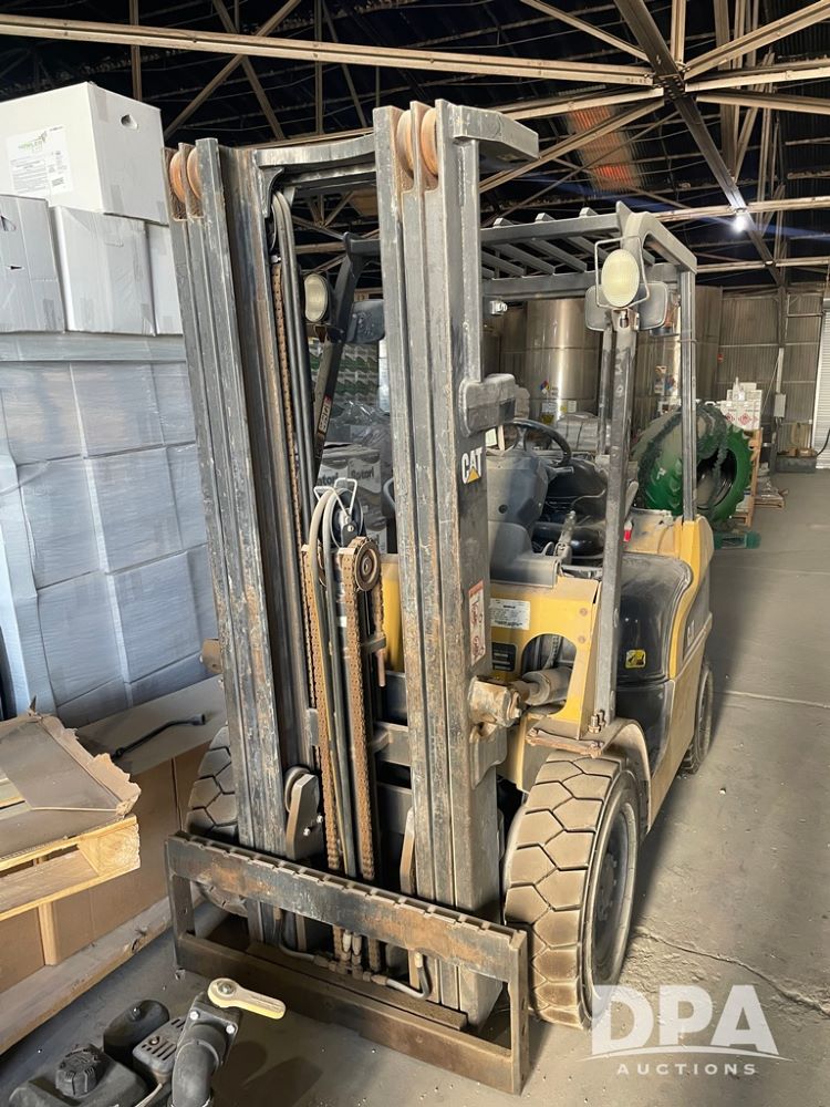 Cat P4000 Forklift (PZ14279, Unit 18568), LP gas engine, shuttle shift transmission, canopy, lights, forks, side shift, 7.00-12 front tires, 6.00-9 rear tires.