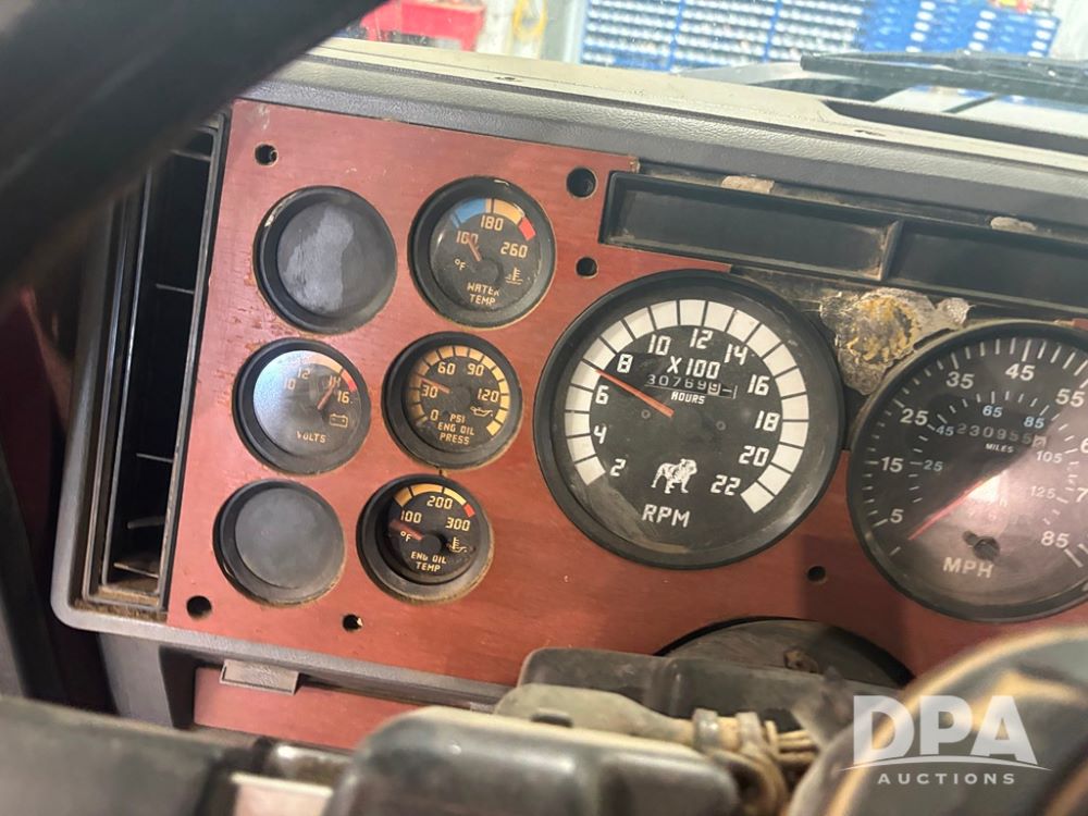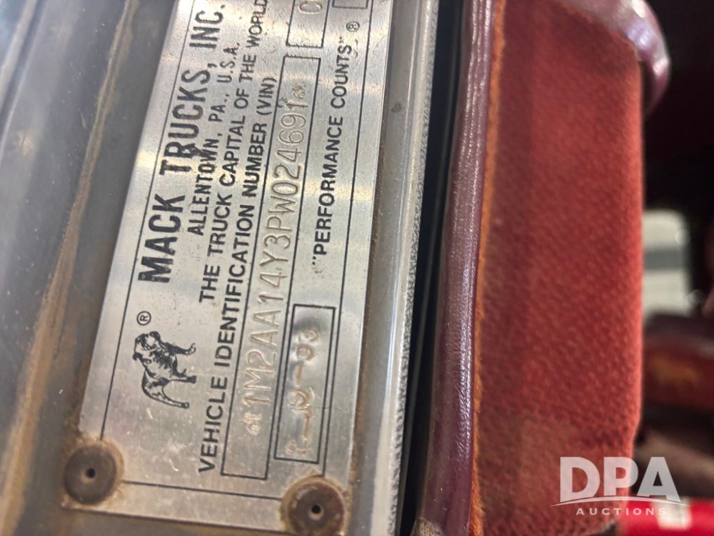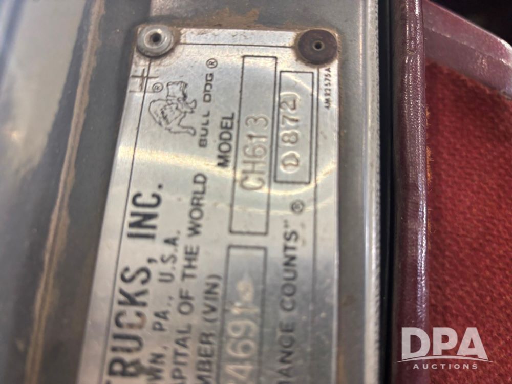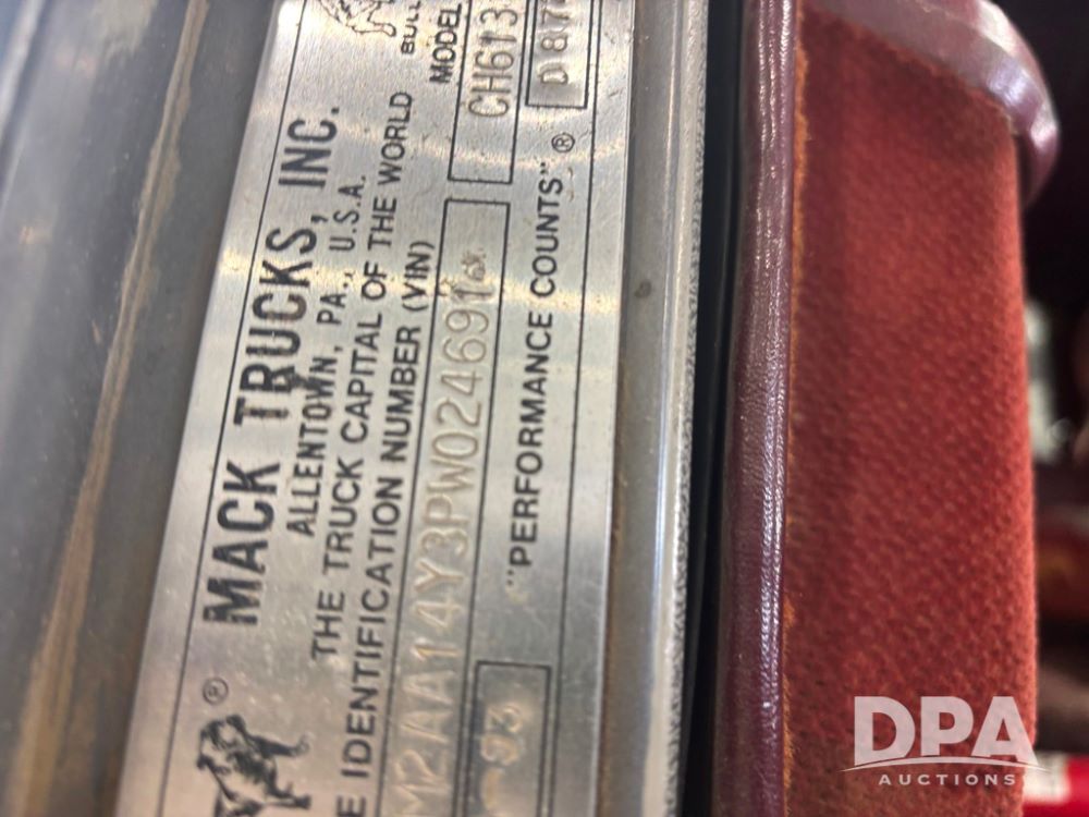 1993 Mack CH613 Truck (DR12830), Gold Dog Mack, Mack diesel engine, 9 speed transmission, tandem axle full screw, air ride suspension, 200'' WB, Mack rears, engine brake, cruise control, air slide 5th wheel plate, dual aluminum fuel tanks, 22.5 tires.