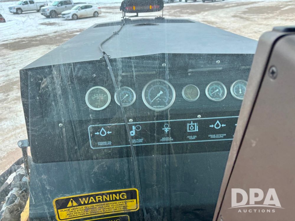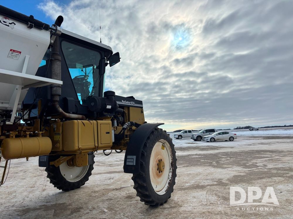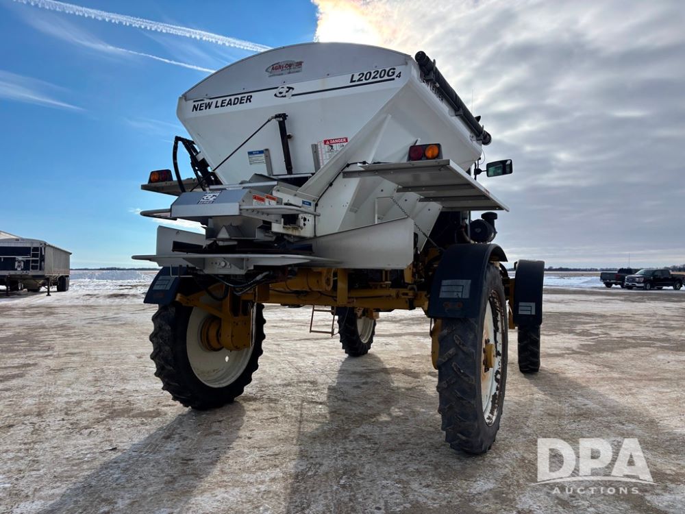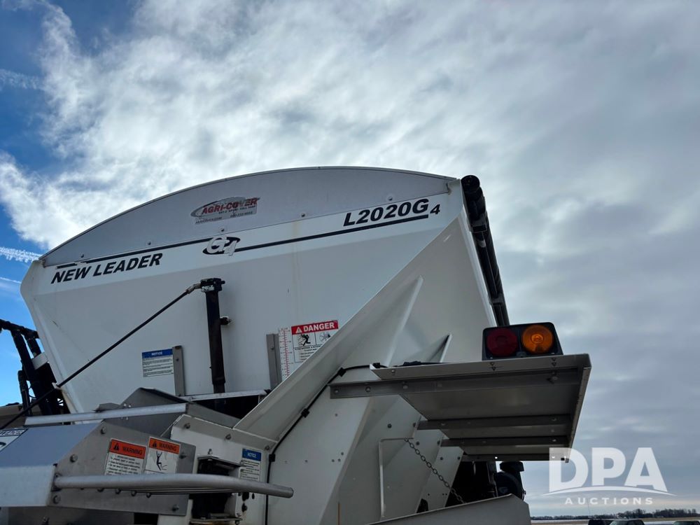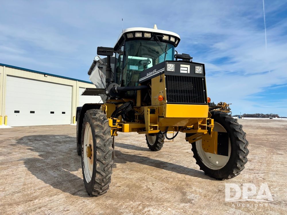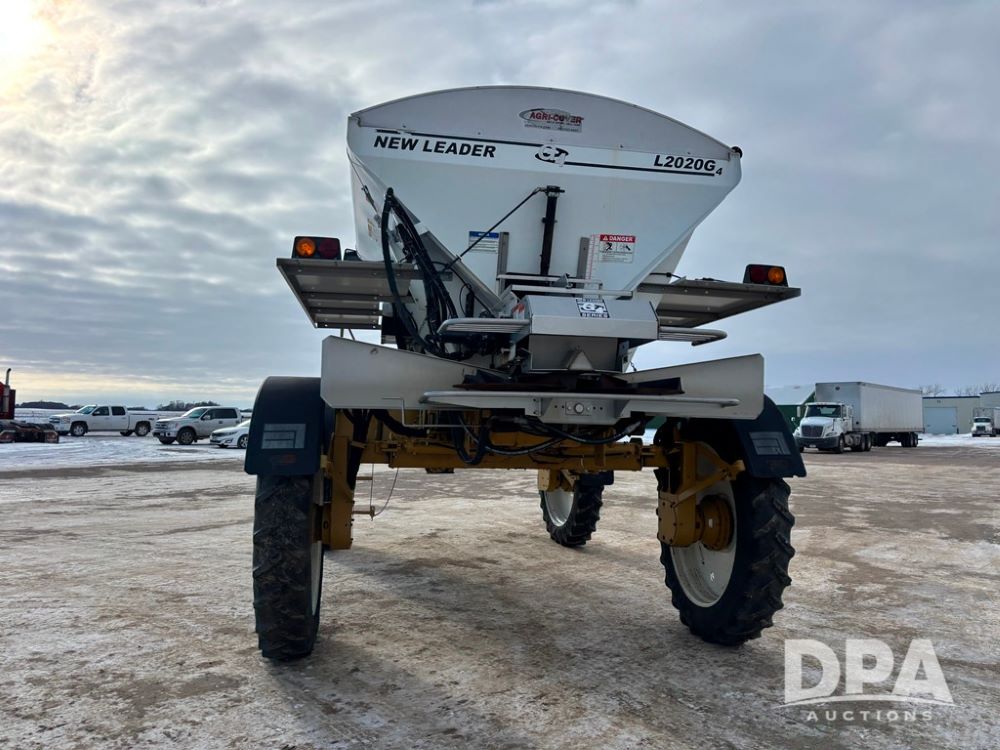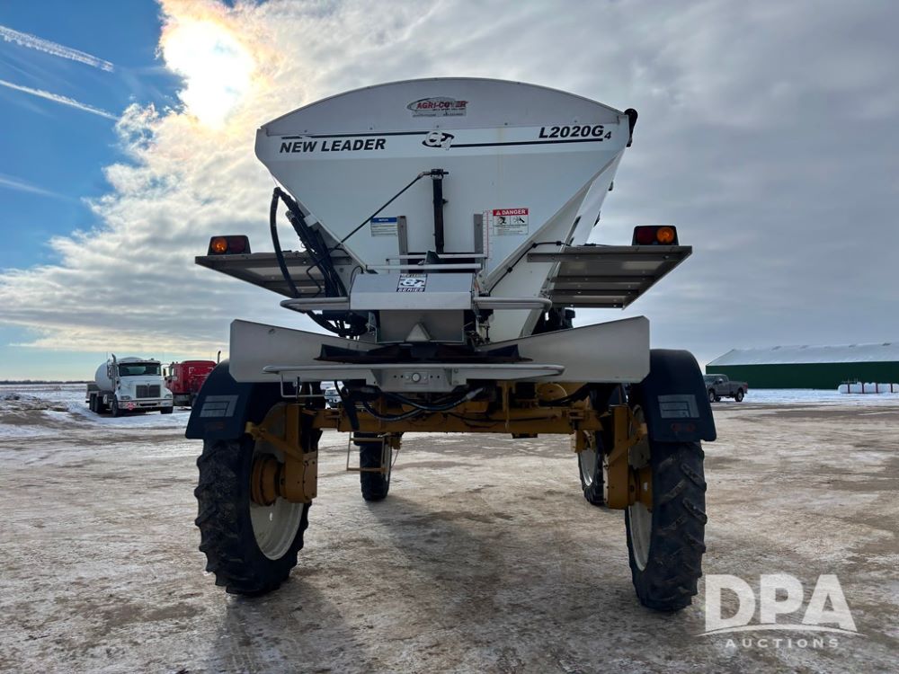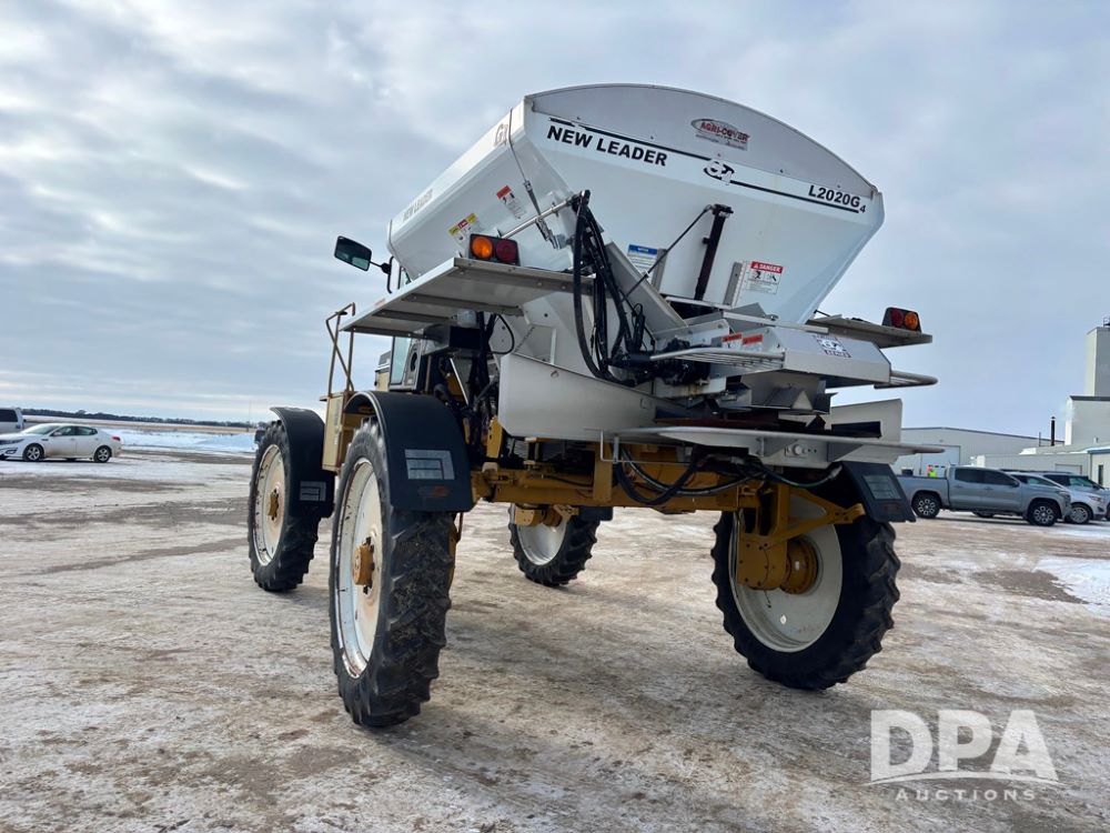 RoGator 854 Dry machine (DR12835), diesel engine, hydrostatic drive, New Leader L2020 G4 stainless steel hydraulic dry spinner box, Raven SCS controller, light bar, electric roll over tarp, cab cam, 320/90R46 row crop tires, shows 5,757 hours.