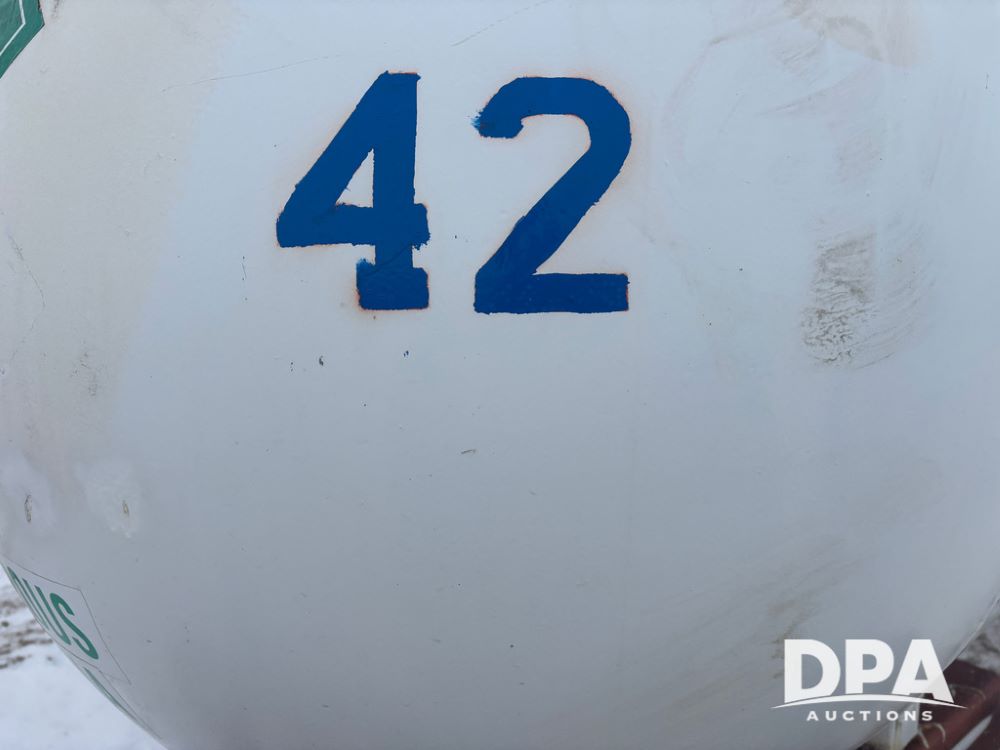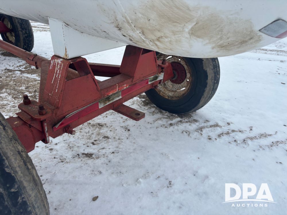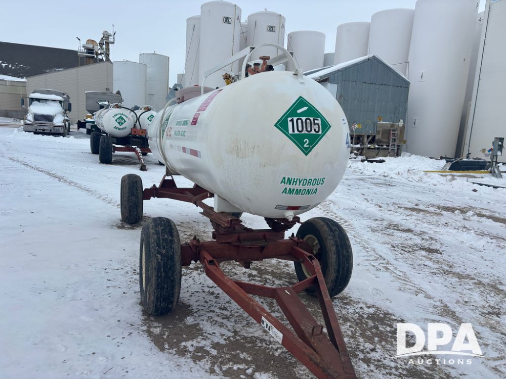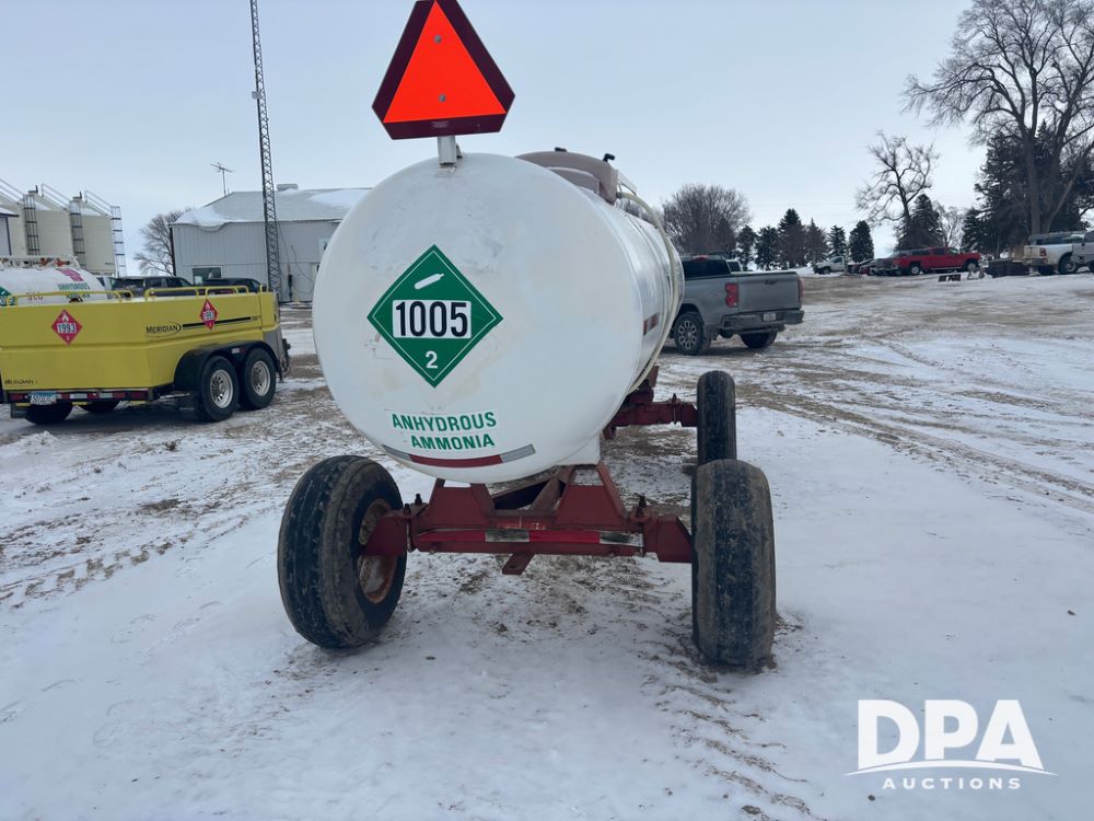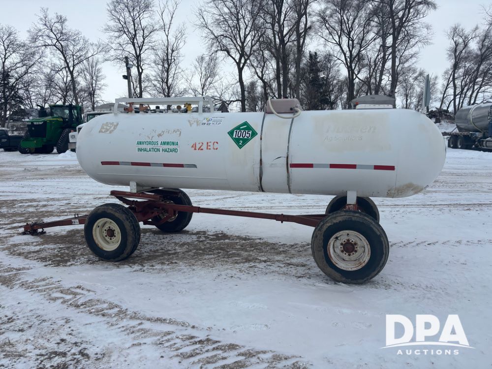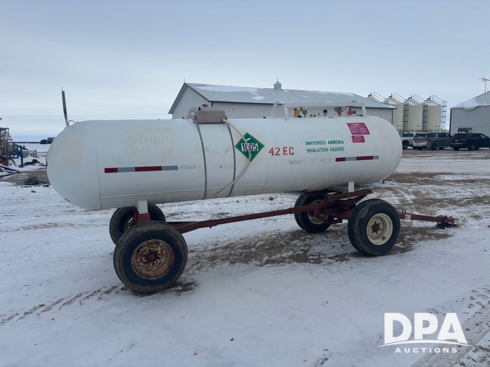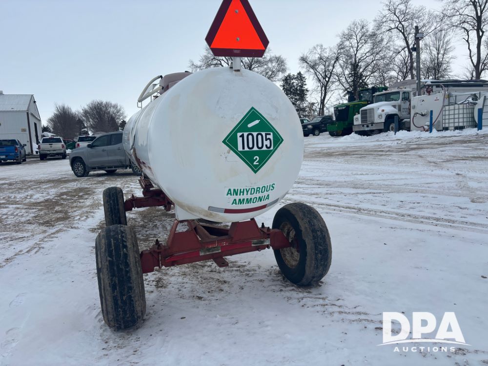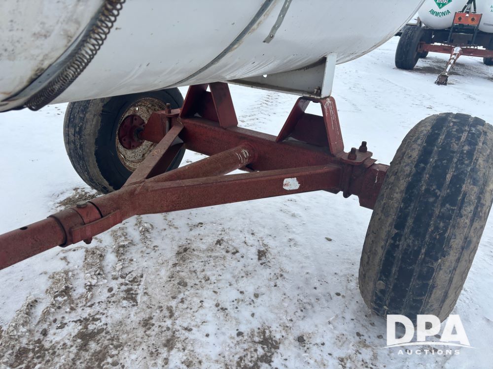 Nh3 Nurse Tank (DR12738 Unit 56002), 1,000 gallon top front fill Nh3 nurse tank, data tag, Tank 42, Demco 5th wheel style running gear, adjustable axles, 11L-15 tires.