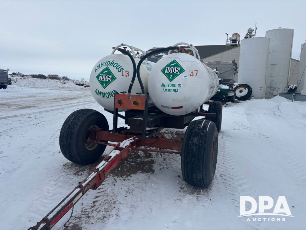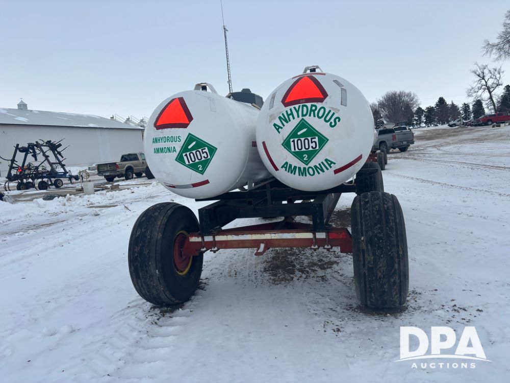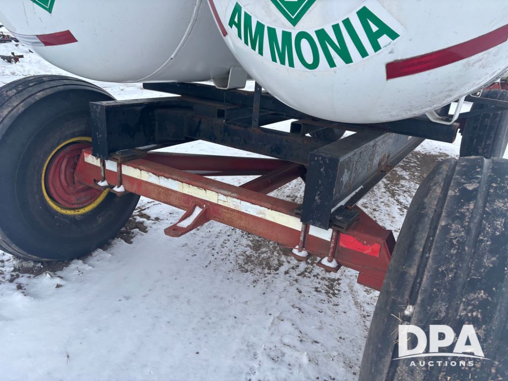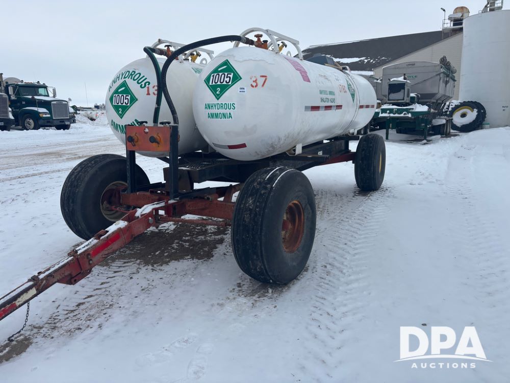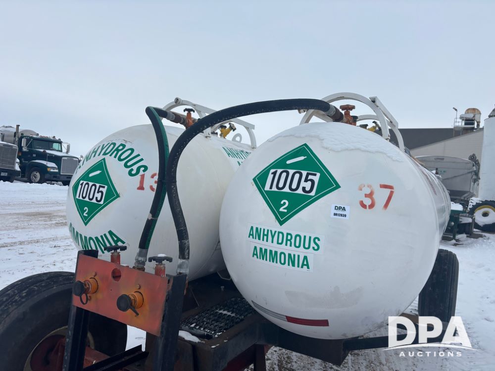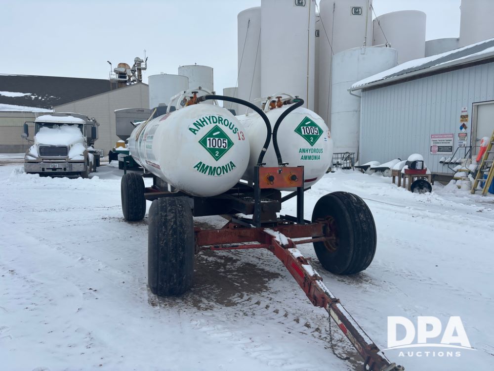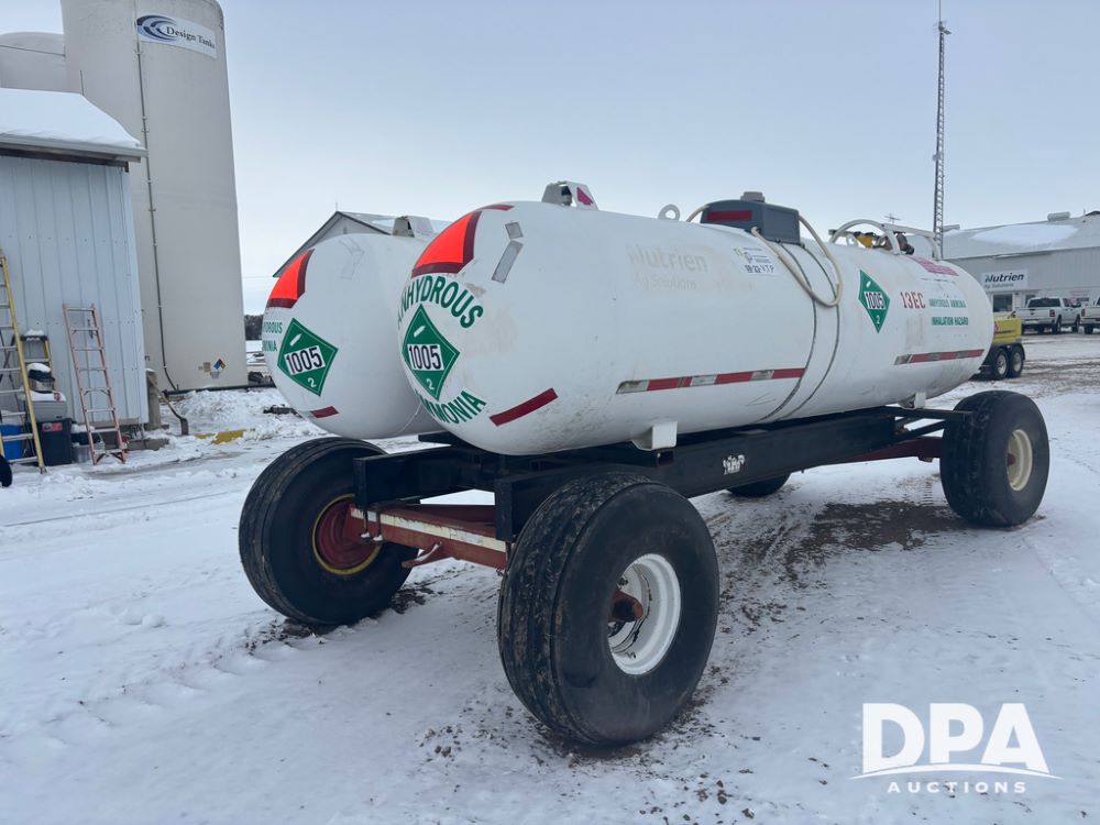 Nh3 Nurse Tank Trailer (DR12839 Unit 55983), double 1,000 gallon Nh3 nurse trailer, both are top front fill w/data tags, Ag Systems running gear, rear hitch, 16.5L-16.1 tires.