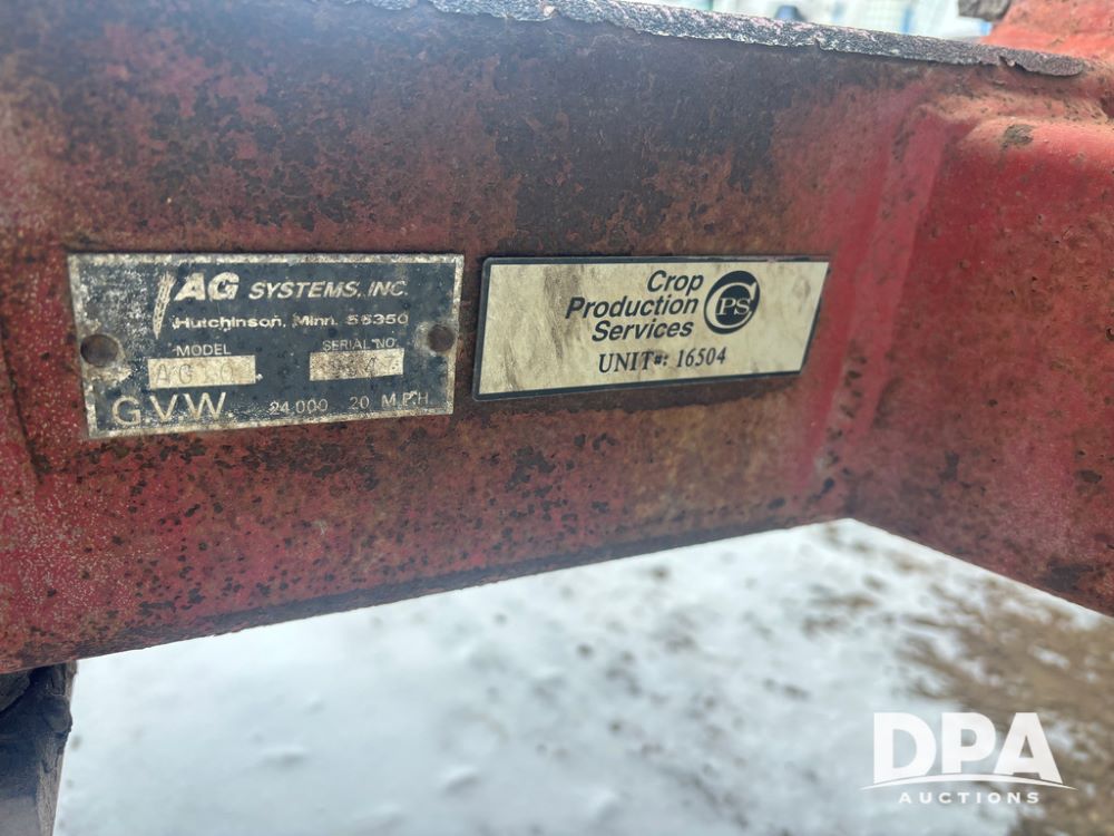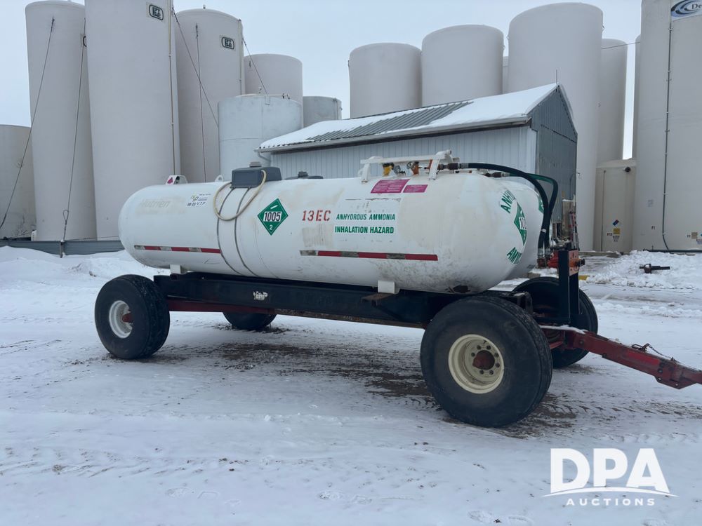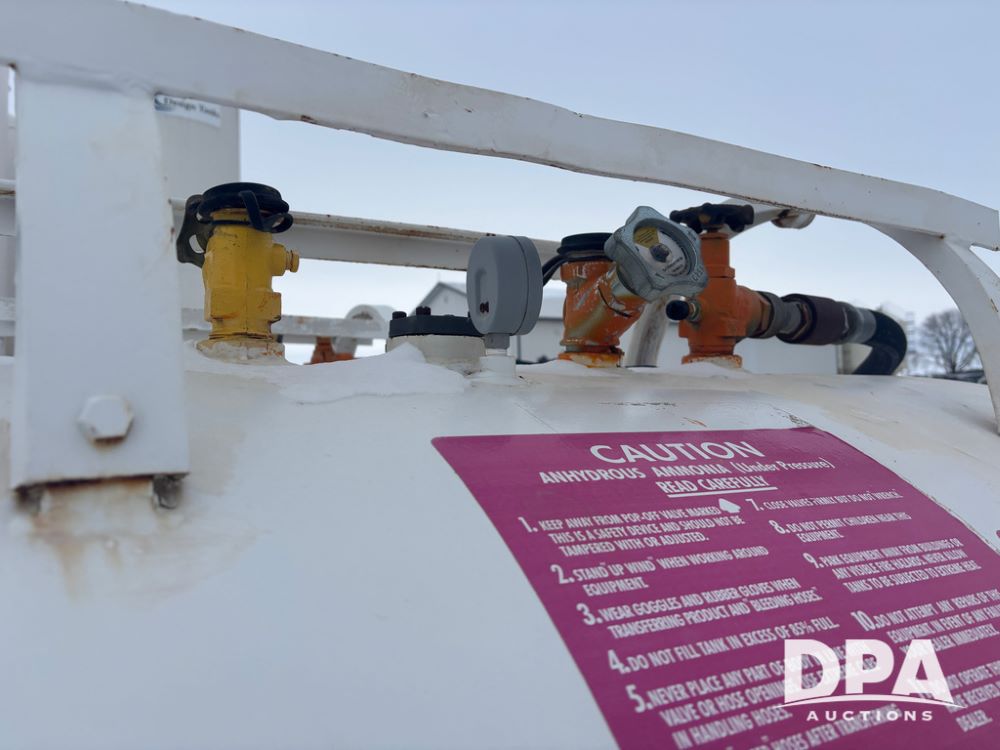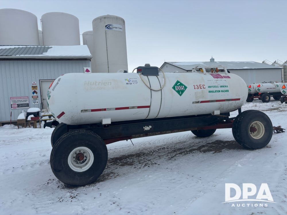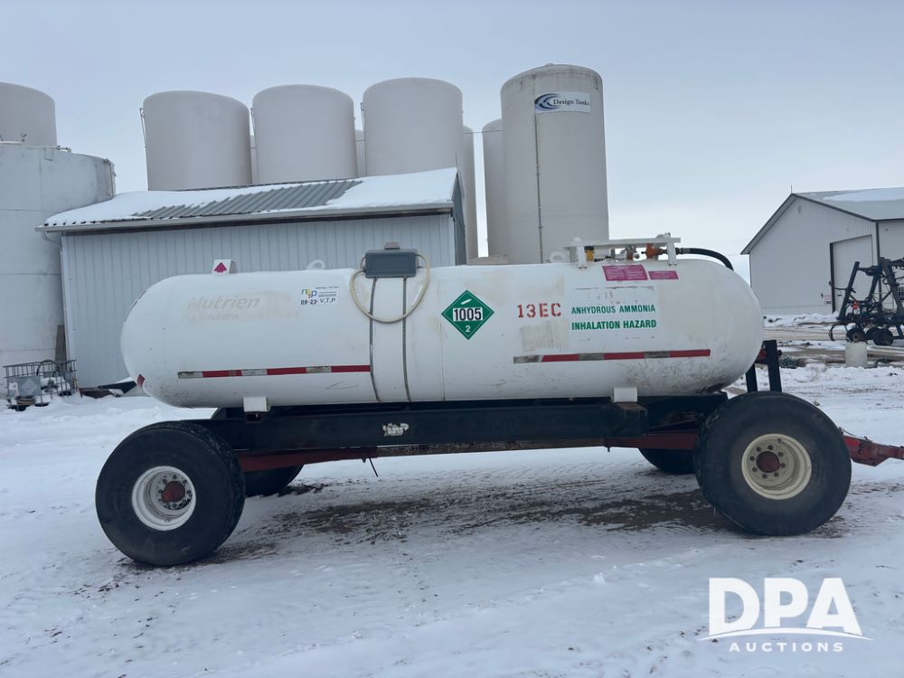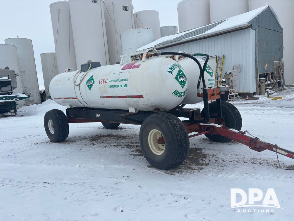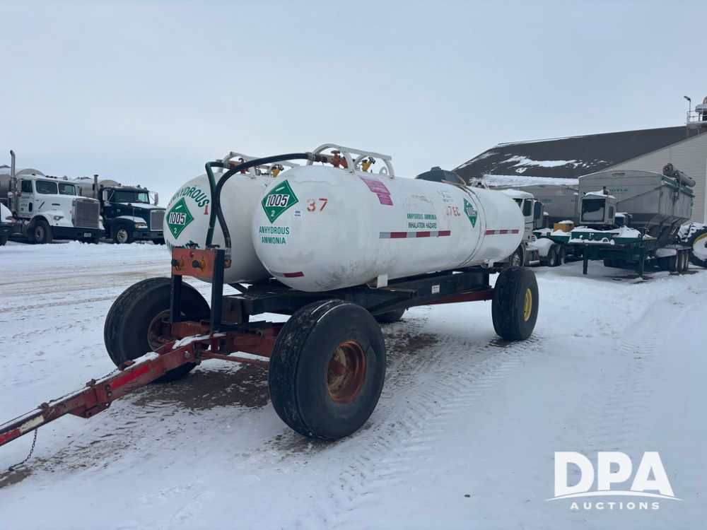 Nh3 Nurse Tank Trailer (DR12839 Unit 55983), double 1,000 gallon Nh3 nurse trailer, both are top front fill w/data tags, Ag Systems running gear, rear hitch, 16.5L-16.1 tires.
