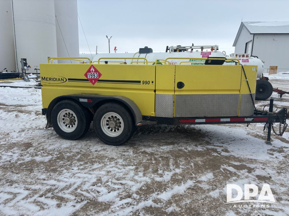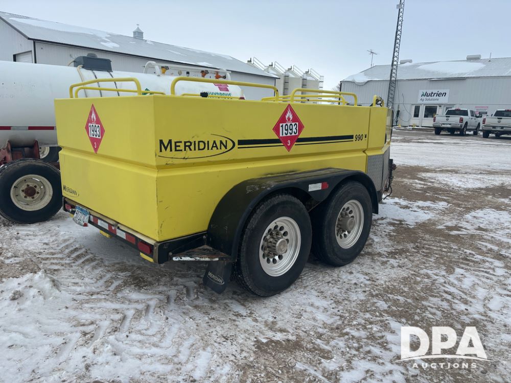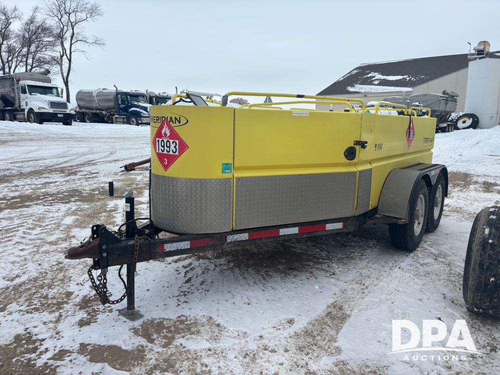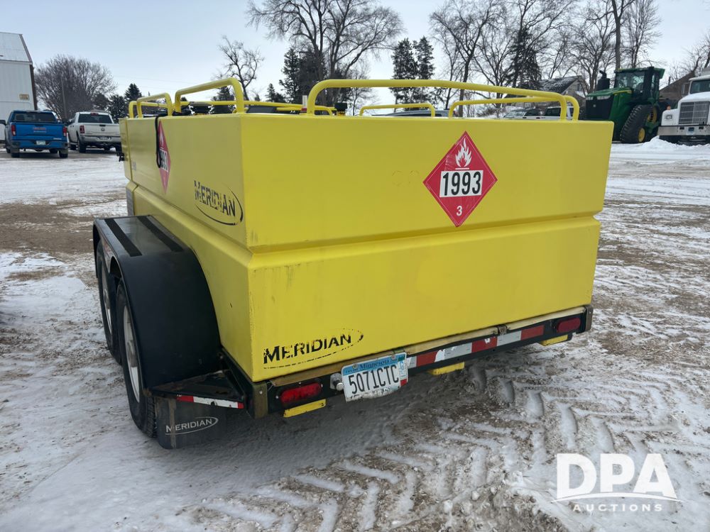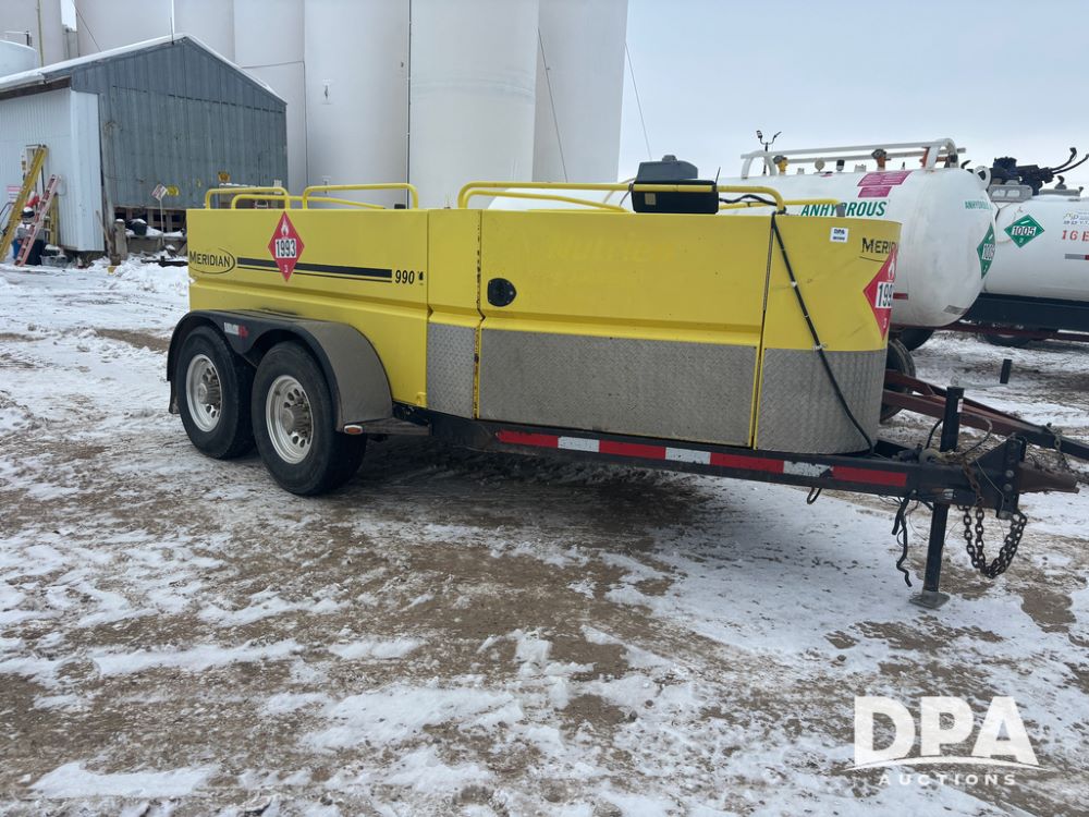 2015 Meridian Fuel Trailer (DR12840 Unit 37032), model 990 fuel trailer, DEF and fuel hose reels, gas engine w/electric start, 1.5'' pump, solar battery charger, tandem axle, 235/80R16 tires.
