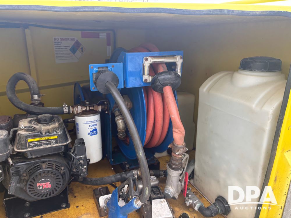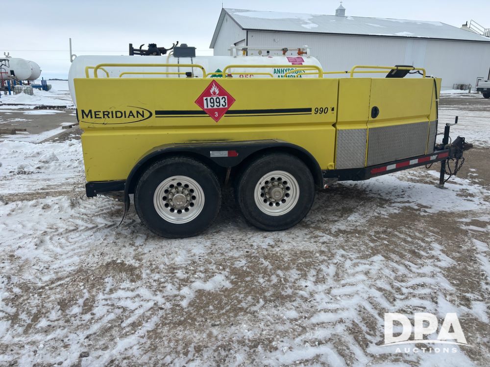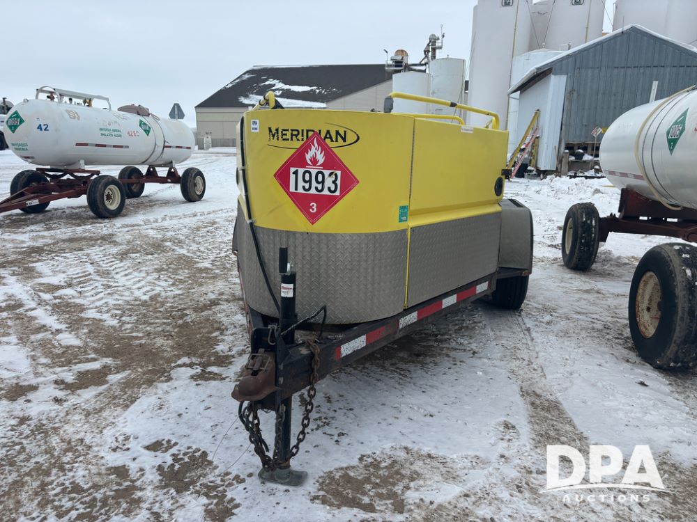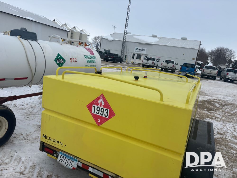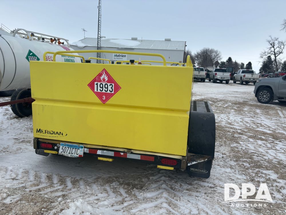 2015 Meridian Fuel Trailer (DR12840 Unit 37032), model 990 fuel trailer, DEF and fuel hose reels, gas engine w/electric start, 1.5'' pump, solar battery charger, tandem axle, 235/80R16 tires.