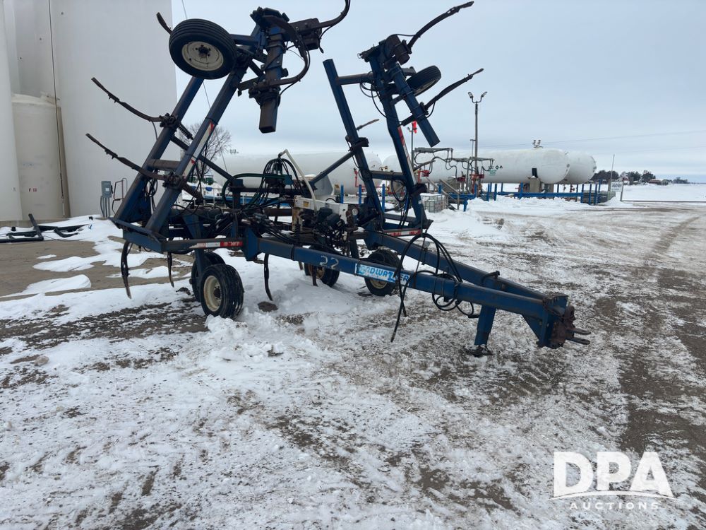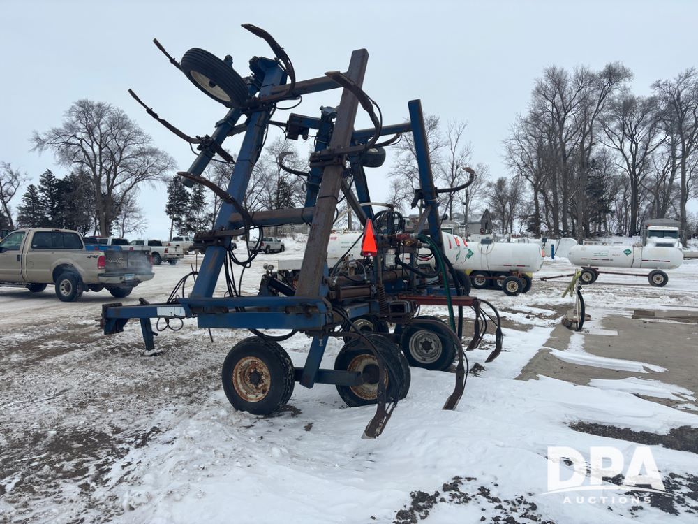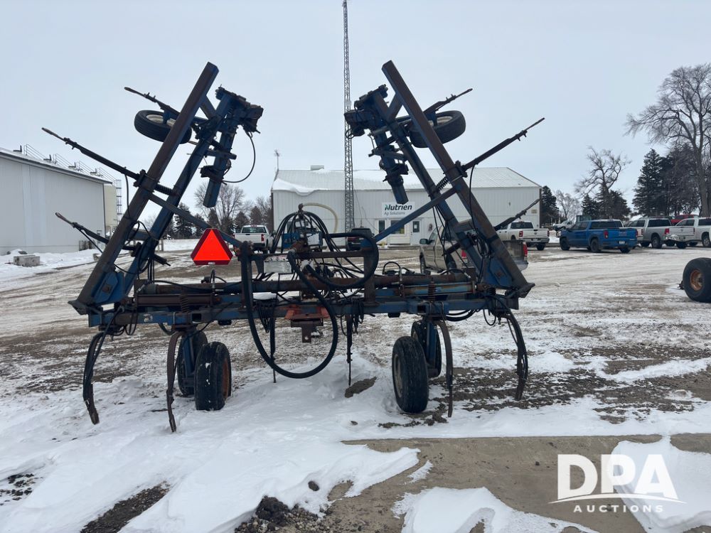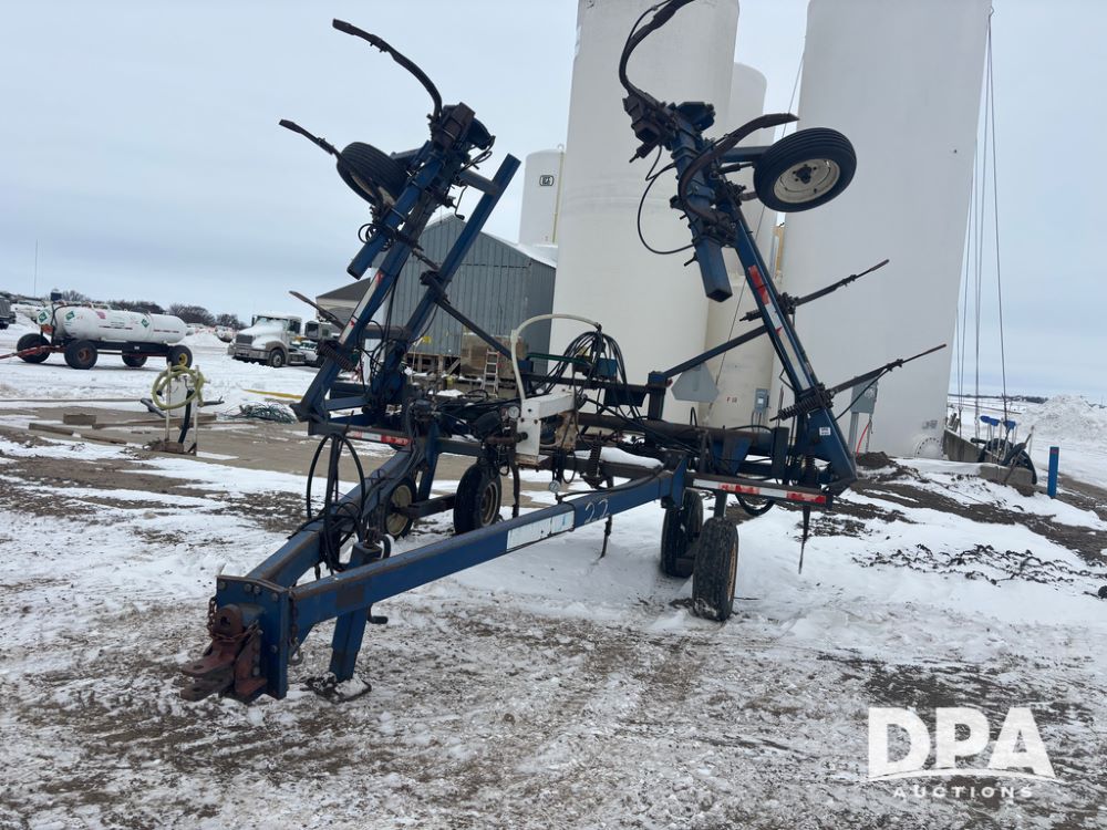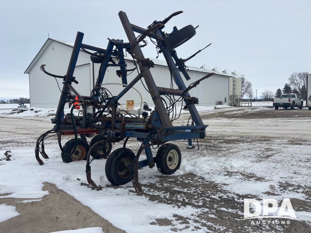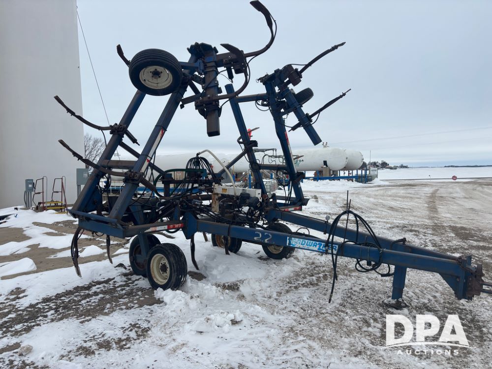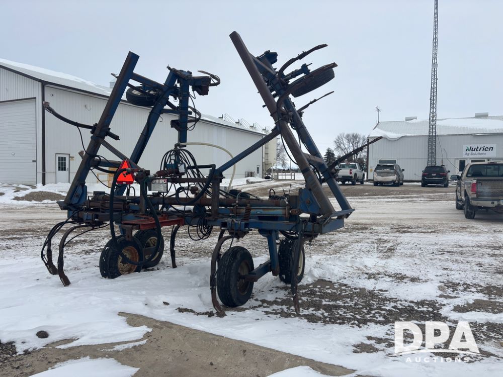 DMI Land Walker Tool Bar (DR12844 Unit 55988), 16 knife pull type tool bar, Raven cooler, conversion tongue, hydraulic wings, manual gauge wheels.