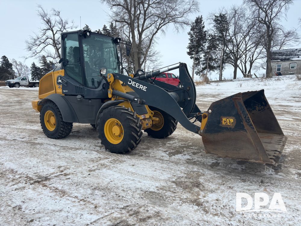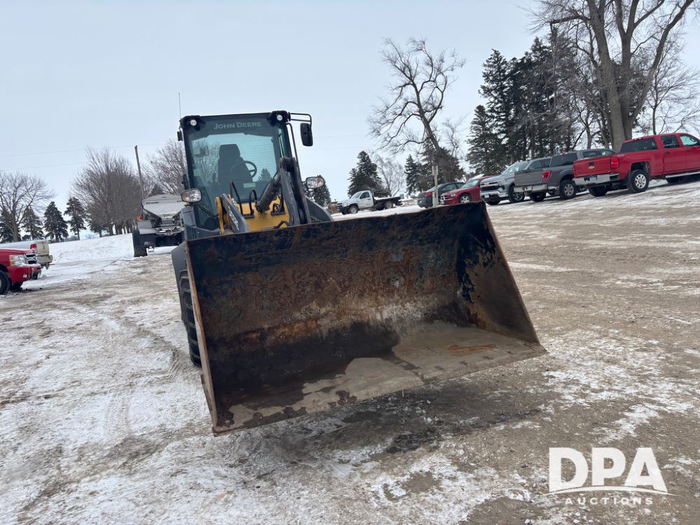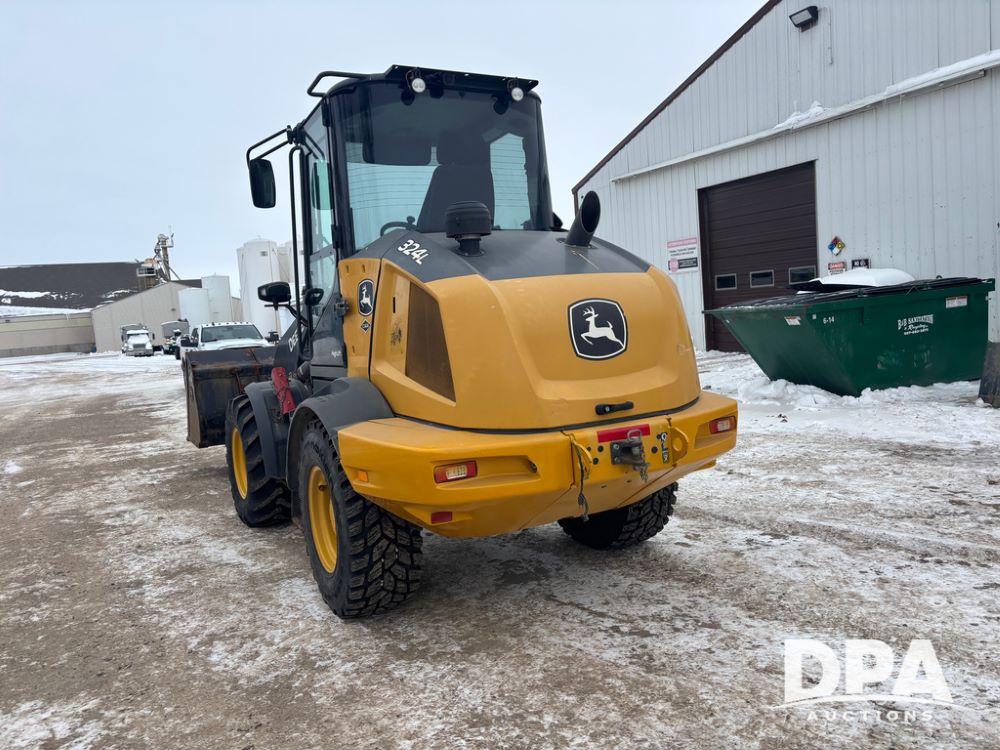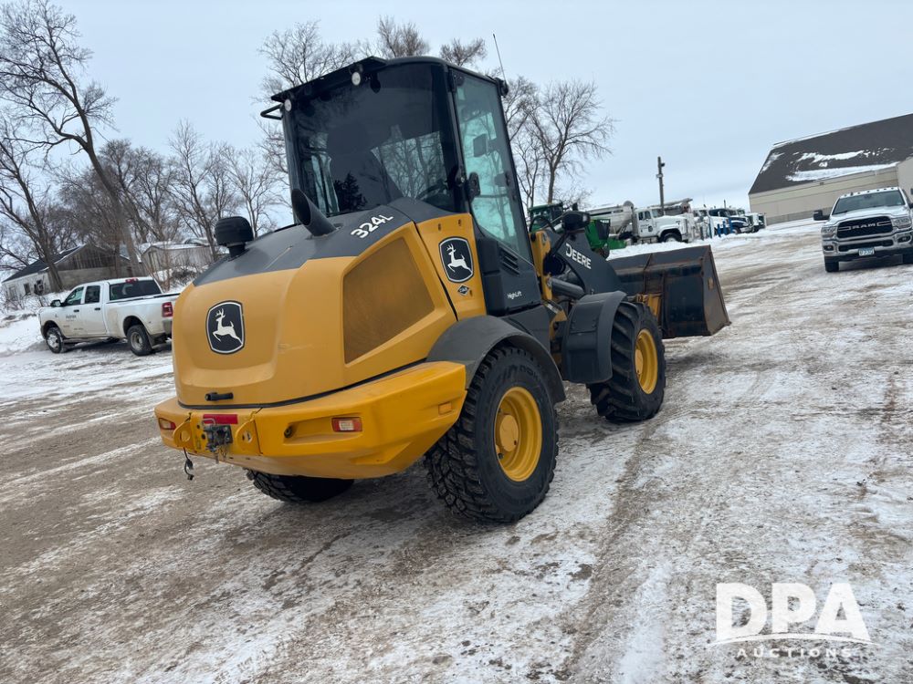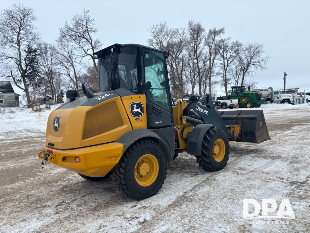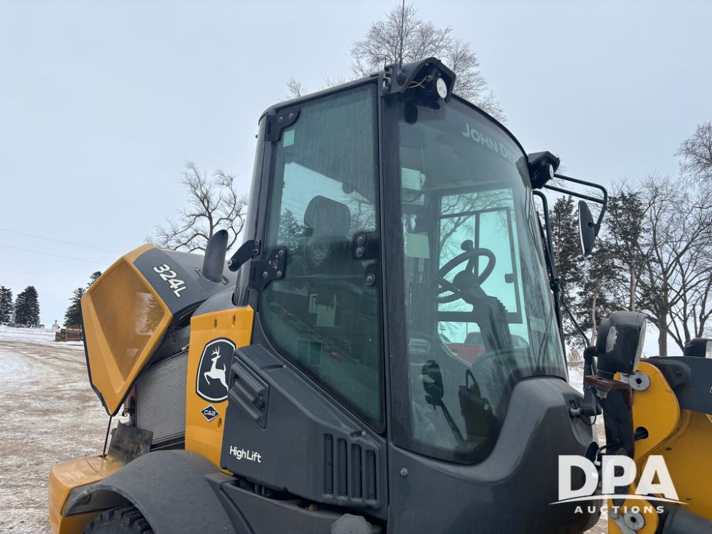 2020 John Deere 324L High Lift Loader (DR12845 Unit 115556), John Dere diesel engine, 3 speed shuttle shift, 4X4, Cat front bucket, auxiliary hydraulic outlets, enclosed cab w/heat & air conditioning, rear hitch, Michelin 400/70R20 tires, shows 2,957 hours.