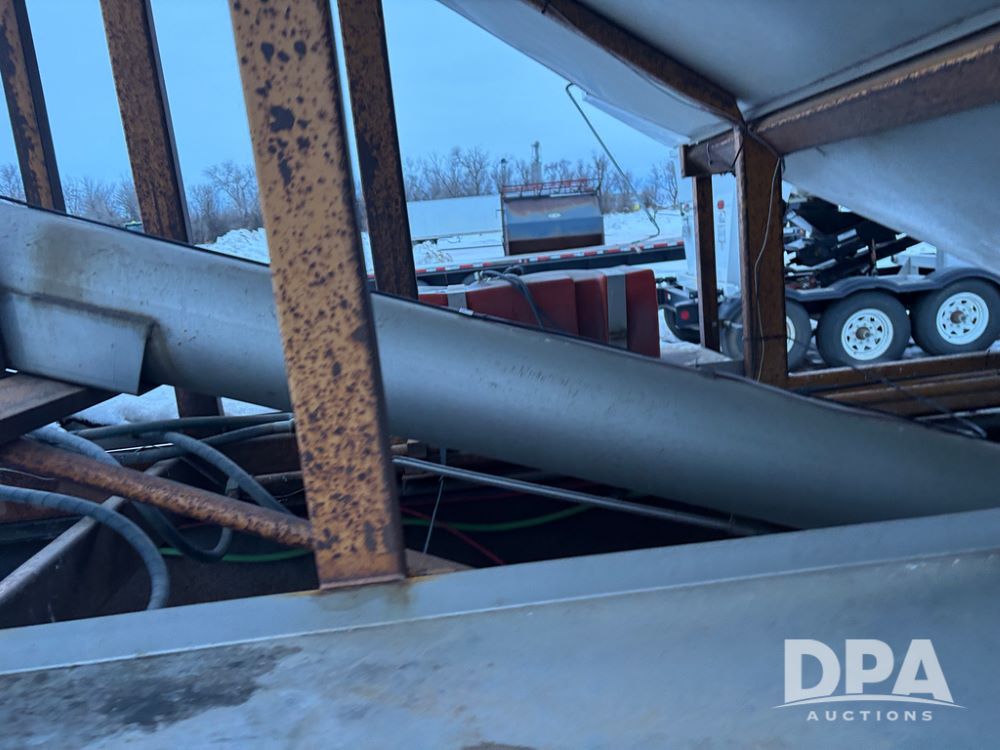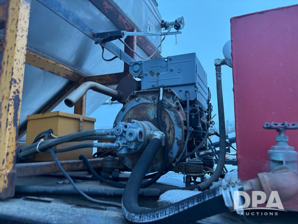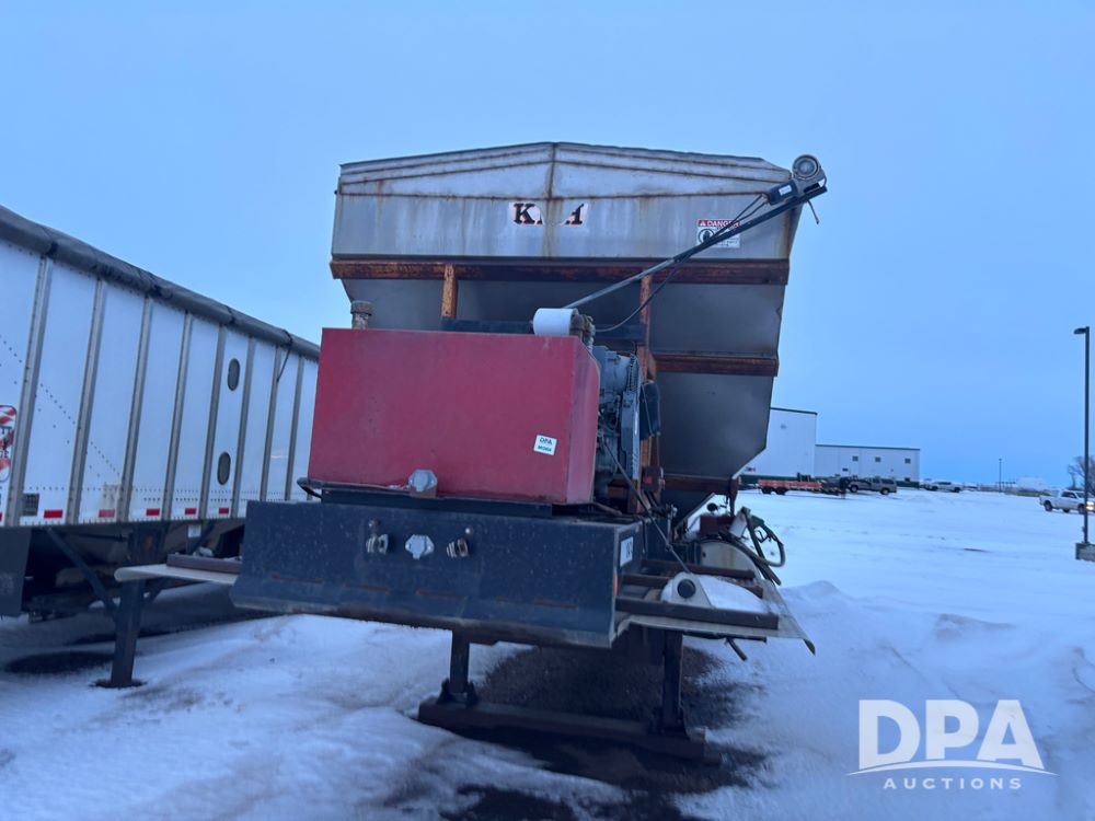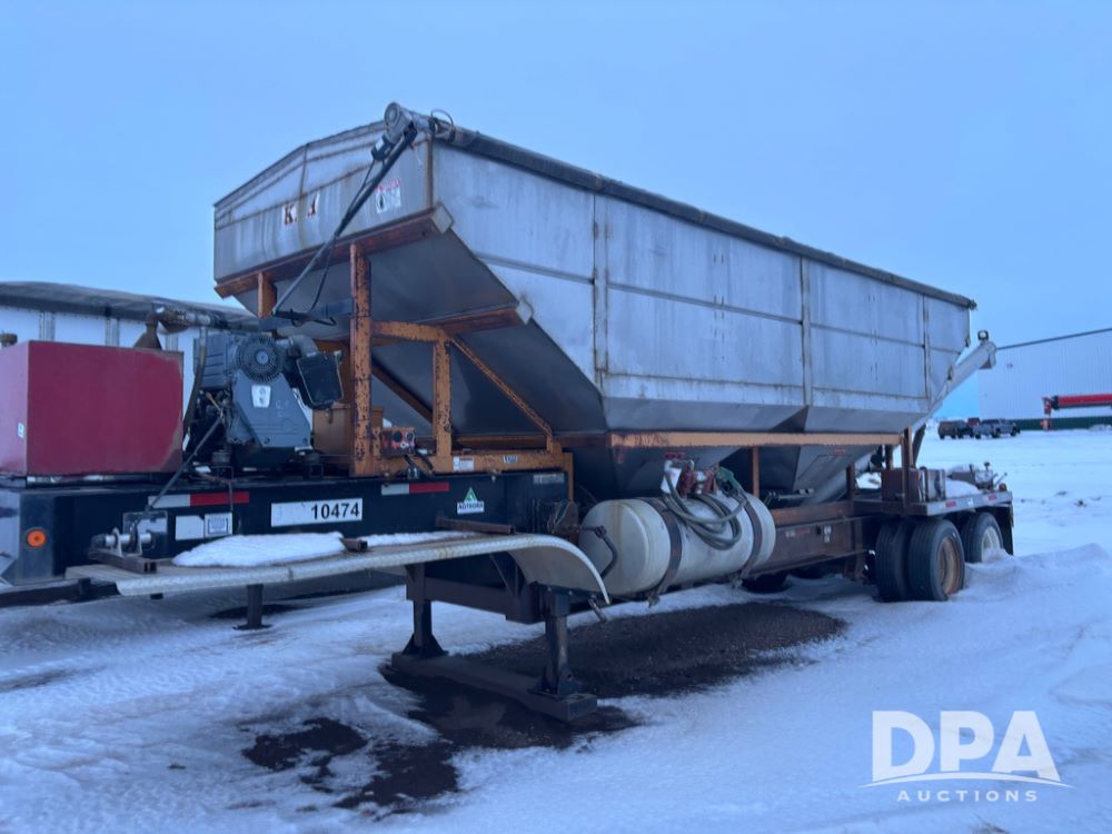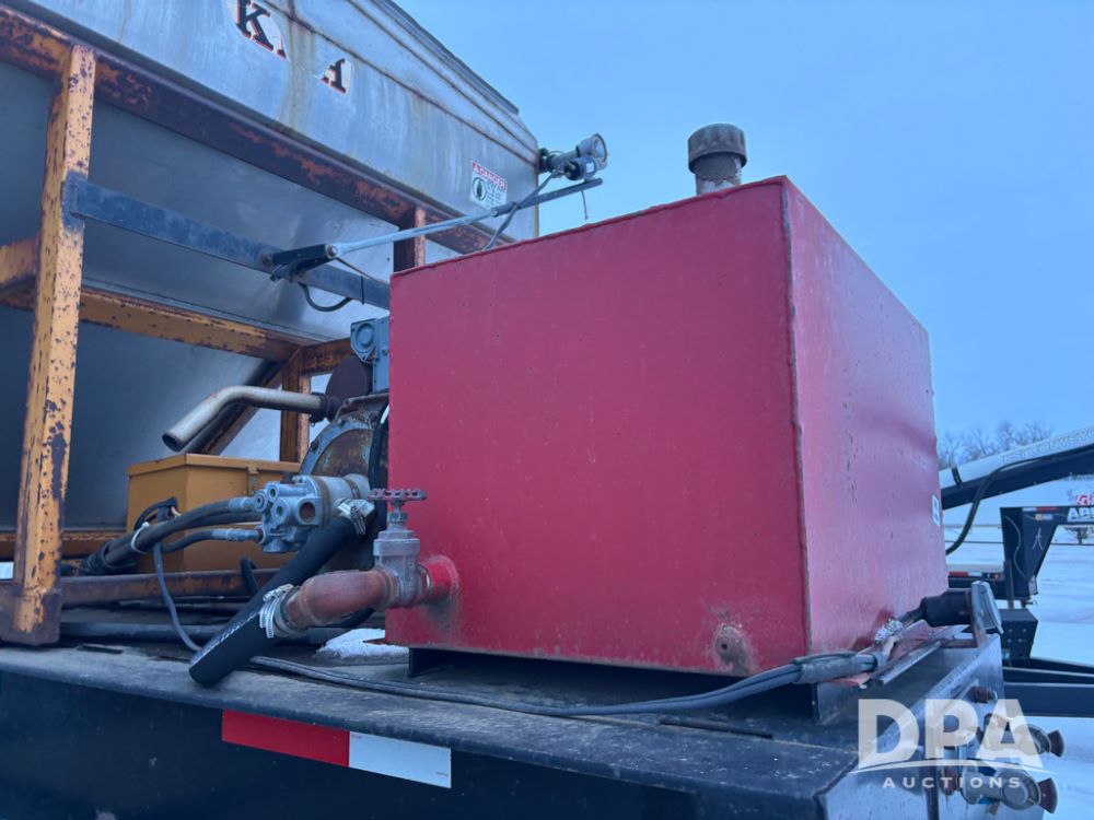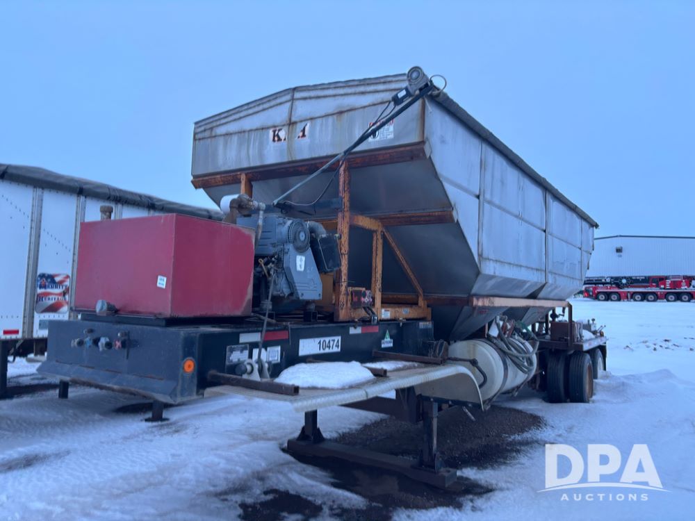2010 KBH Dry Trailer (DR12854 Unit 10474), 24 ton stainless steel hydraulic dry tender trailer, self contained hydraulics w/diesel engine, rear discharge auger, roll over tarp, off road diesel tank w/12 volt pump, tandem axle, spring suspension, 255/70R22.5 tires, shows 621 hours.