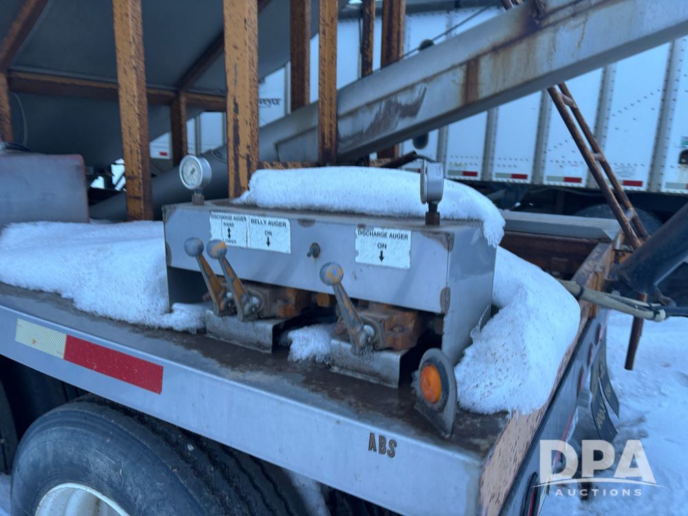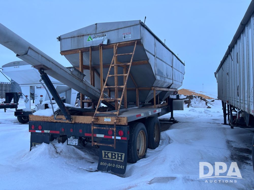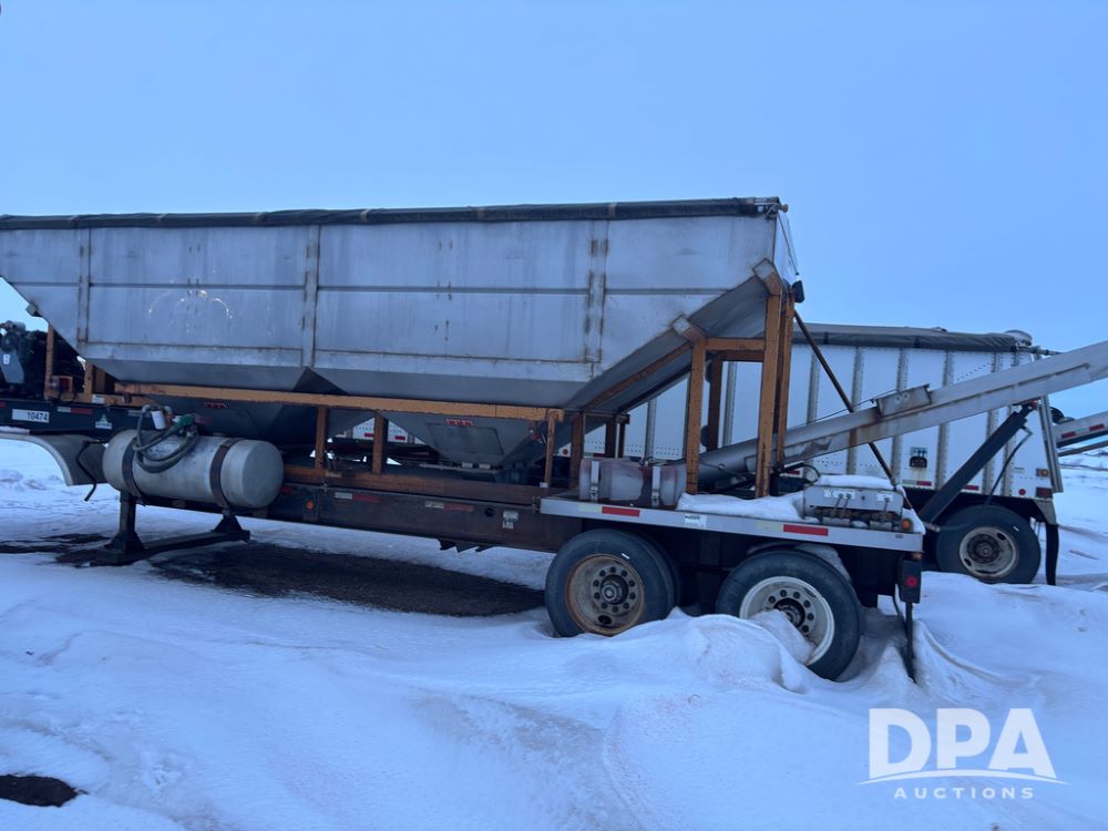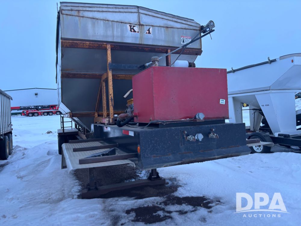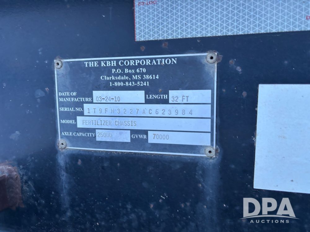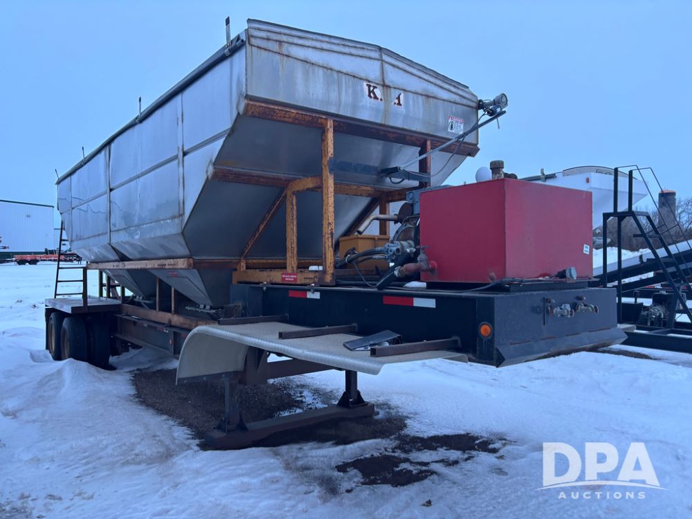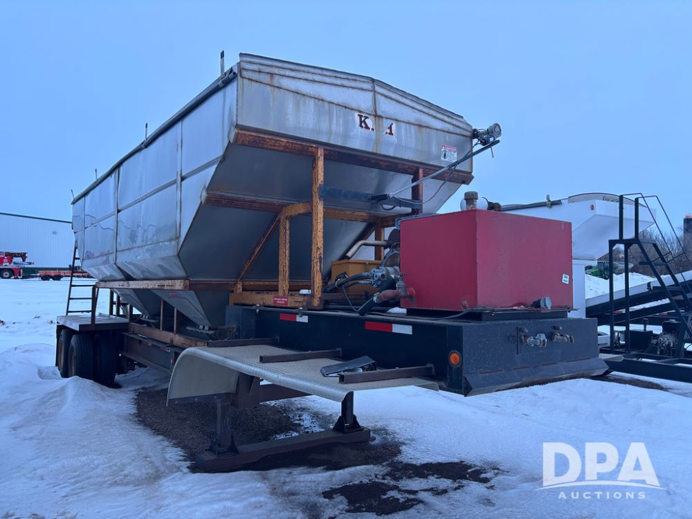 2010 KBH Dry Trailer (DR12854 Unit 10474), 24 ton stainless steel hydraulic dry tender trailer, self contained hydraulics w/diesel engine, rear discharge auger, roll over tarp, off road diesel tank w/12 volt pump, tandem axle, spring suspension, 255/70R22.5 tires, shows 621 hours.