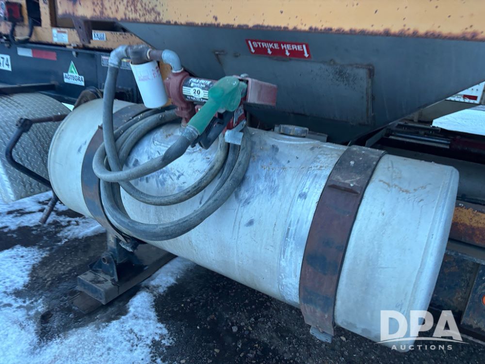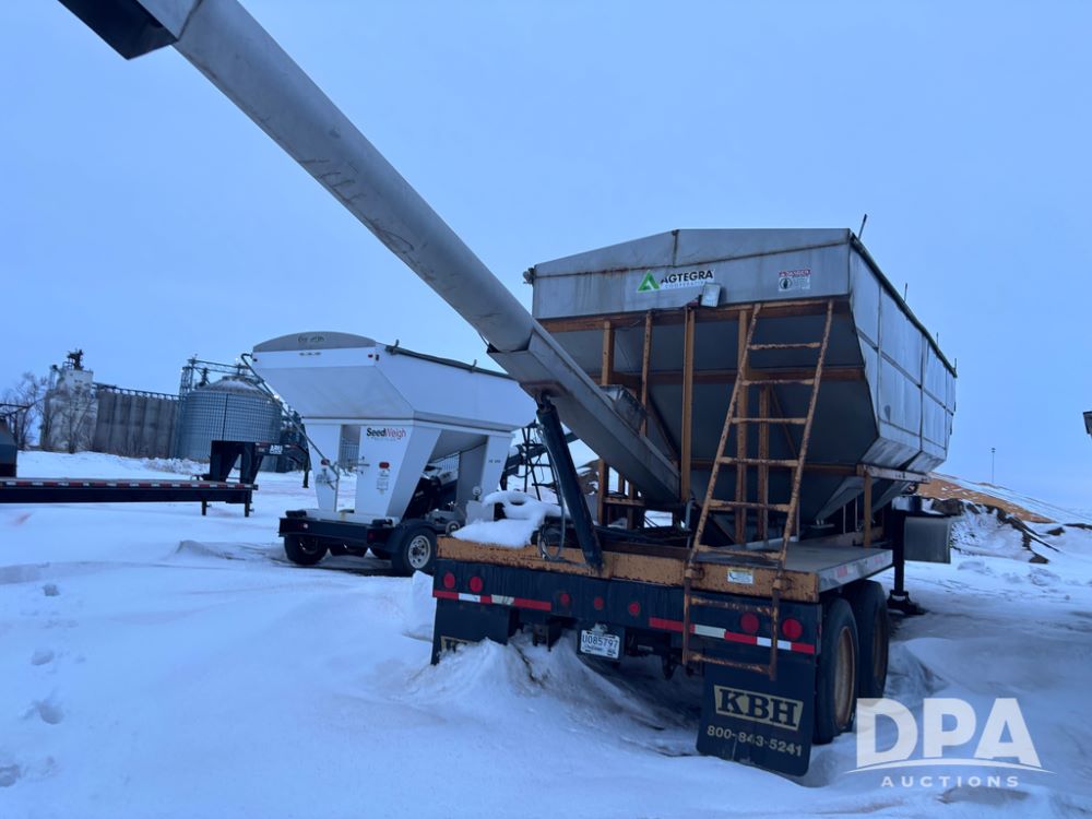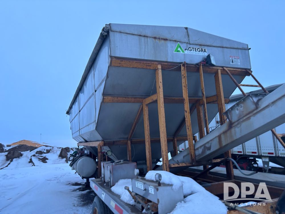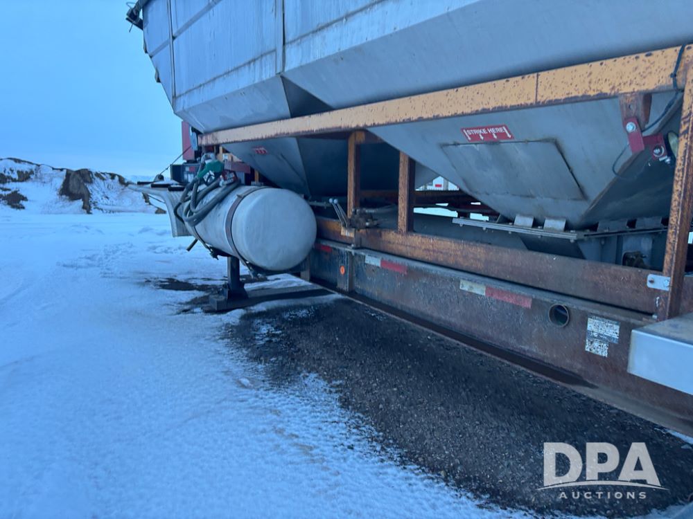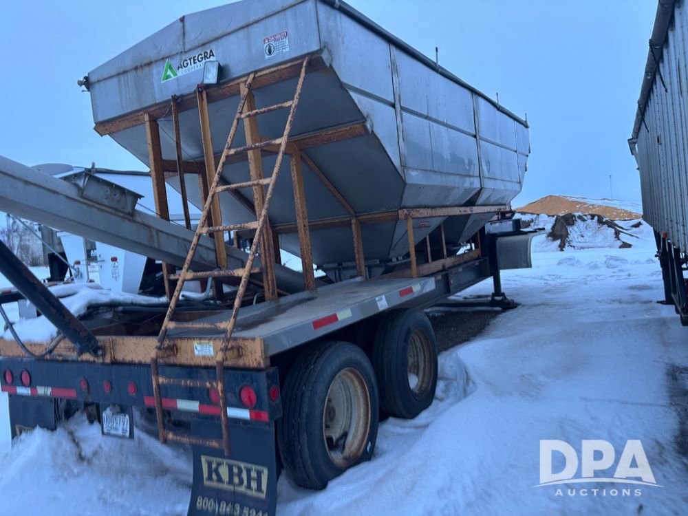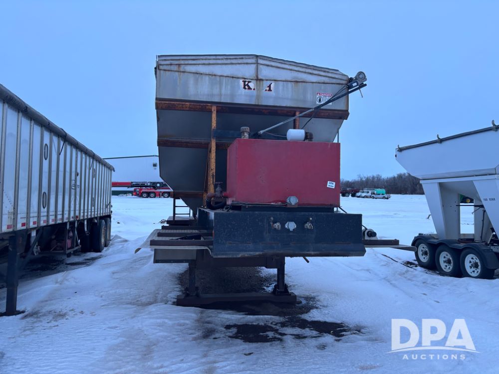 2010 KBH Dry Trailer (DR12854 Unit 10474), 24 ton stainless steel hydraulic dry tender trailer, self contained hydraulics w/diesel engine, rear discharge auger, roll over tarp, off road diesel tank w/12 volt pump, tandem axle, spring suspension, 255/70R22.5 tires, shows 621 hours.