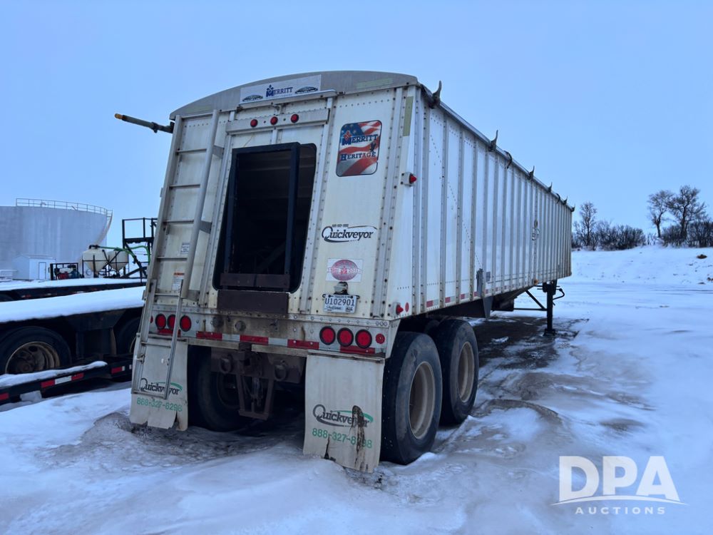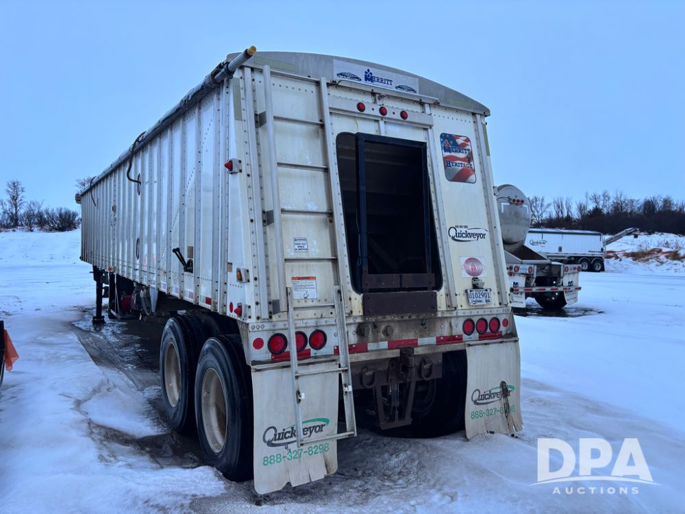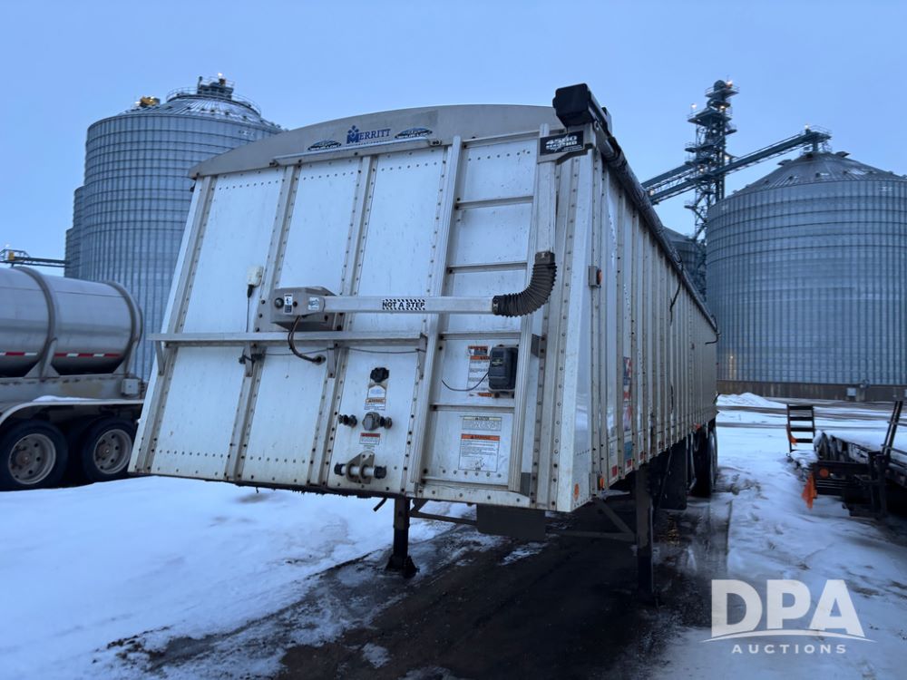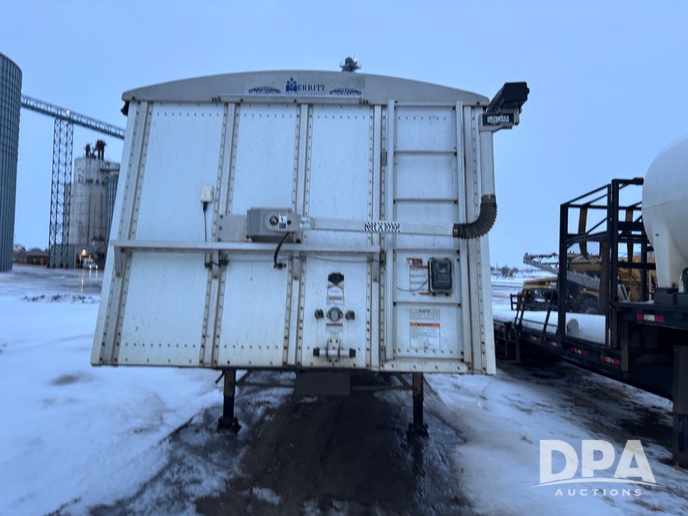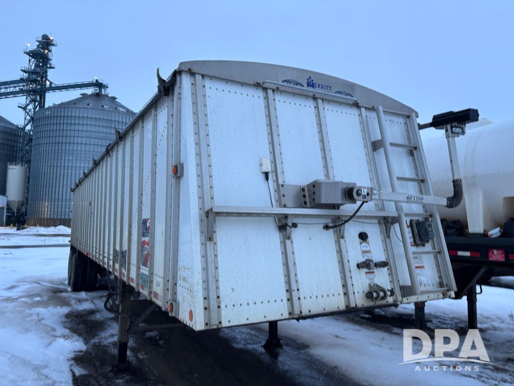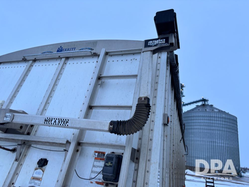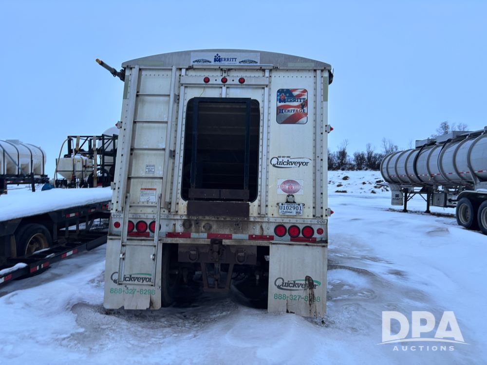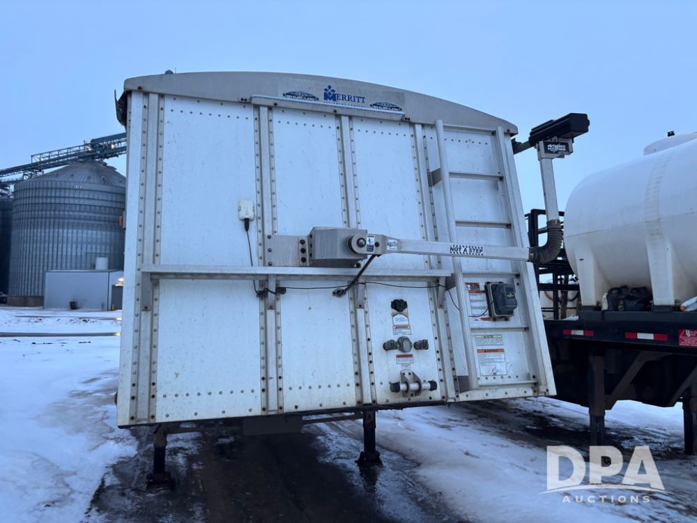 2014 Merritt Dry Trailer (DR12855 Unit 10617), 40' aluminum dry tender trailer, hydraulic belly and rear discharge conveyors, are included but NOT on trailer, electric roll tarp, electric traps, self contained hydraulics w/Honda gas engine and electric start, tandem axle, air ride suspension, 22.5 tires, all aluminum wheels.