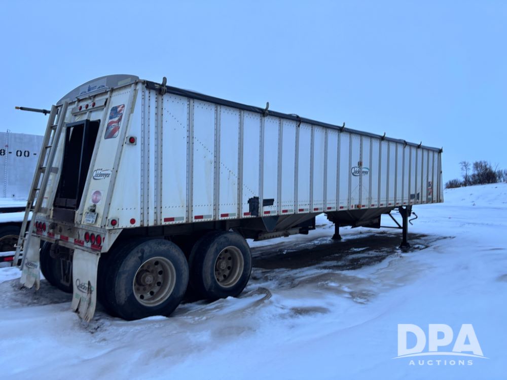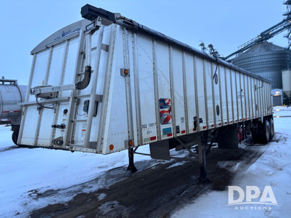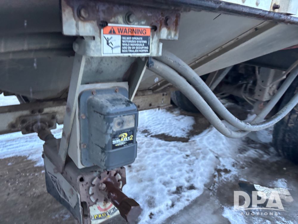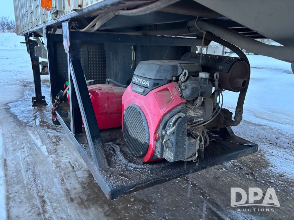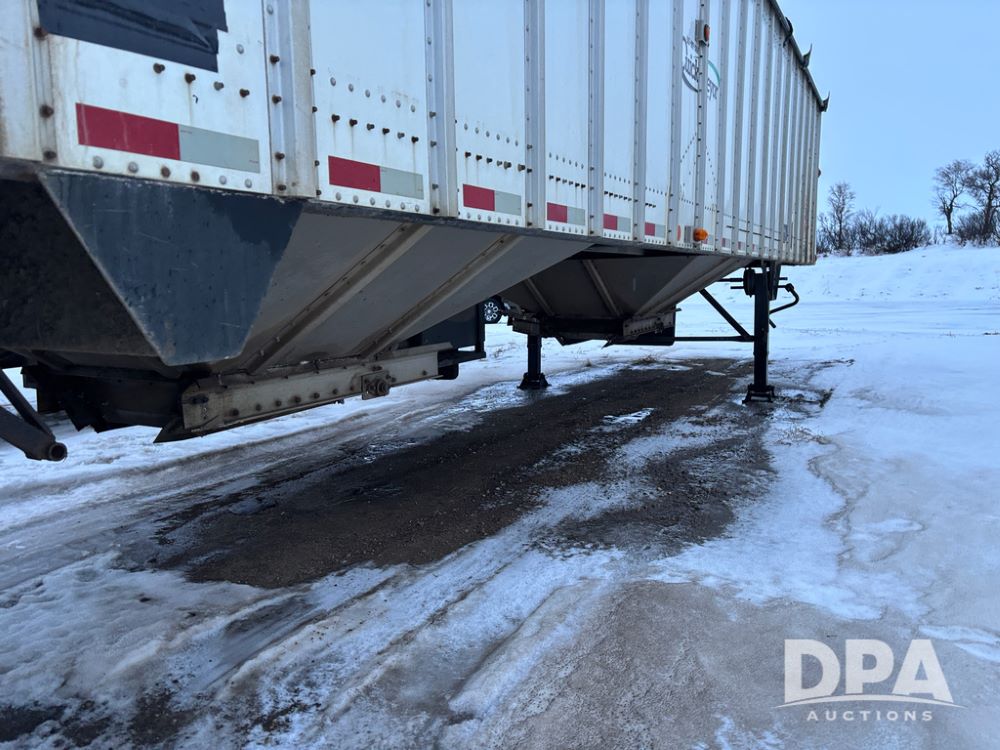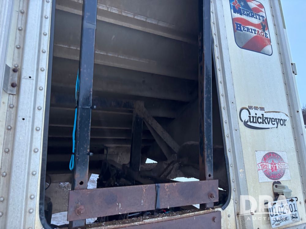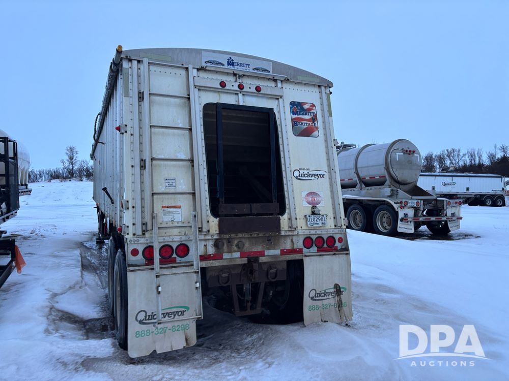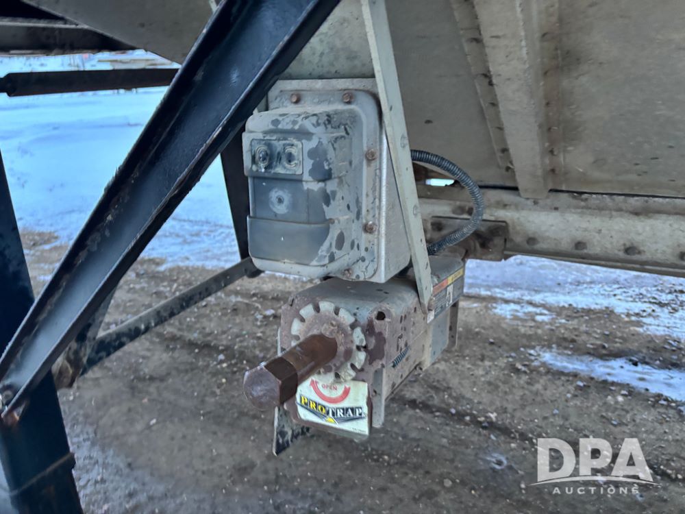 2014 Merritt Dry Trailer (DR12855 Unit 10617), 40' aluminum dry tender trailer, hydraulic belly and rear discharge conveyors, are included but NOT on trailer, electric roll tarp, electric traps, self contained hydraulics w/Honda gas engine and electric start, tandem axle, air ride suspension, 22.5 tires, all aluminum wheels.