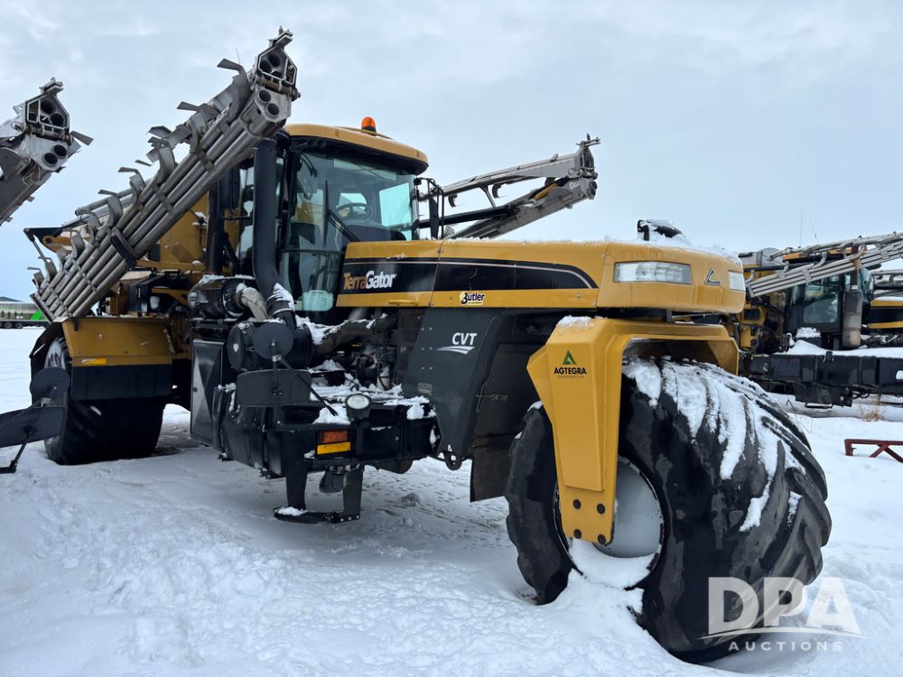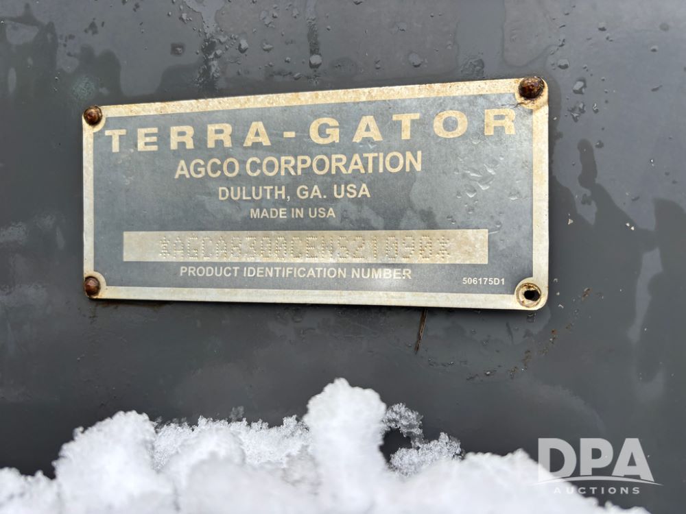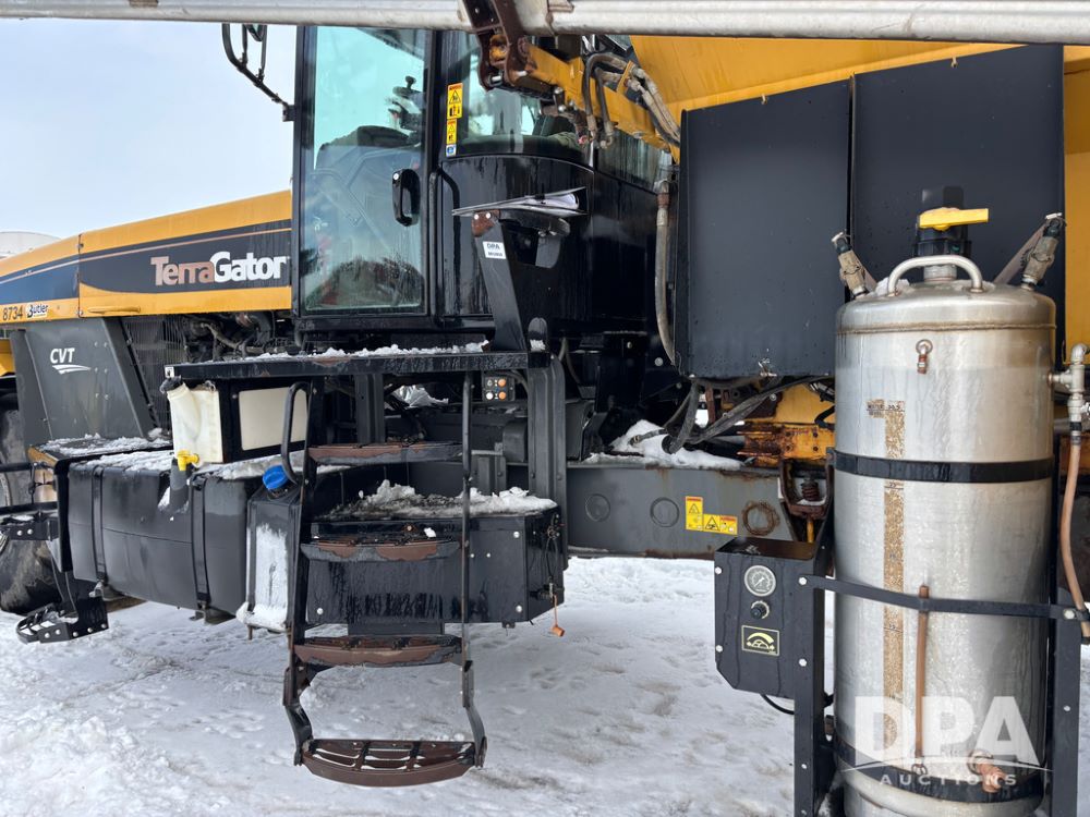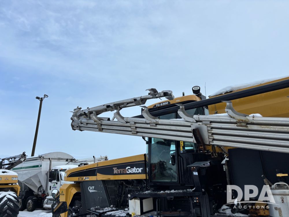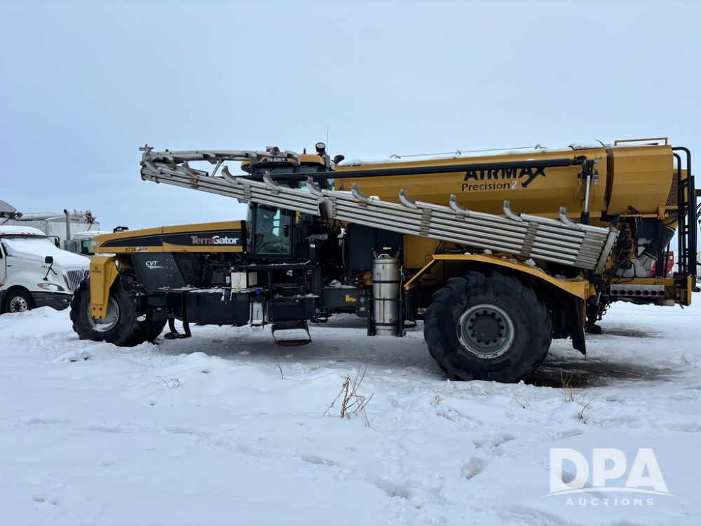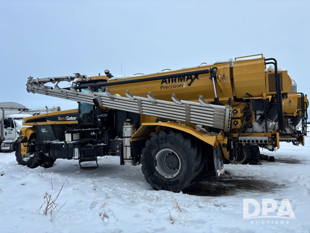 2014 Terra Gator 8300 Floater (DR12859 Unit 8734), diesel engine, CVT transmission, Air Max Precision 2 hydraulic dry air flow box, 70' stainless steel boom, Micro ingredient bin, stainless steel foam tank, electric roll over tarp, Raven Viper IV controller, light bar, cab cam, cab heat/air conditioning, AM/FM CD radio, Michelin 1000/50R25 tires, shows 4916 hours.
