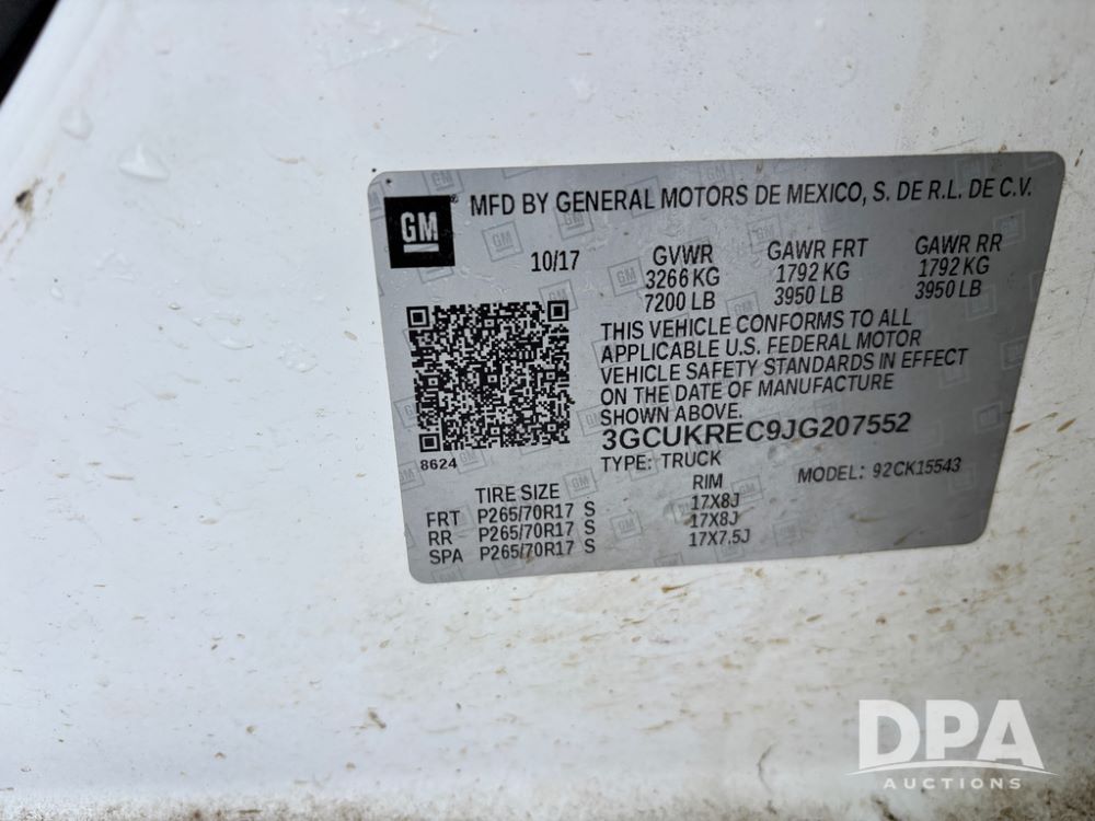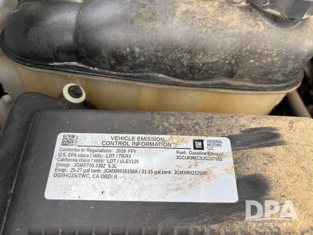 2018 Chevy Silverado Pickup (DR12867 Unit 9981), 5.3 liter gas engine, automatic transmission, 4 door cab, 4X4, bed tonneau cover, power windows, locks & mirrors, rear receiver hitch, 265/70R17 tires, odometer reads 185,938 miles.