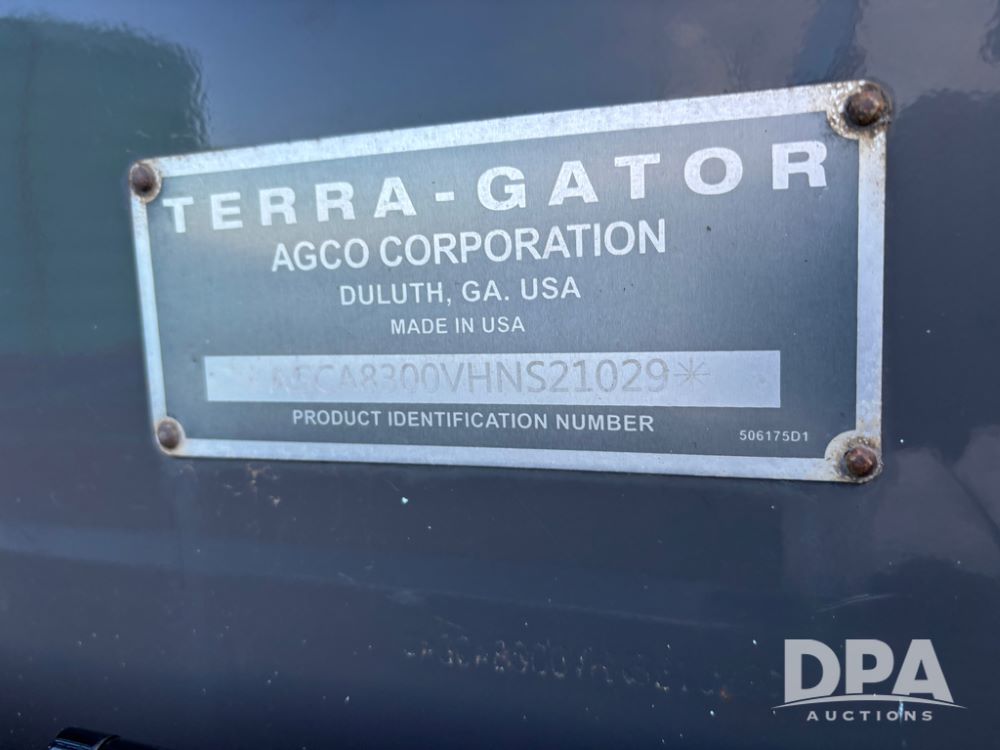2017 Terra Gator 8300B Floater (DR12873 Unit 10981), diesel engine, CVT transmission, Air Max Precision 2 hydraulic dry air flow box, 70' stainless steel boom, electric roll over tarp, Raven Viper IV controller, light bar, cab cam, cab heat/air conditioning, AM/FM CD radio, Trelleborg 1000/50R25 tires, shows 4,555 hours.