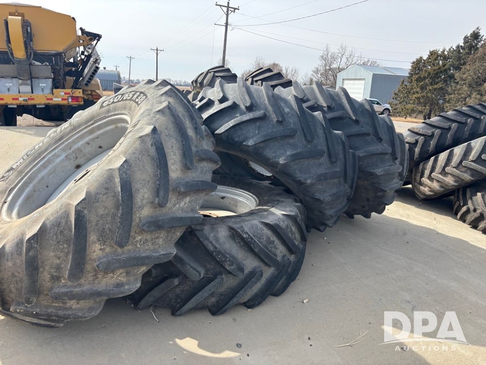 Float Tires (DR11072), set of (4) Michelin 650/65R38 tires, mounted on Case IH 4440 wheels.
