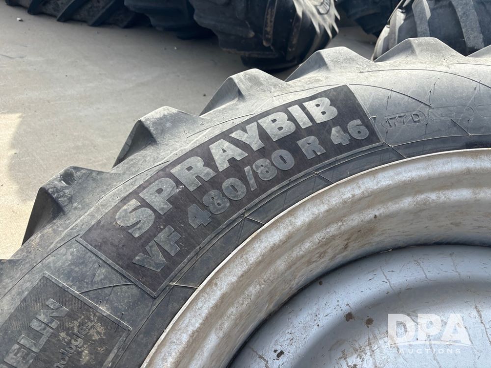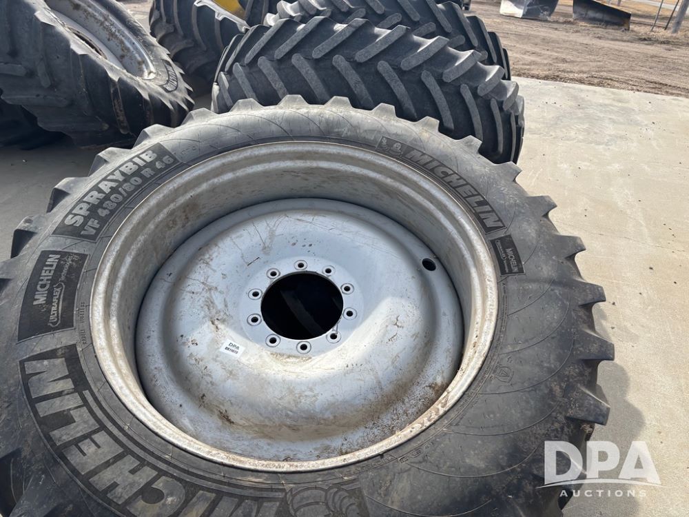 Row Crop Tires (DR11073), set of (4) Michelin 480/80R46 row crop tires, mounted on Case IH 4440 wheels.