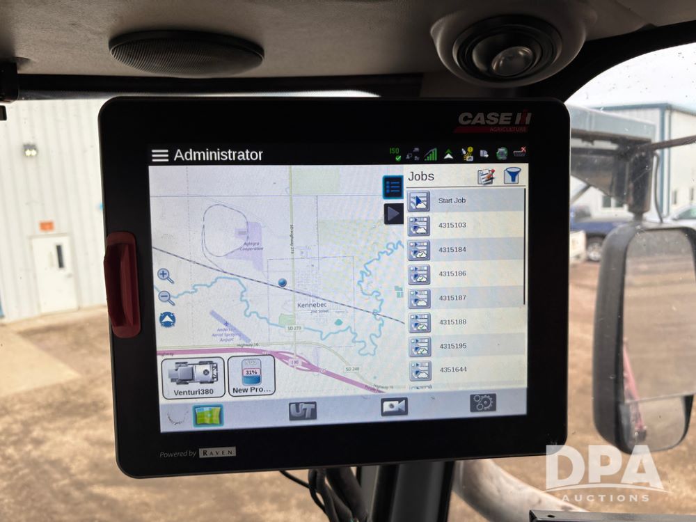 2018 Venturi 380 (DR12876 Unit 13026), Cummins diesel engine, Allison automatic transmission, Case IH 810 Flex Air dry air flow system, stainless steel boom, electric roll over tarp, Raven receiver and controller, light bar, cab heat/air conditioning, 380/90R46 row crop tires, shows 4,296 hours.