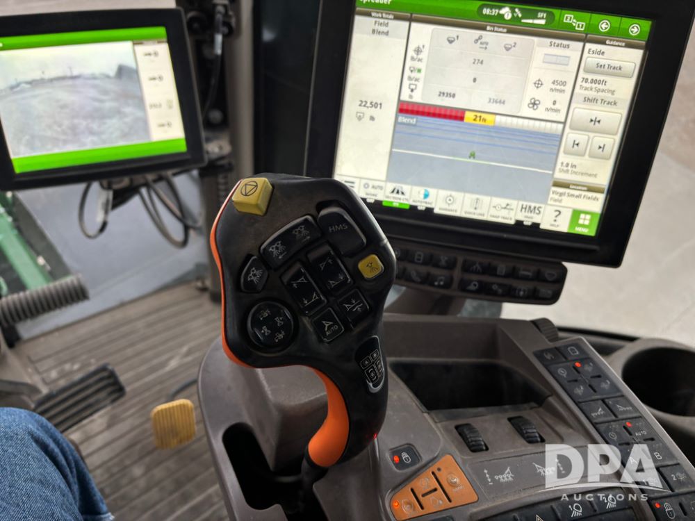 2020 John Deere F4365 Floater (DR12878), John Deere diesel engine, hydrostatic transmission, John Deere AB485 hydraulic dry air flow box, 70' stainless steel boom, electric roll over tarp, StarFire 6000 receiver, John Deere controls, buddy seat, AM/FM CD radio, cab heat/air conditioning, Trelleborg 750/50R26 front tires, Michelin 1000/55R32 rear tires, shows 2,361 hours.