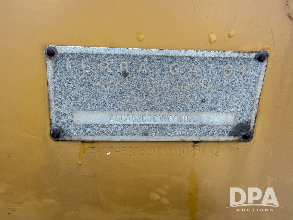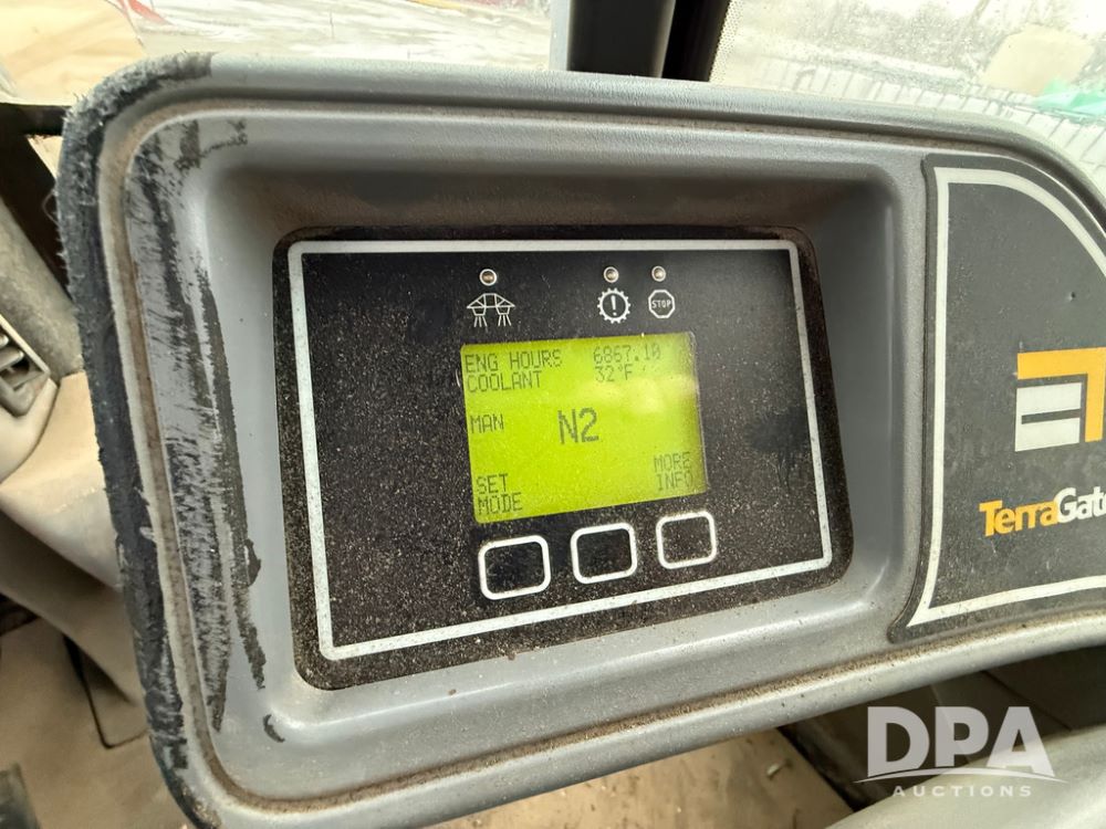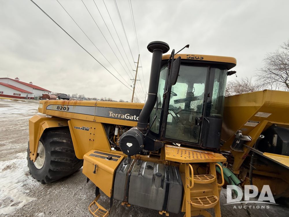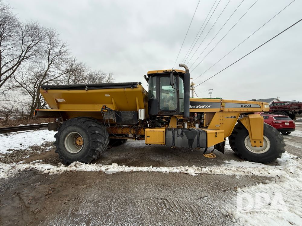 2010 Terra Gator 8203 Dry Floater (PZ14282), diesel engine, Terra Shift transmission, air conditioning, heat, New Leader L3020 G4 stainless steel dry spreader box (S/N 121362), twin spinner, all hydraulic, roll over tarp, 66x43.00-25 front tires, 1000/50R25 rear tires, no monitor, shows 6,867 hours.