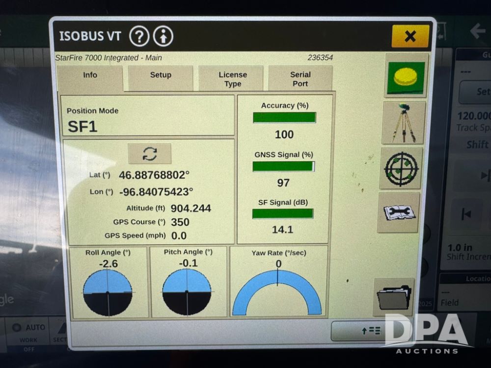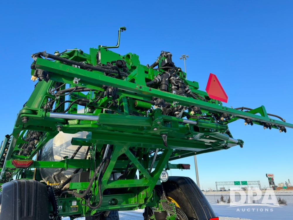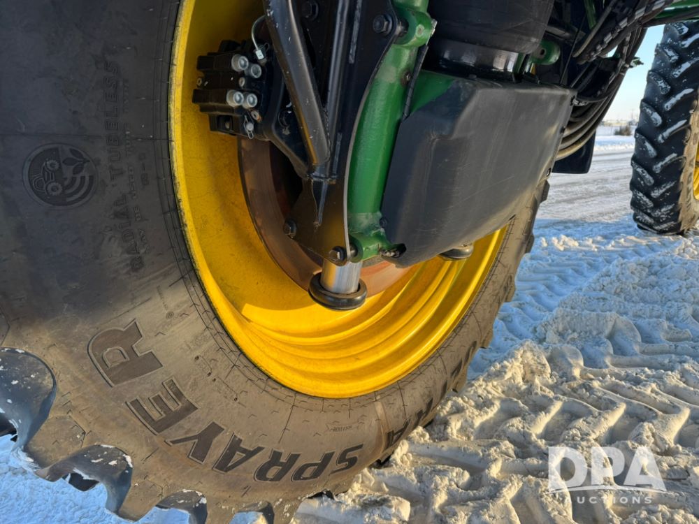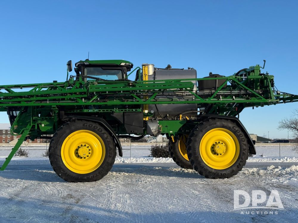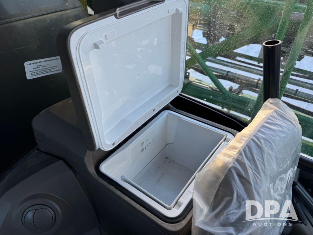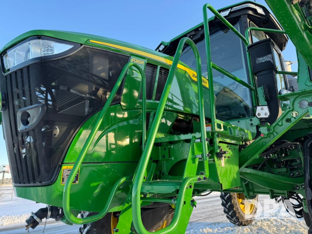 2025 John Deere 616R Sprayer (PD5407), 9.0L John Deere diesel engine, hydrostatic transmission, Premium cab with leather, heated/cooled seat, heat, air conditioning, AM/FM radio, 1600 gallon stainless steel liquid system, 120 foot boom, 5 way nozzle bodies, BoomTrac Pro 2, rear mount poly rinse tank, stainless steel chemical inductor, automatic solution control, front fill option, Goodyear 380/105R50 tires, fendors, G5Plus Command Center Display monitor, Integrated StarFire 7000 receiver, shows 128 hours.