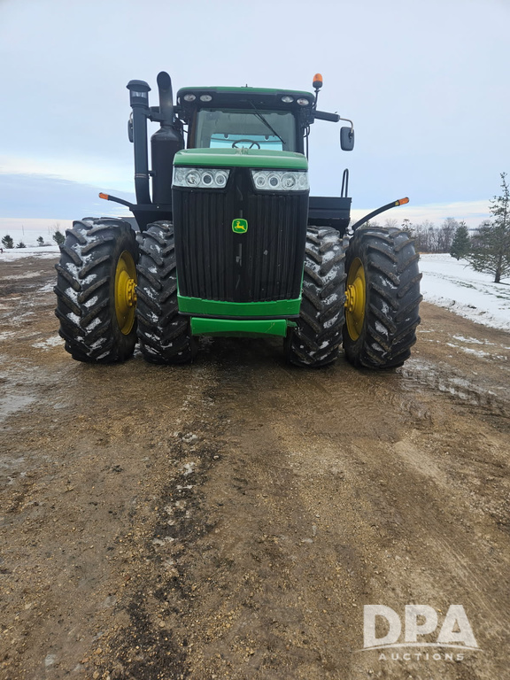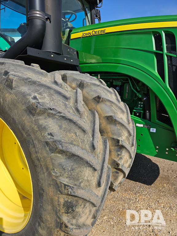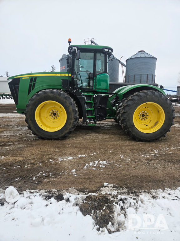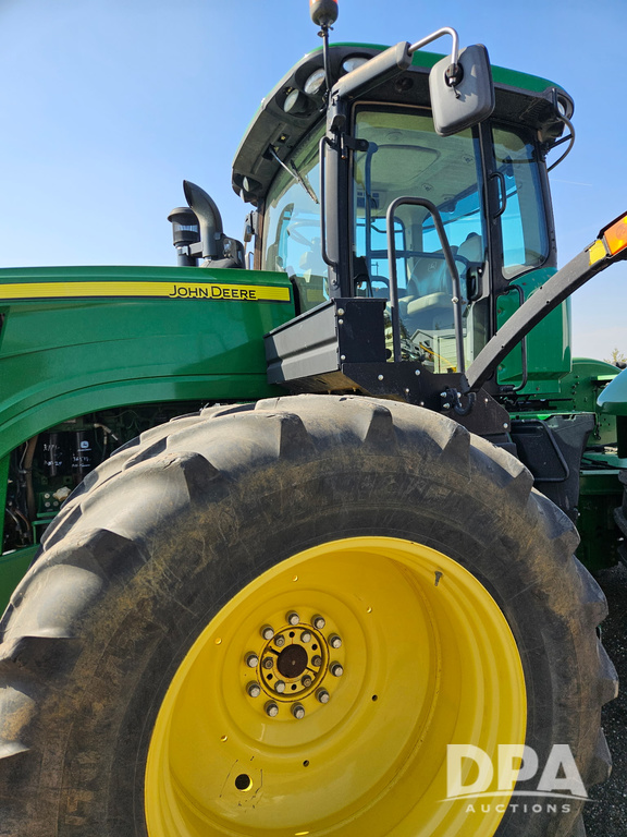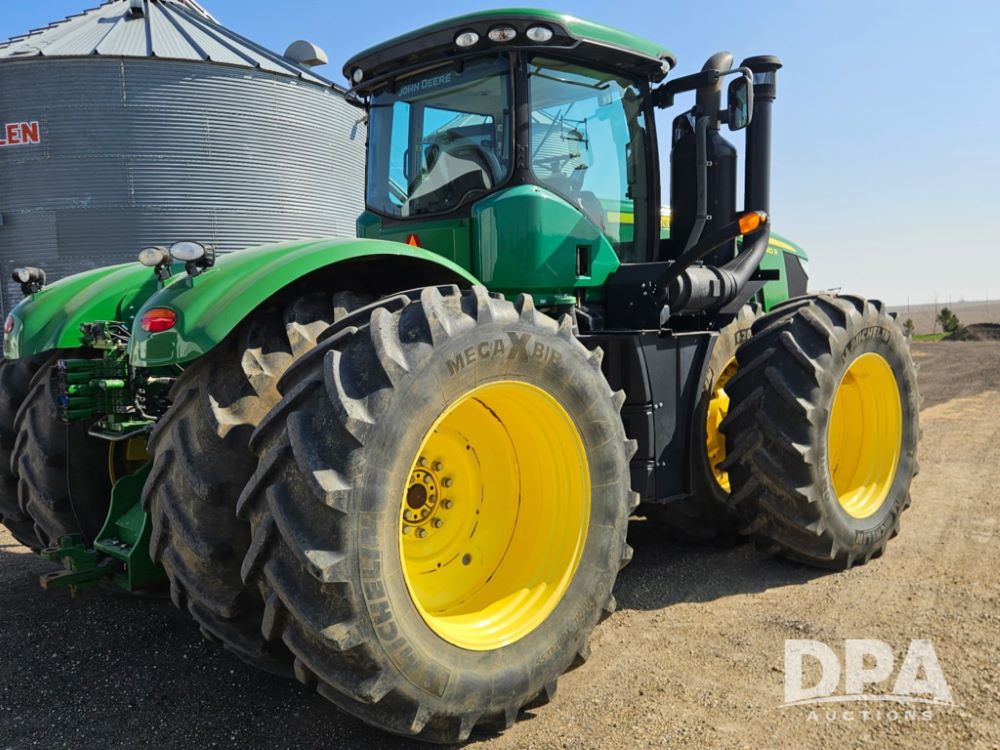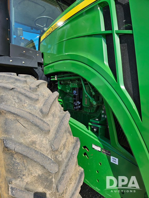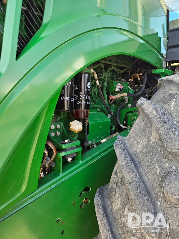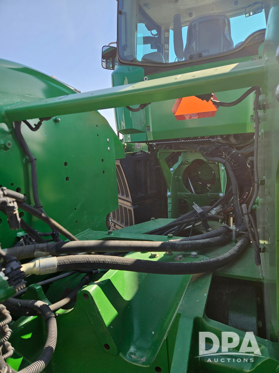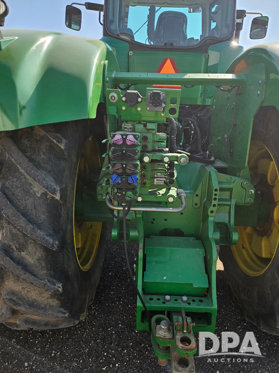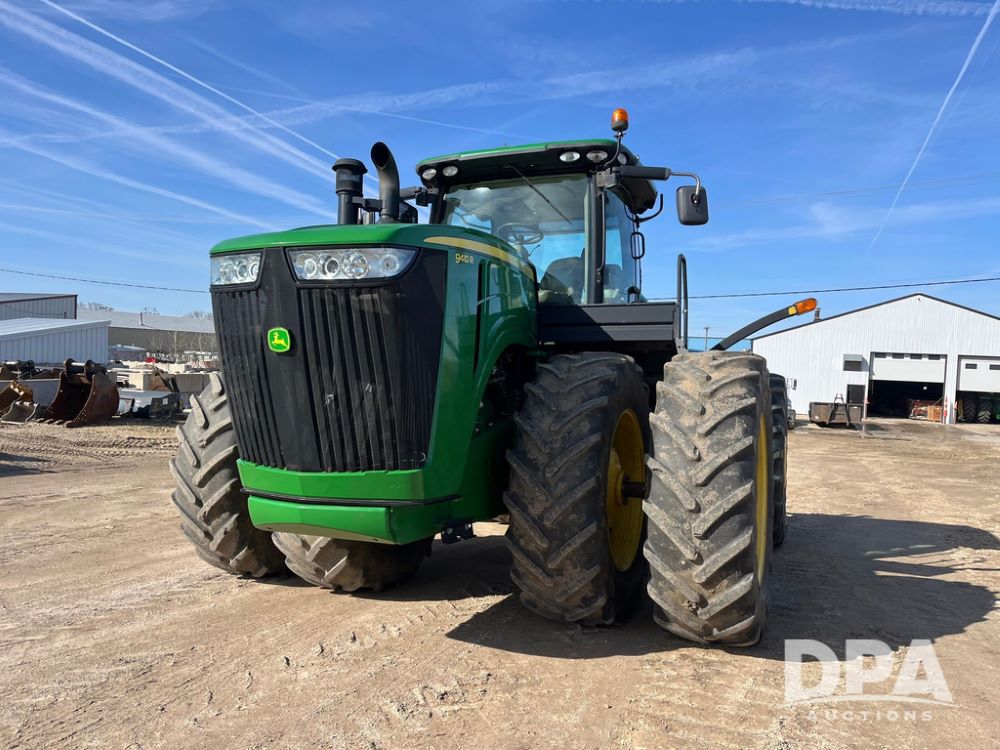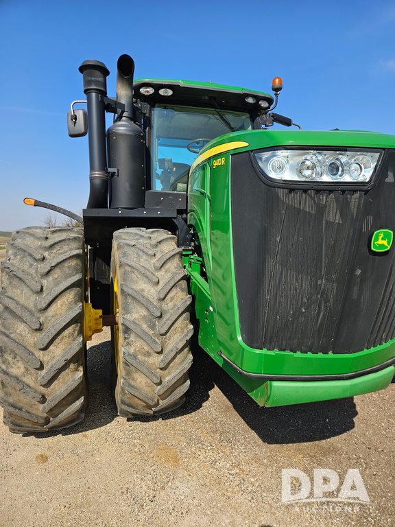 2014 John Deere 9410 Tractor (PD5395), 4WD, 13.5L turbocharged diesel engine, 410 hp, powershift transmission, 5 SVC ports, drawbar, CommandView II cab, leather seat, buddy seat, air conditioning, Delphi AM/FM stereo, 620/70R42 dual tires, John Deere monitor, shows 3,618 hours.