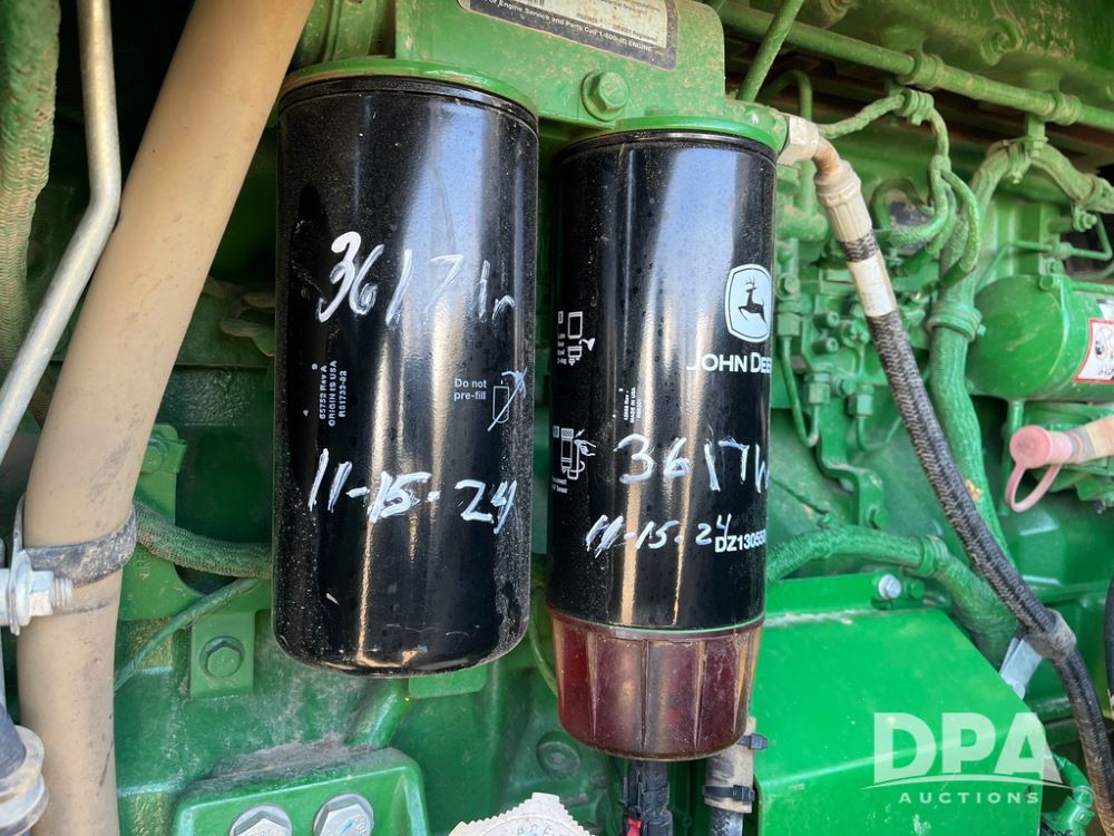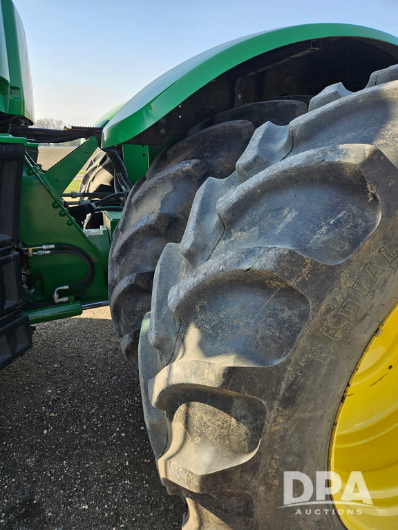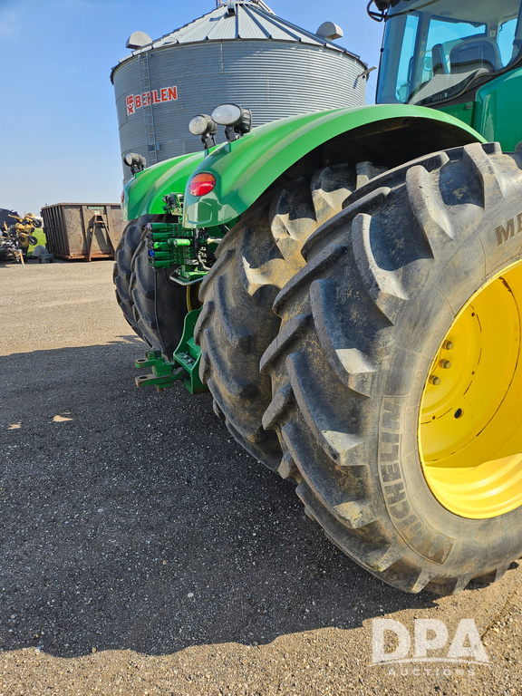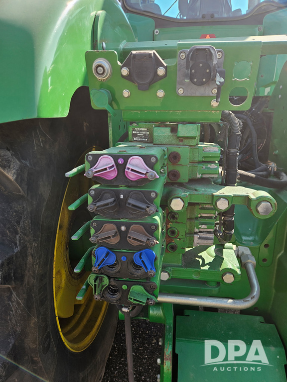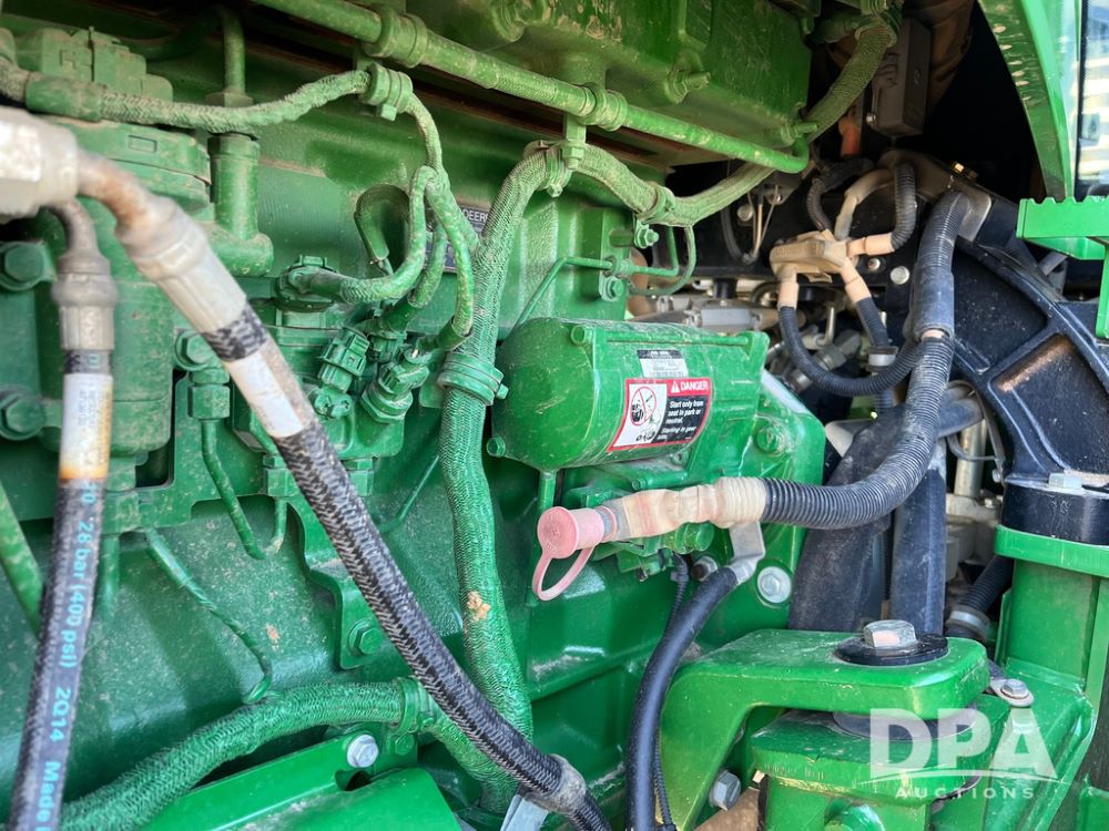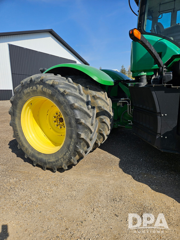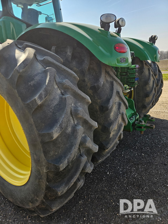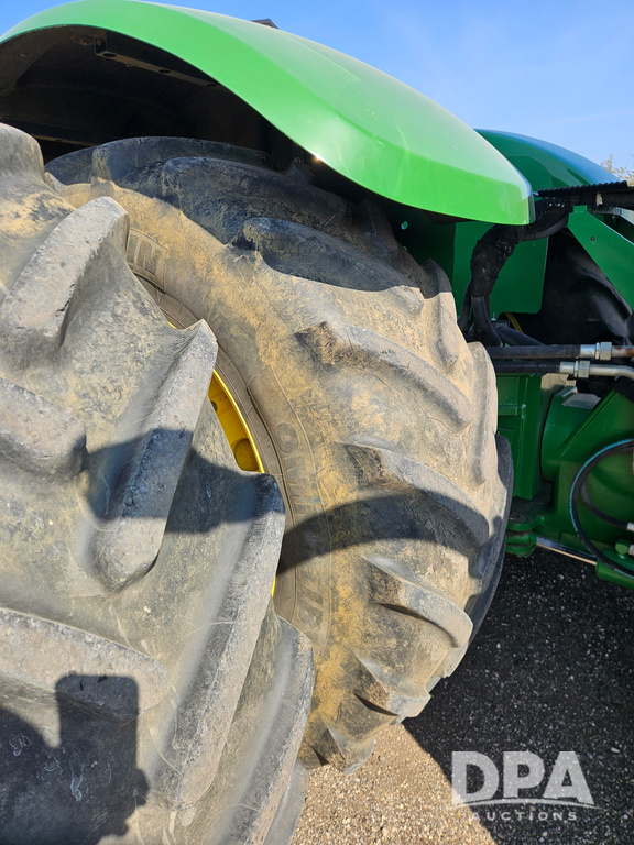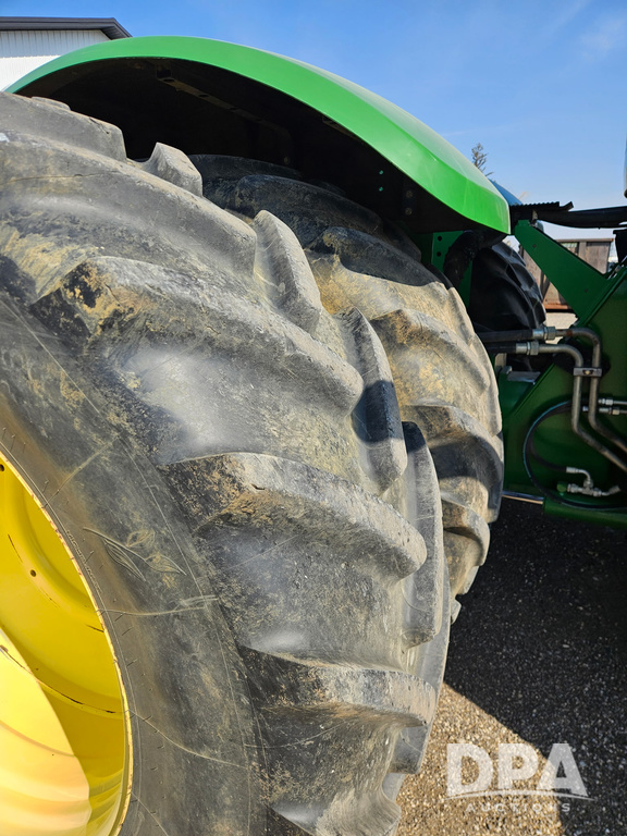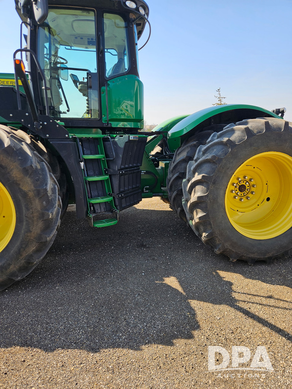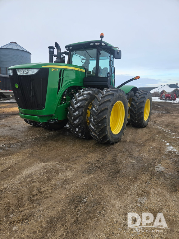2014 John Deere 9410 Tractor (PD5395), 4WD, 13.5L turbocharged diesel engine, 410 hp, powershift transmission, 5 SVC ports, drawbar, CommandView II cab, leather seat, buddy seat, air conditioning, Delphi AM/FM stereo, 620/70R42 dual tires, John Deere monitor, shows 3,618 hours.