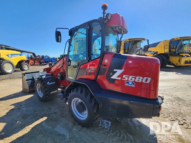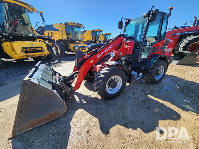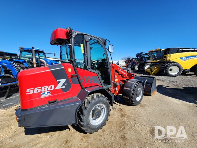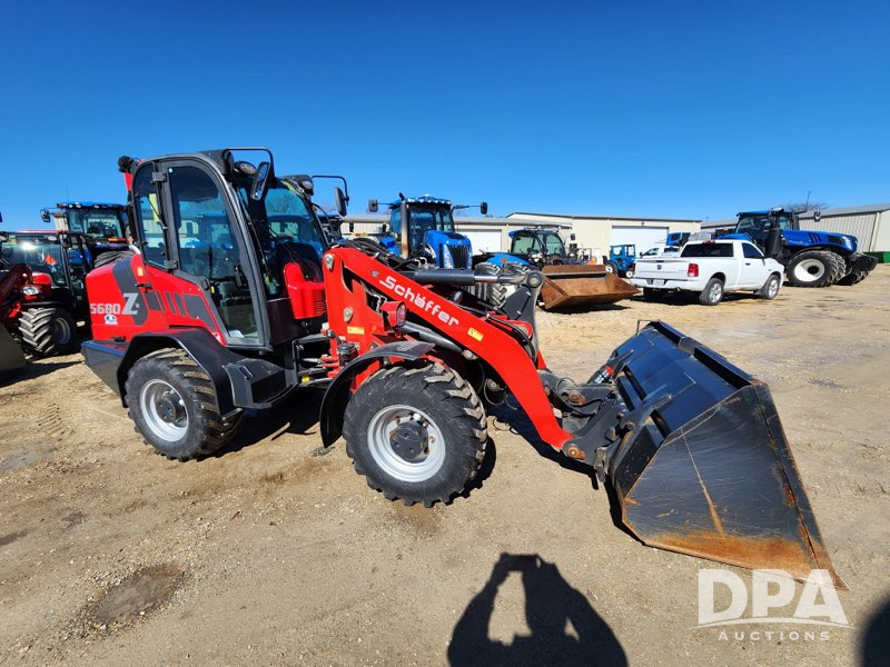 2021 Schaffer 5680Z Wheel Loader (MN1131), EROPs, Deutz diesel engine, 75hp, Schaffer power transmission, air conditioning, heat, joystick control, Euro hydraulic quick attach, approx. 86in smooth bucket, auto greaser, 13.5/60-18IND tires, 6,173lb lifting capacity, counterweight, LED lights, beacon light, camera, shows 287.6 hours.