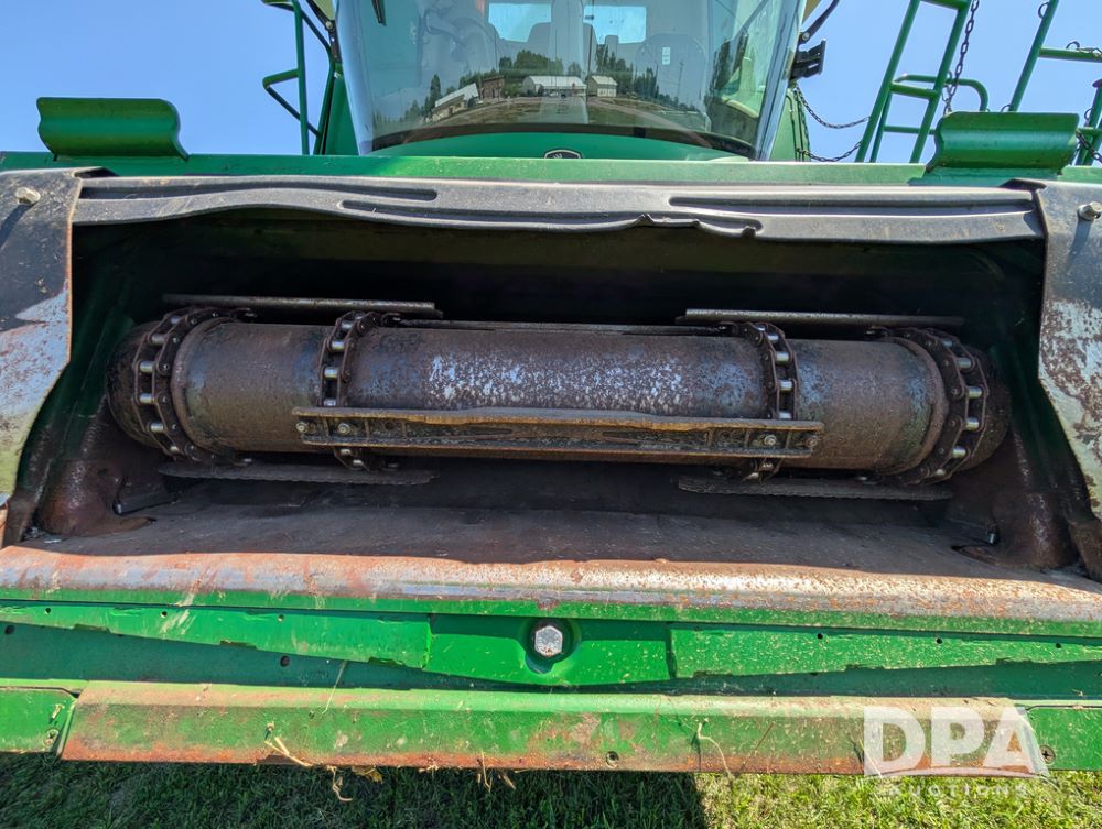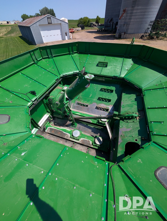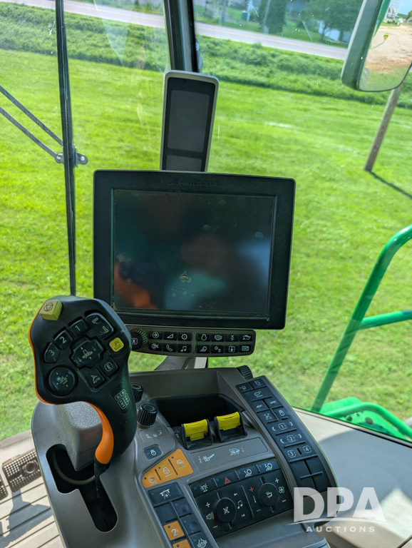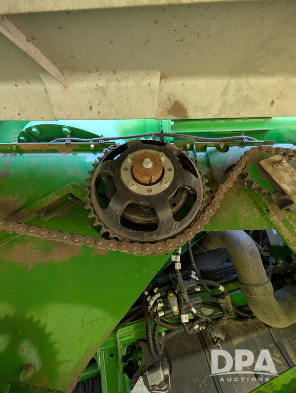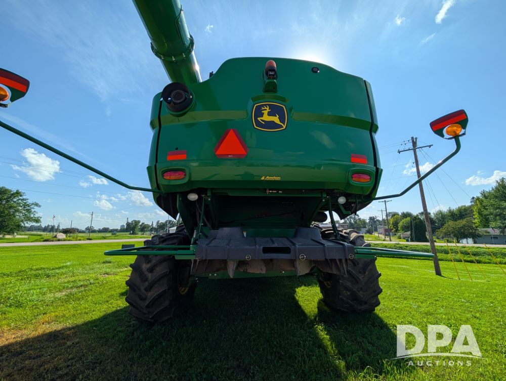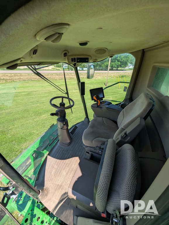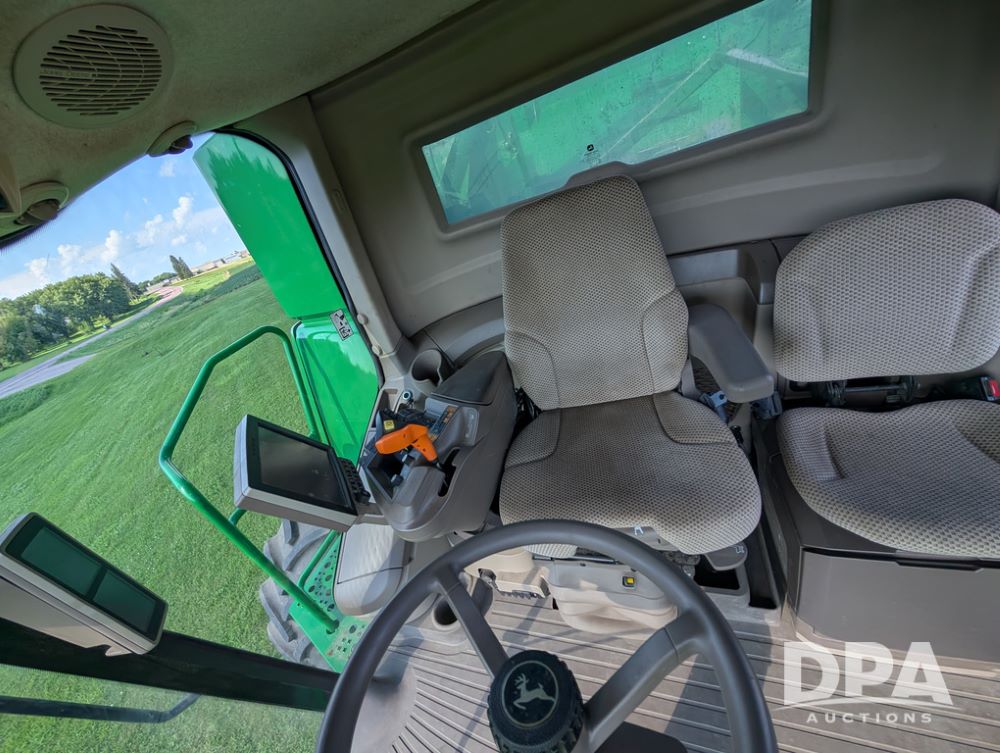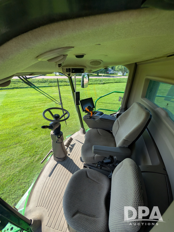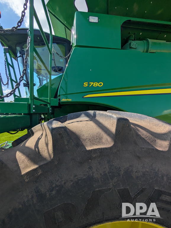 2018 John Deere S780 Combine (LLD1568), 2-wheel drive, ProDrive, 5-speed feeder house, John Deere cross auger shutoff kit, Contour Master w/fore and aft, premium cab, buddy seat, leather, deluxe controls, integrated auto steer, 4600 processor, 10 inch display, combine advisor, AutoTrac, section control, RowSense, data sync, in-field data sharing, machine sync activations, TouchSet, Y&M, active yield, sidehill performance package, 26 high capacity unloading auger, Demo hopper extension with tip ups, fine cut chopper, HD adj. rear axle, power mirrors, refrigerator, 650/85R38 front duals, 750/65R26 rears, shows 1,466 separator hours, 1,838 engine hours.