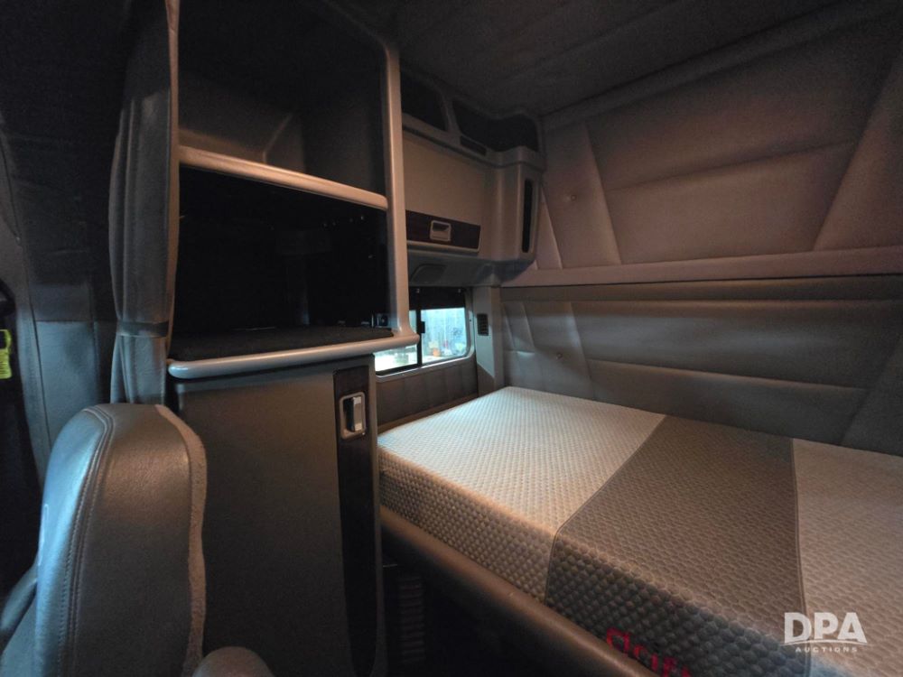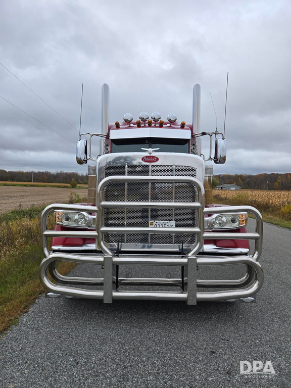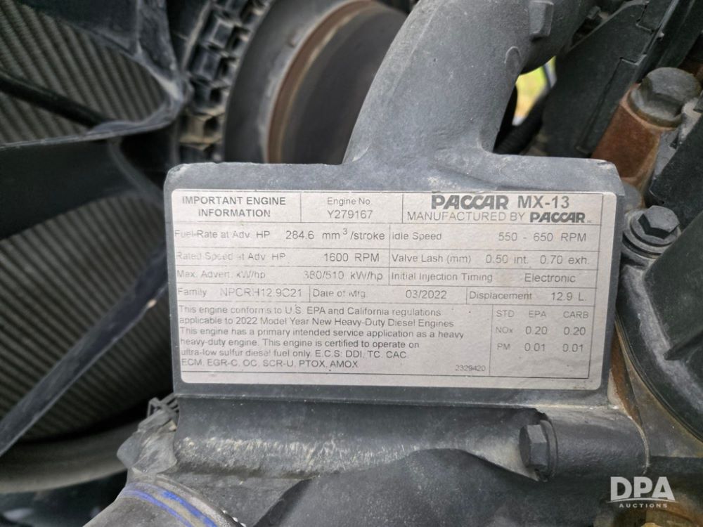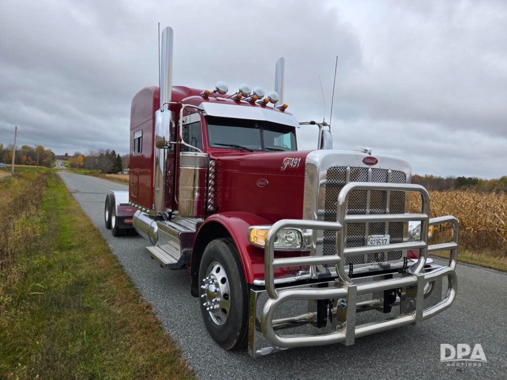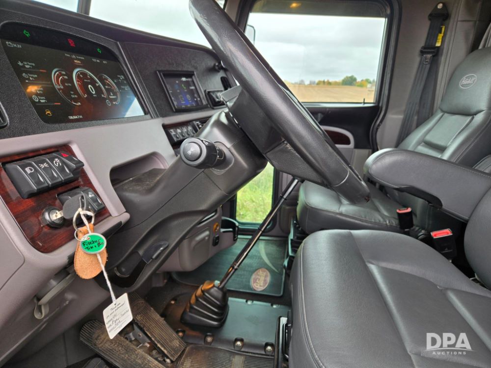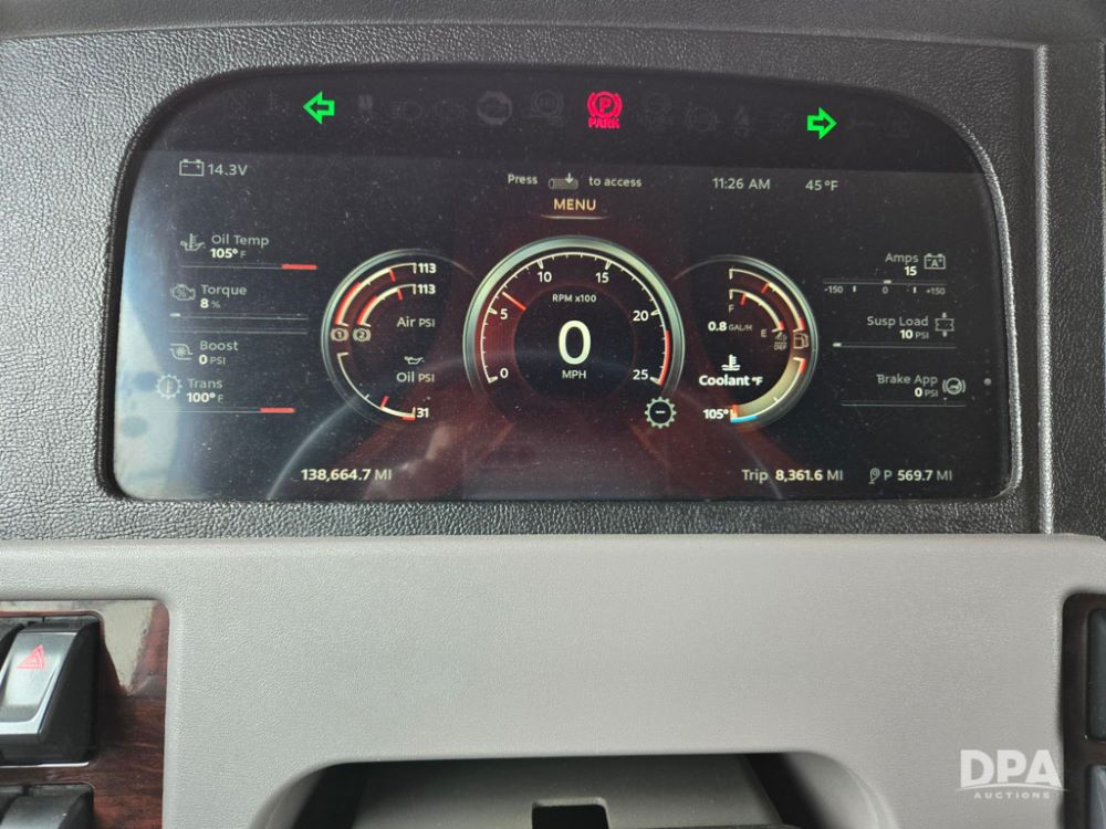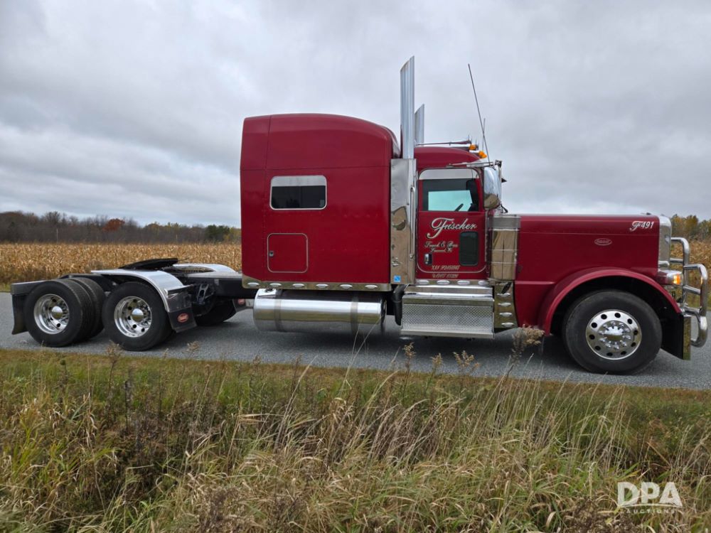 2023 Peterbilt 389 EXHD Sleeper Truck (PD5422), Ultra cab, Paccar engine, 510 hp, 13 speed transmission, tandem axle, air ride suspension, dual chrome stacks, air slide 5th wheel, dual stainless steel air breathers, half fenders, dual aluminum fuel tanks, disk brakes, 90 gallon LH fuel tank, 150 gallon RH fuel tank, 72 inch sleeper, refrigerator, 274 inch wheelbase, touch screen information center, cruise control, AM/FM radio, LED dash, 138,664 miles.