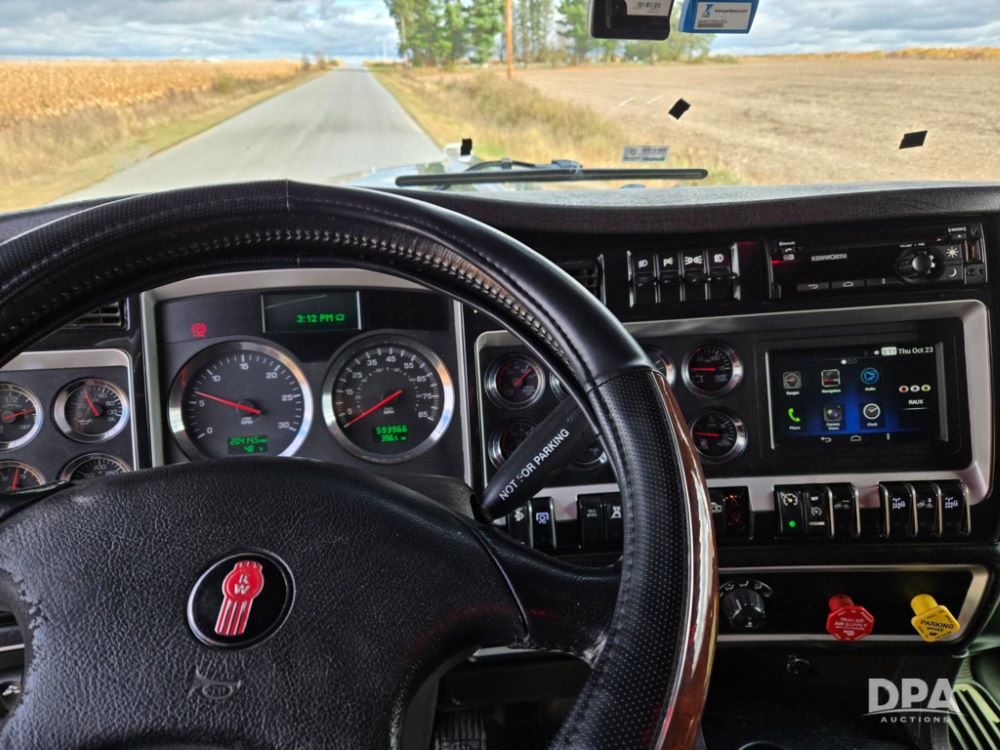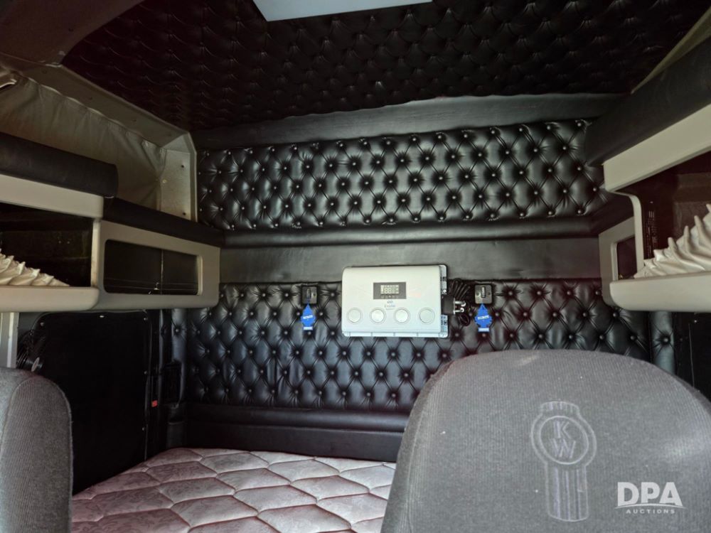 2019 Kenworth W900 Sleeper Truck (PD5442), Cummins X-15 engine, 500 hp, 13 speed transmission, tandem axle, air ride suspension, dual chrome stacks, dual stainless steel air breathers, air slide 5th wheel, engine brake, dump valve, half fenders, disk brakes, full locking rear ends, dual aluminum fuel tanks, 120 gallon LH tank, 90 gallon RH tank, ExoAir Auxiliary Sleeper A/C system, am/FM radio, Espar bunk heater, refrigerator, 272 inch wheelbase, touch screen information center, 593,967 miles.