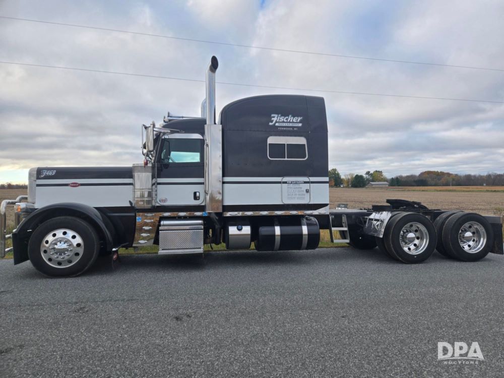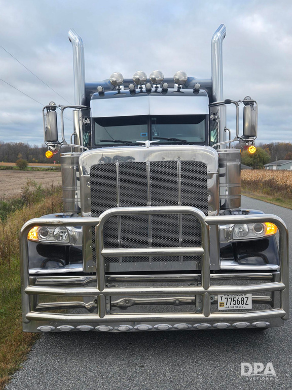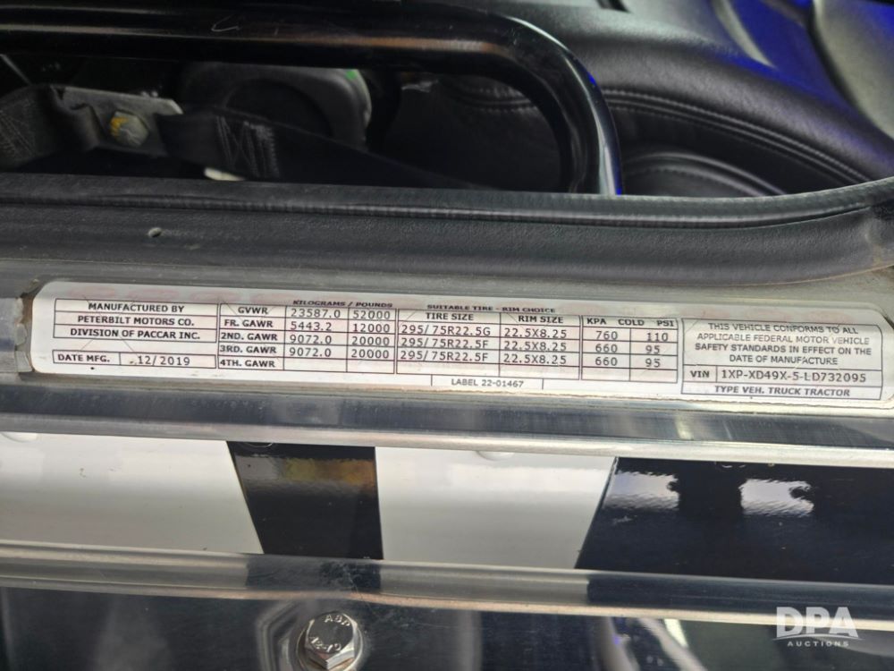 2020 Peterbilt 389 EXHD Sleeper Truck (PD5424),Cummins X-15 engine, 13 speed transmission, tandem axle, air ride suspension, disk brakes, dual chrome stacks, dual stainless steel air breathers, air slide 5th wheel, quarter fenders, stainless steel visor, 150 gallon RH fuel tank, 120 gallon LH fuel tank, 72 inch sleeper, fridge, 272 inch wheelbase, 578,895 miles.