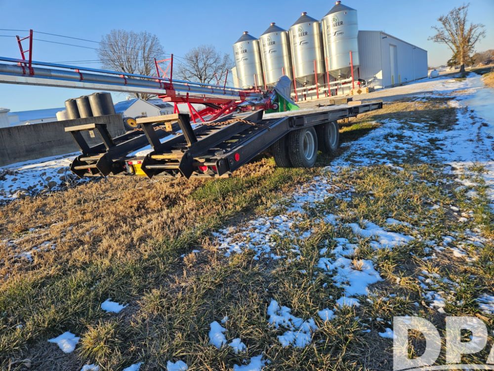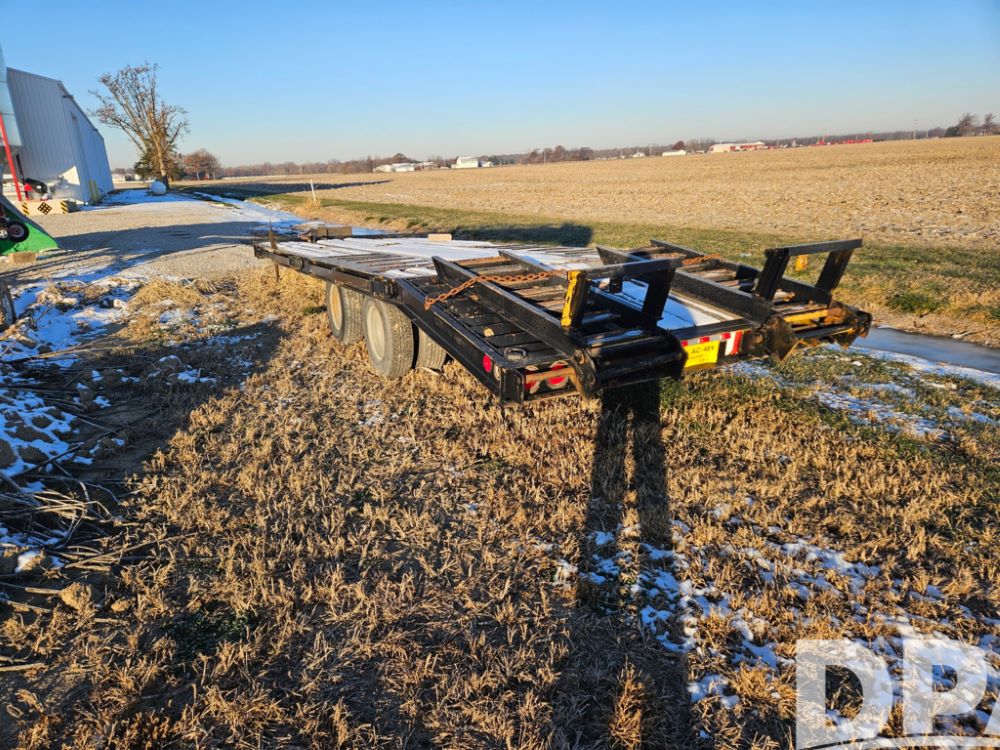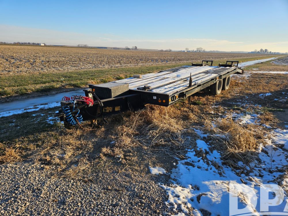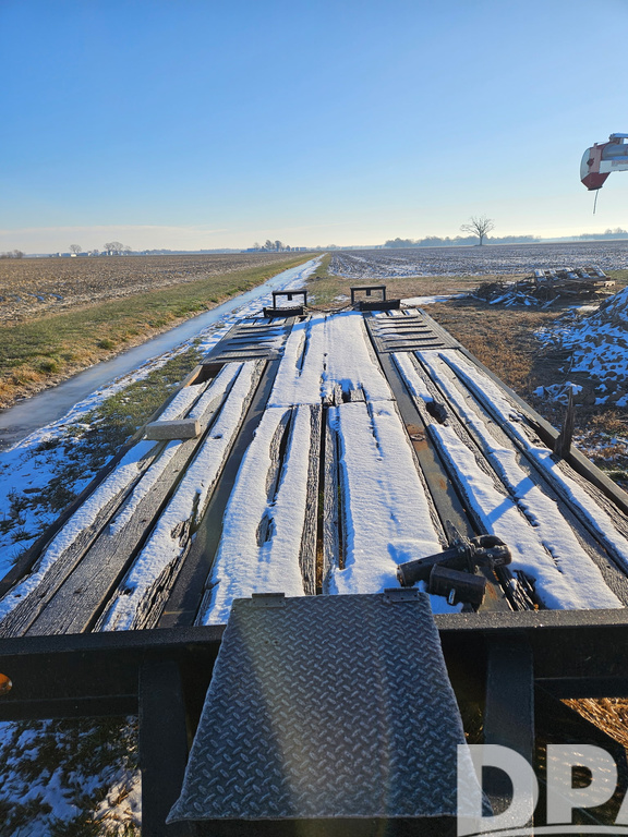 1997 Dynaweld Flat Bed Trailer (LLD1571), 30 foot trailer, tandem axle, air brakes, job box, fold up ramps.