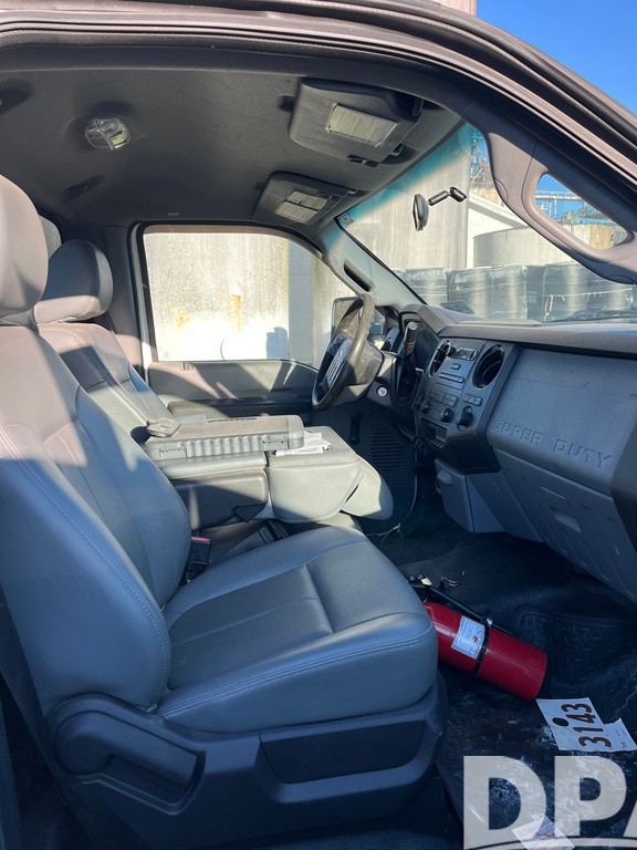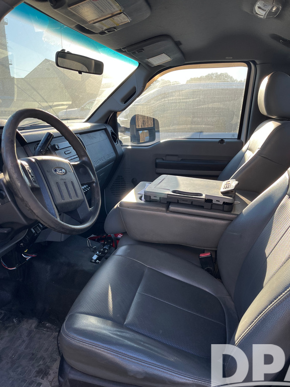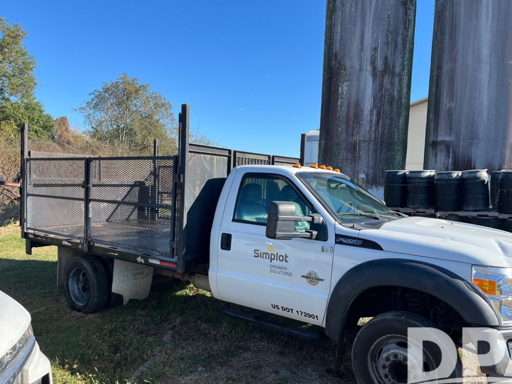 2012 Ford F550 (DR12881 Unit 04660/308157), Power Stroke diesel engine, automatic transmission, 10' steel stake bed, 48'' opening side panels, Tommy Lift tailgate, heat/air conditioning, cruise control, odometer reads 152,730 miles.
