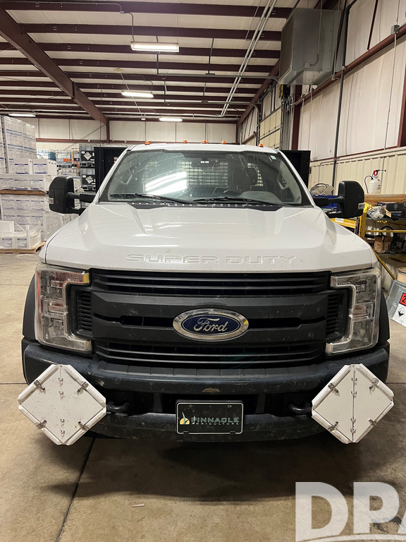 2018 Ford F550 Flatbed Truck (DR12883 Unit 785),6.8 liter gas engine, automatic transmission, 12' steel deck flatbed, heat/air conditioning, cruise control, bed mounted storage box, odometer reads 136,466 miles.