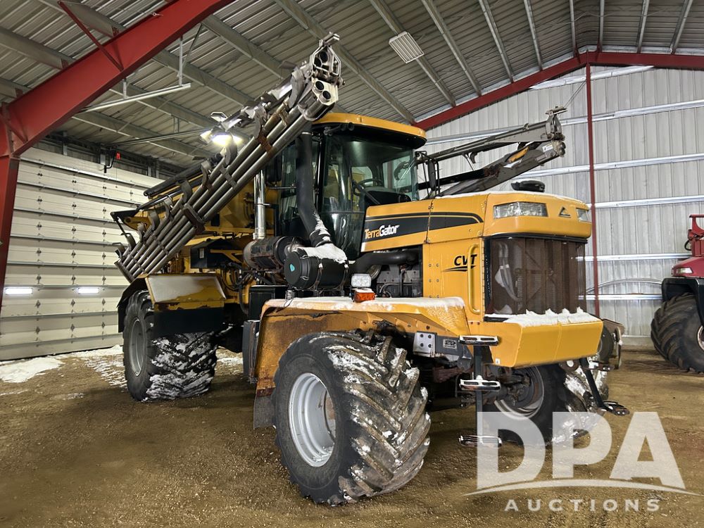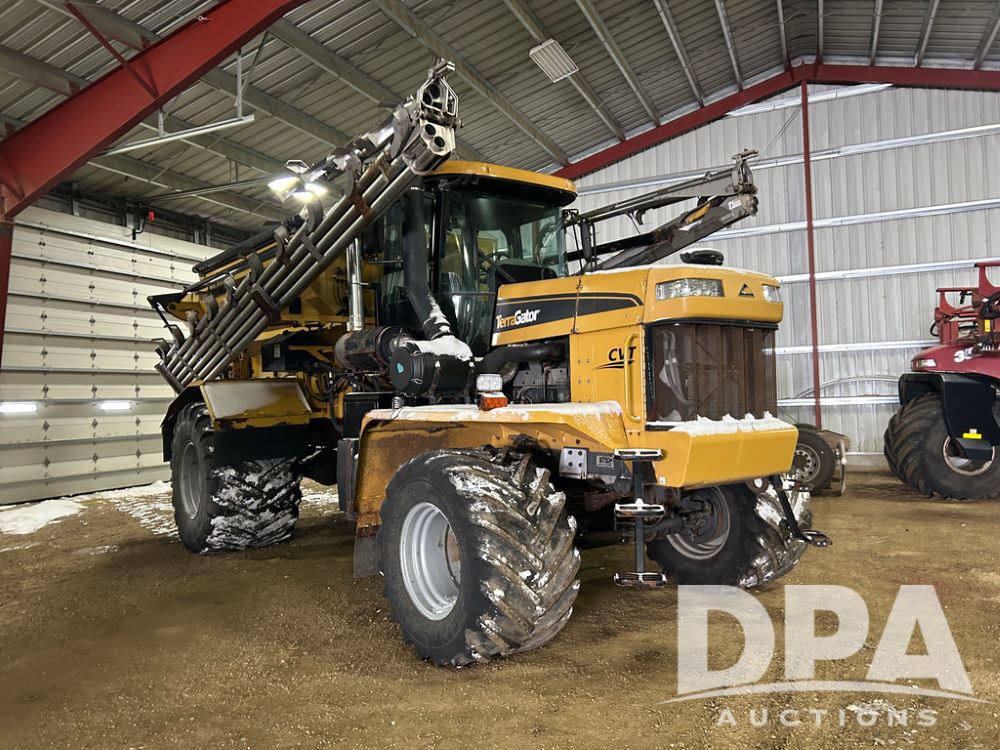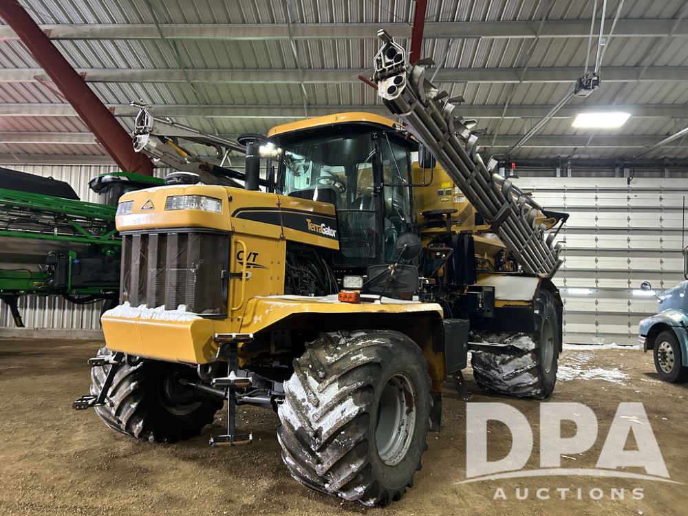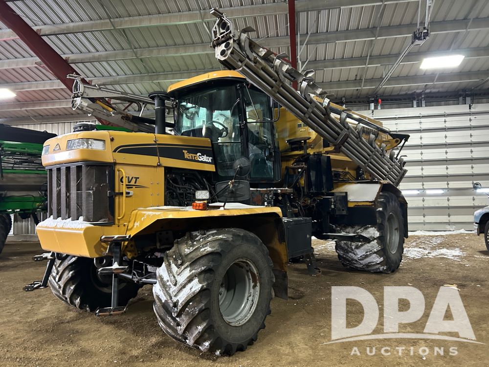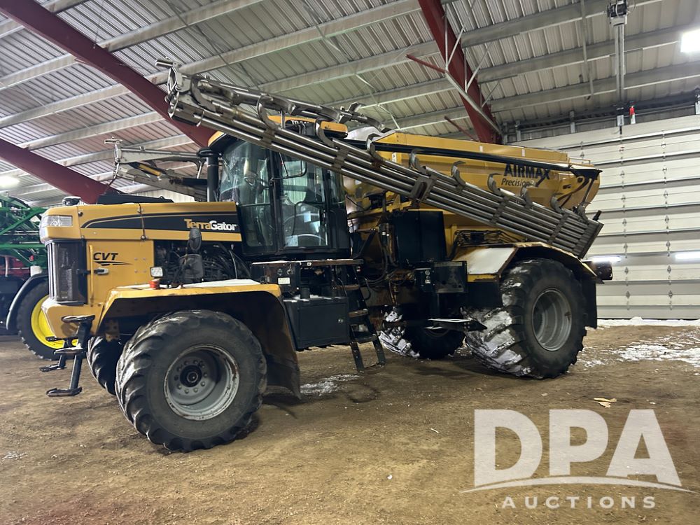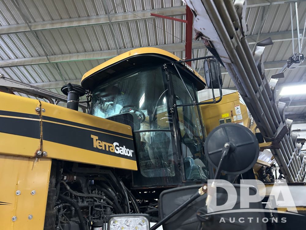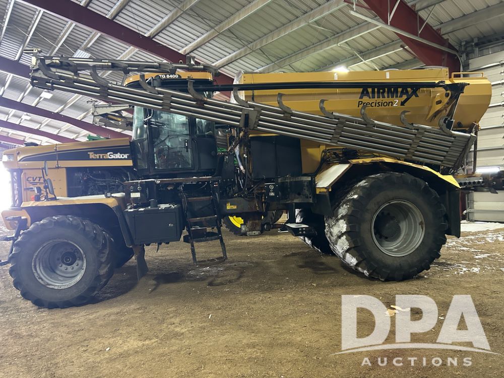2012 Terra Gator 8400 Floater (CP1407), diesel engine, CVT transmission, Air Max Precision 2 hydraulic dry air flow box, 70' stainless steel boom, Micro ingredient bins, Raven Viper IV controller, light bar, electric roll tarp, cab cam, cab heat/air conditioning, 1050/50R32 rear tires, Goodyear 750/50R26 front tires are near NEW, shows 3822 hours.