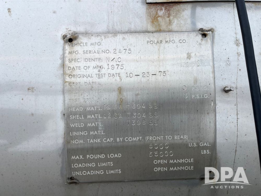 1975 Polar Liquid Transport Trailer (JN3548, Unit 115754), 1975 Polar 5,000 gallon stainless steel transport trailer, pump, ladder, hose tube, tandem axle, air ride suspension, 11R24.5 tires.