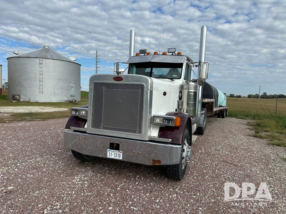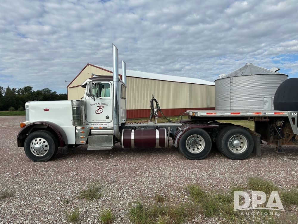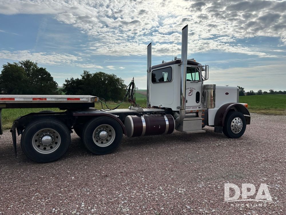 2001 Peterbilt 379 Day Cab Truck (NP6177), Cat C-12 diesel engine (430 HP), Eaton Fuller 13 speed transmission, heat, air conditioning, Am/Fm radio, cruise control, engine brake, tandem axle, air ride suspension, 5th wheel tank, dual fuel tanks, dual exhaust stacks, 295/75R22.5 tires, GVWR 48,000 pounds, shows 151,708 miles.