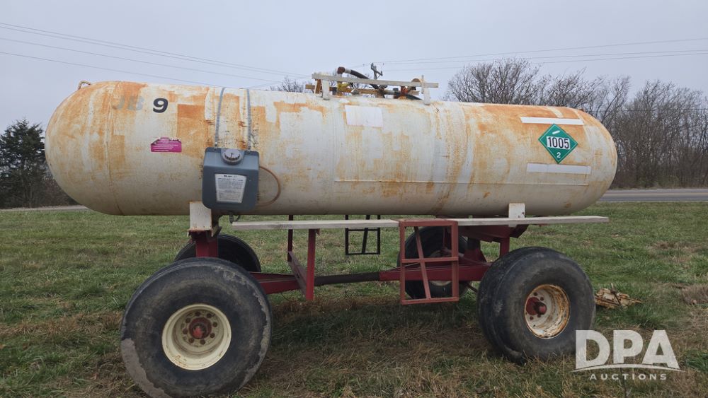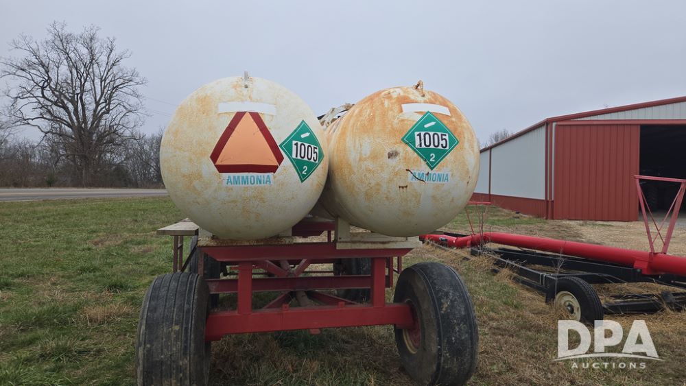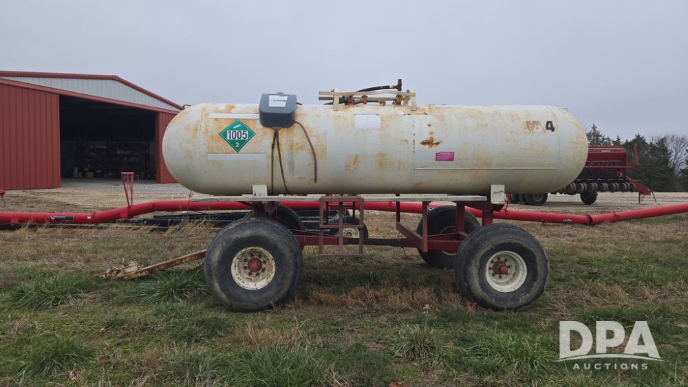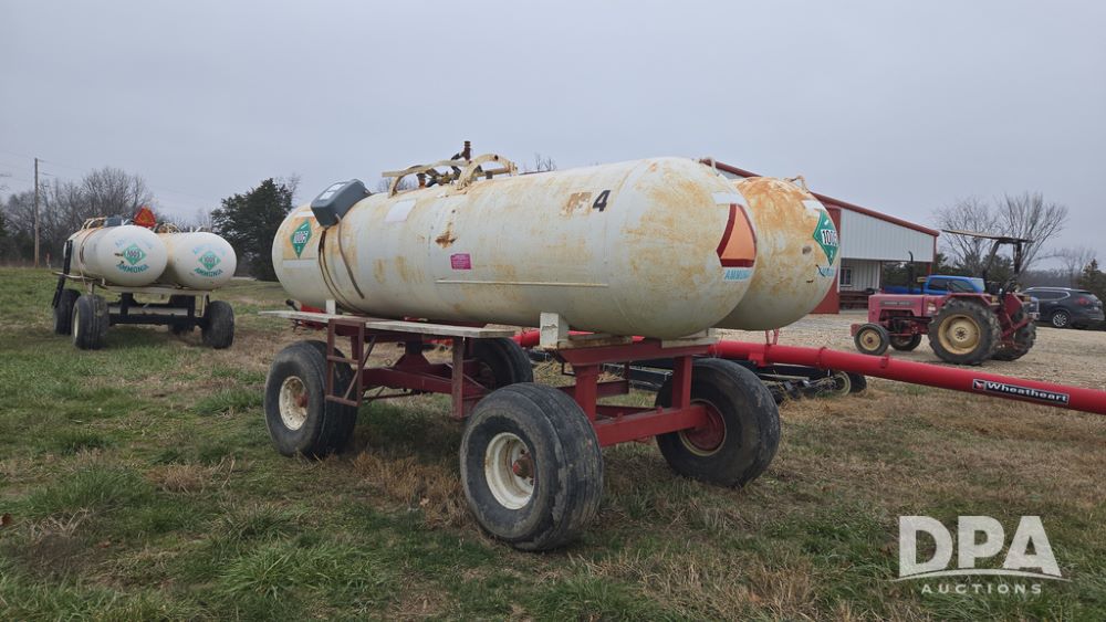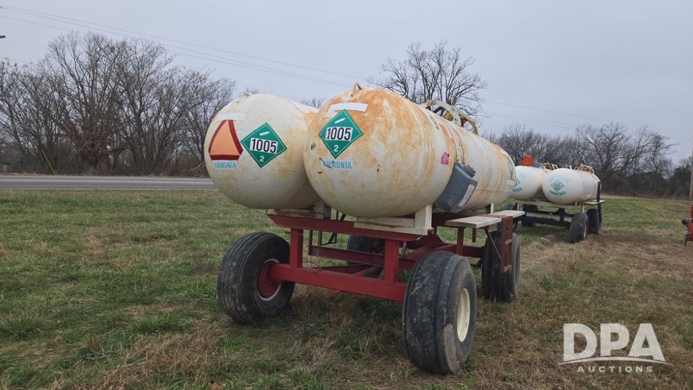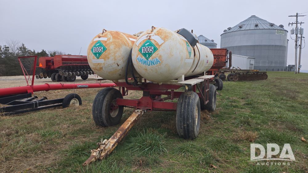 Double NH3 Tanks (NP3645, Tanks JB4 & JB9), double 1,000 gallon anhydrous nurse tanks, 1,000 gallon capacity each, top front fill plumbed to front, four wheel gear, flotation tires, data plate.