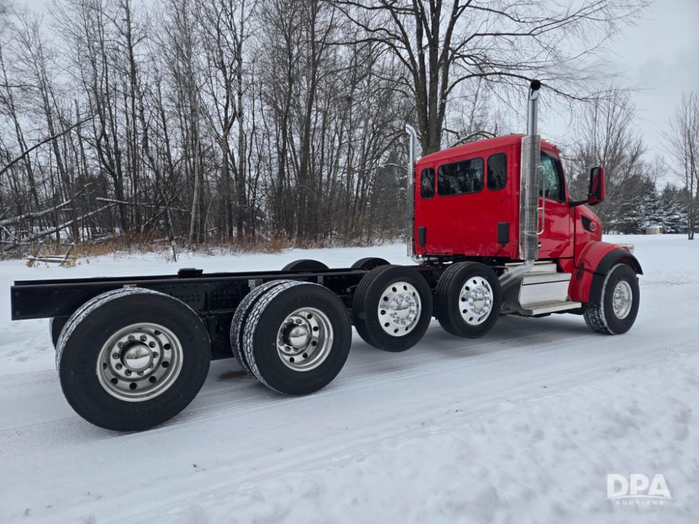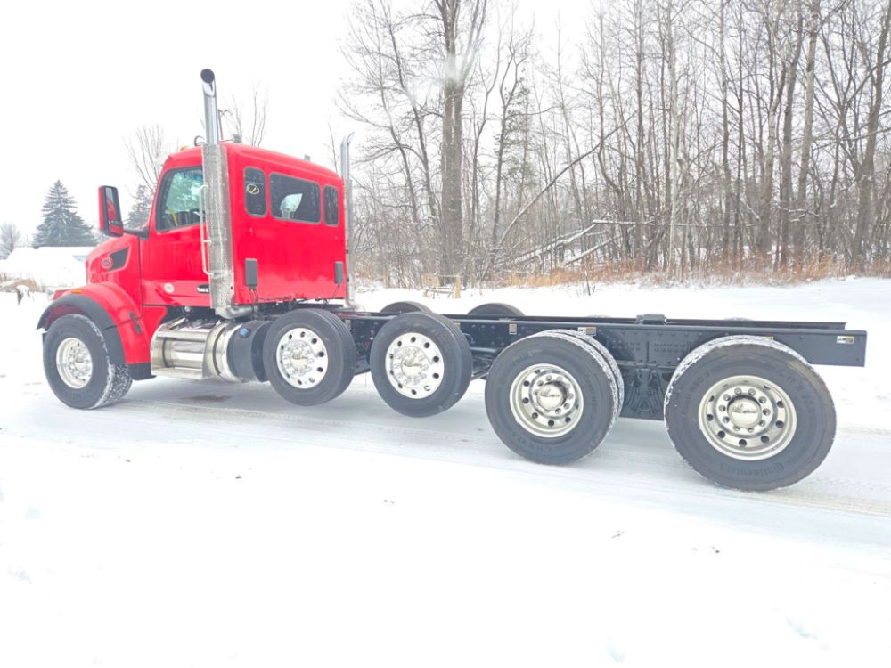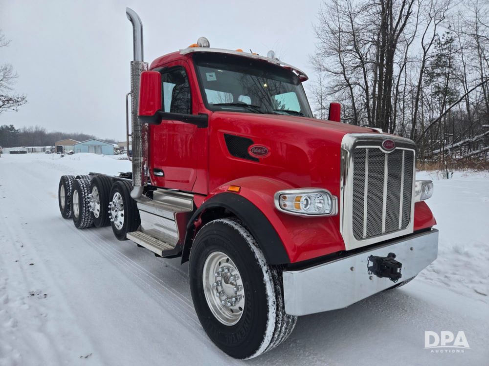 2025 Peterbilt 567 Factory Day Cab Truck (PD5425), Paccar MX-13 engine, 510 hp, Allison automatic transmission, quad axle, air ride suspension, full locking rear end 3.55 ratio, engine brake, cruise control, LED dash, touch screen information center, double frame, 20,000 pounds steer, 46,000 pounds rears, 13,600 pounds steerable tag axles, dual steering gears, dual exhaust, disk brakes, trailer package ready, 246 inch wheel base, 212 inch of available frame, 10 miles.