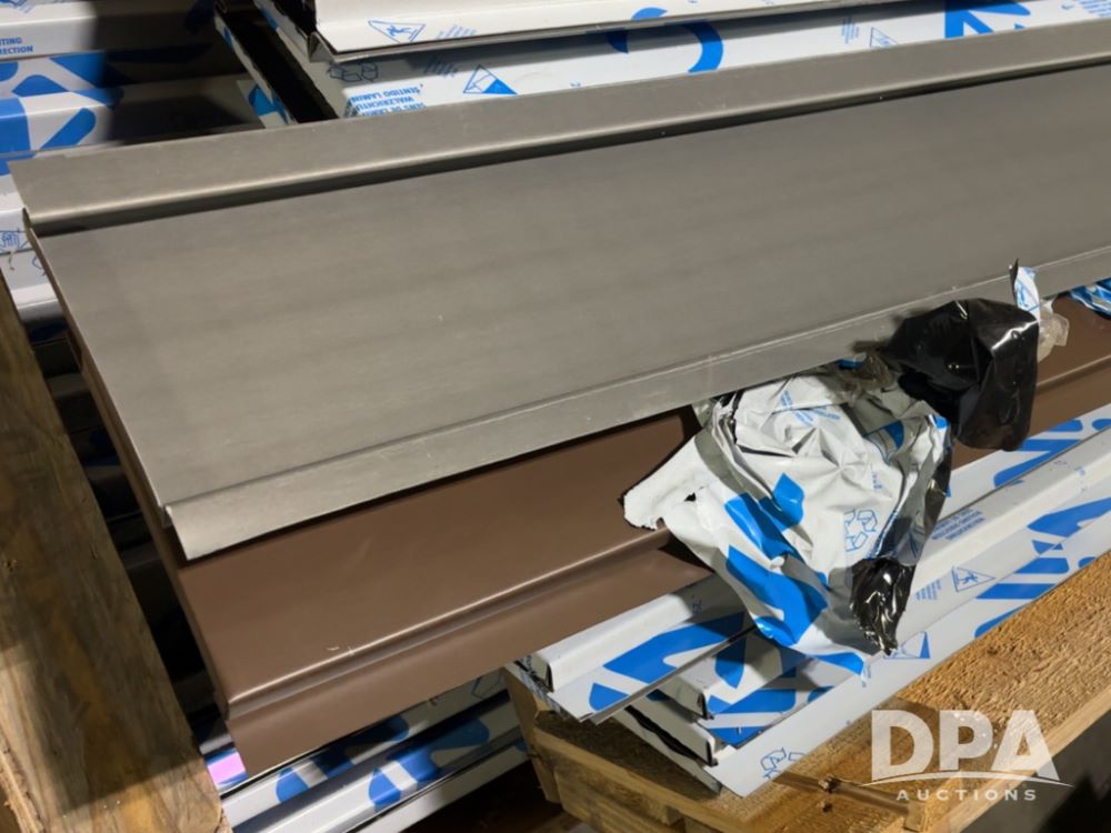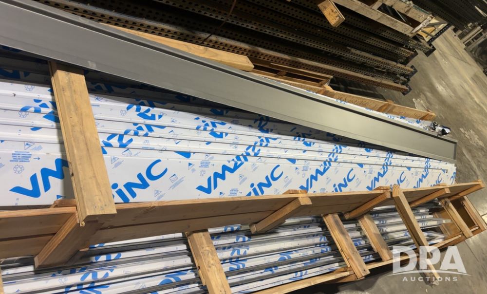 Zinc Panels Prefinished (MN1190), 7 1/2inX 1/2in, approx. quantity in lengths; 4 at 10ft, 2 at 12ft 8in, 3 at 13ft 8in, 2 at 14ft 3in, 7 at 14ft 4in, 1 at 14ft 8in, 36 at 15ft, 1 at 15ft 2in, 3 at 15ft 3in, 1 at 15ft 5in, 9 at 15ft 6in, 2 at 15ft 8in, 22 at 16ft 8in, 28 at 18ft, 4 at 21ft.