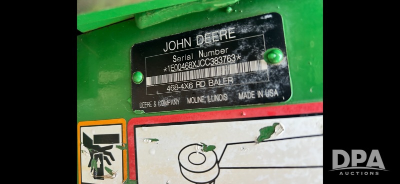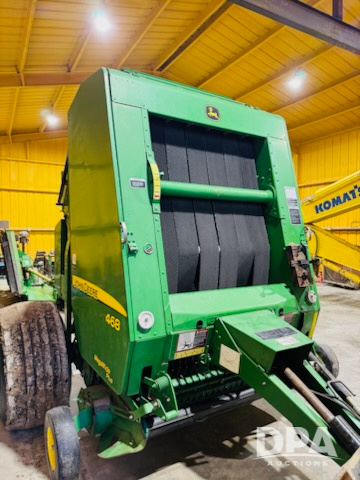 2010 John Deere 468 Mega Wide Baler (NJP475), 4ft wide x 6ft diameter, bale count approximately 19,500.