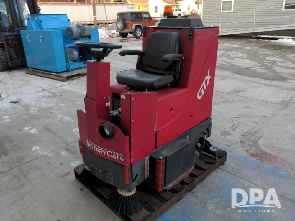 Factory Cat GTX 30-C Floor Scrubber (NP6348, Unit 027), this is a low hour Factory Cat Floor Scrubber, unit has inoperable batteries, unit is 36 volt, this machine looks to be in good overall condition, please see pictures for more details.